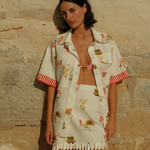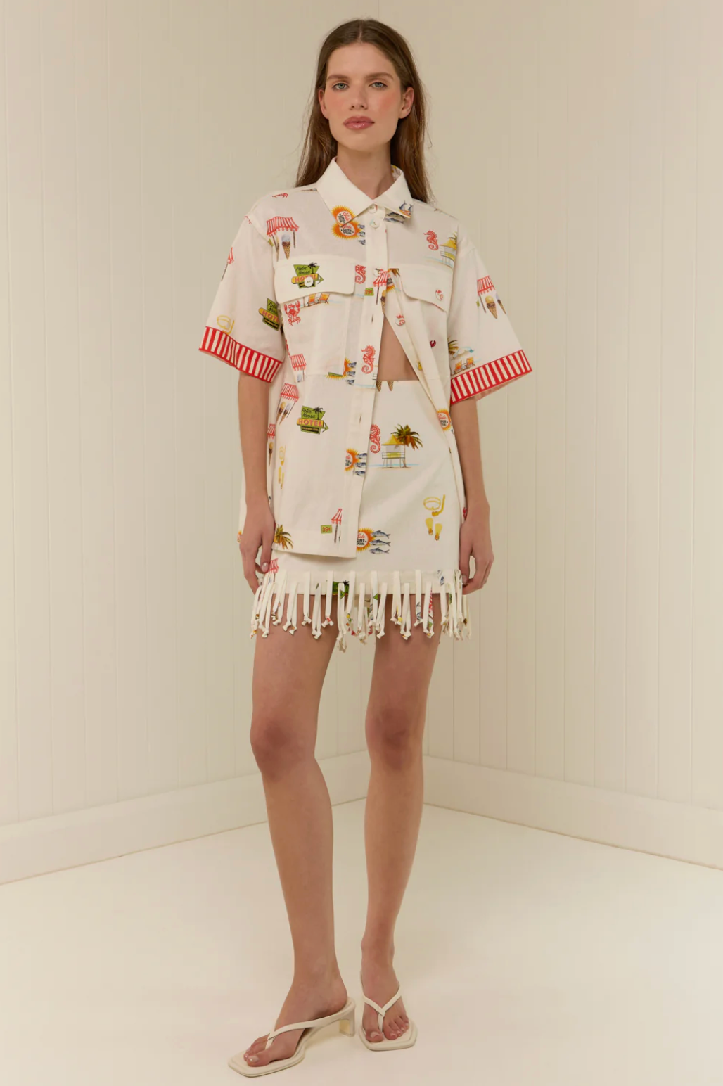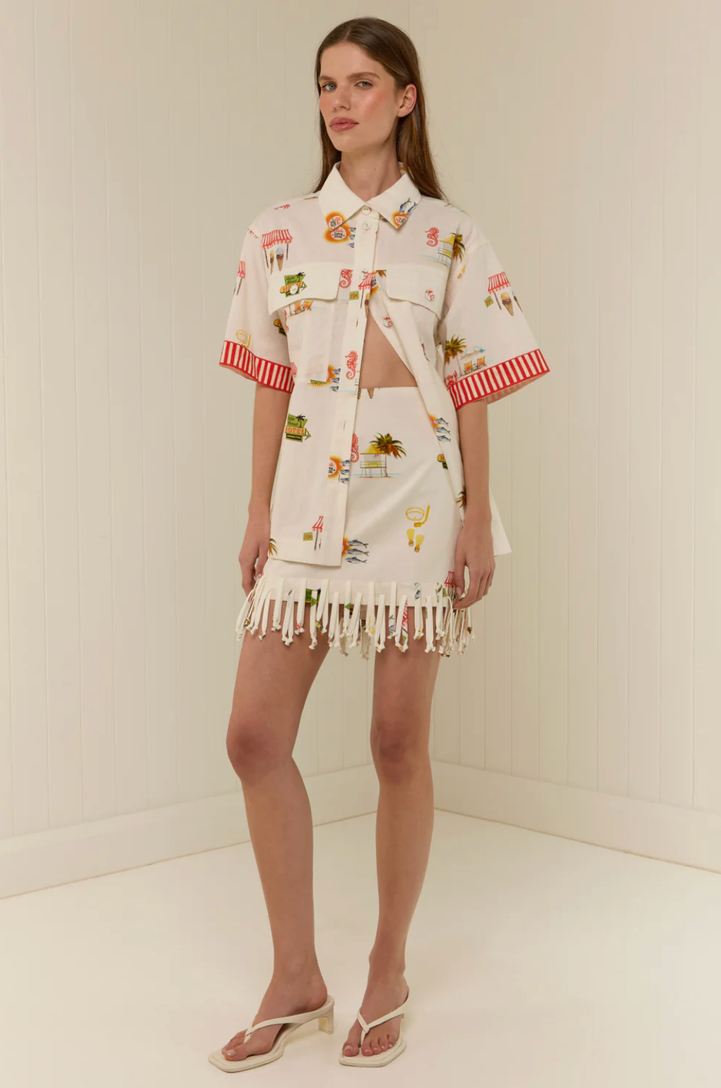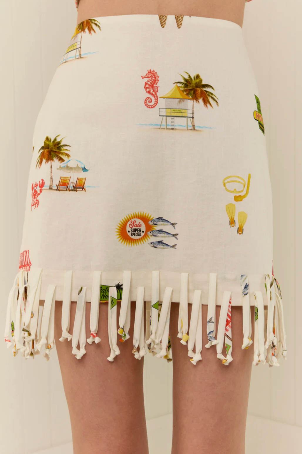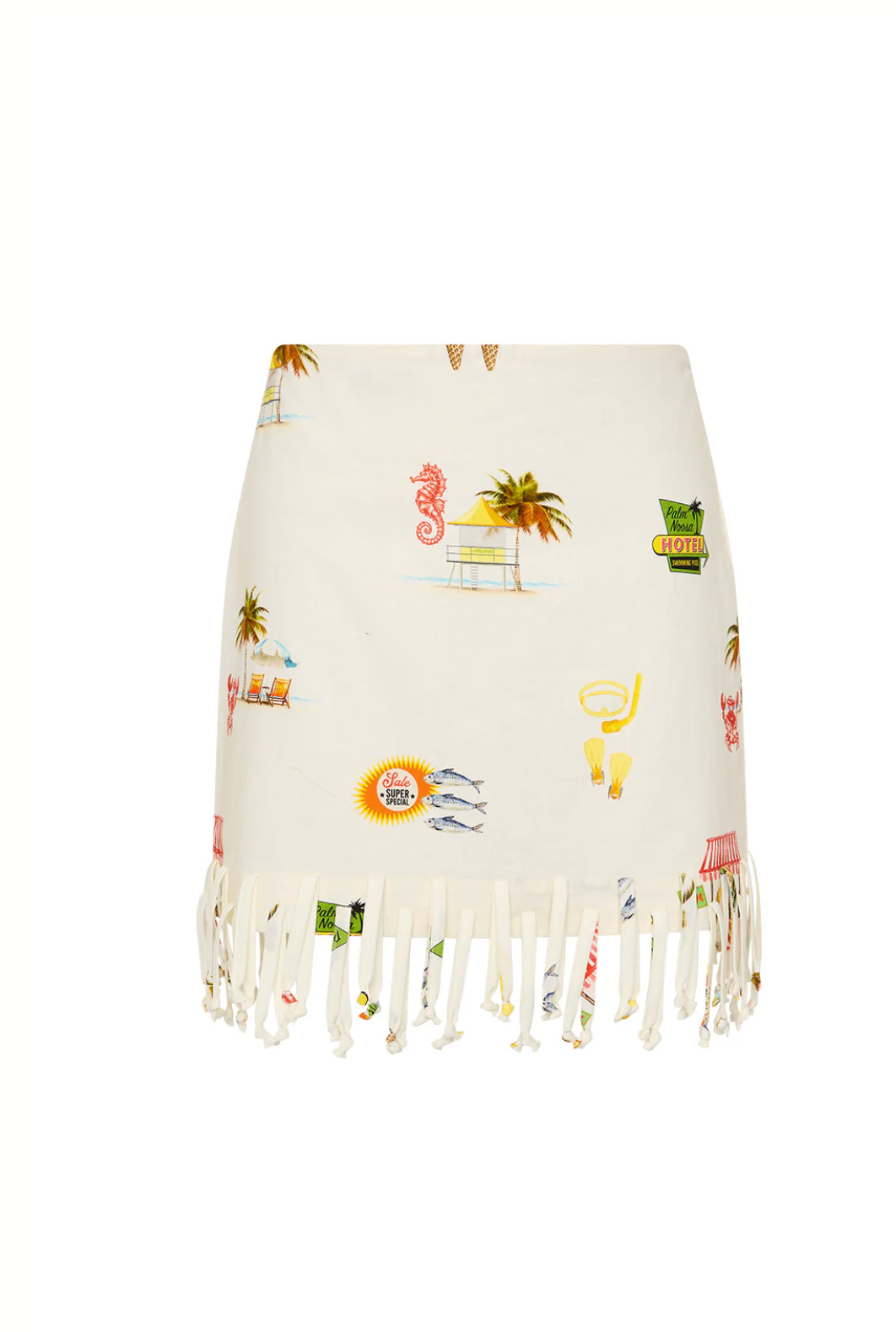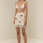 The Tropicana Skirt in our exclusive Tropicana print is a new mini skirt crafted from a premium Linen blend. The Tropicana skirt is designed to be a straight silhouette featuring a double layer knotted tassel for a fun but elevated finish. Pair back with our Alto shirt for a matching set. Please refer to our size and fit guide for further fit details.