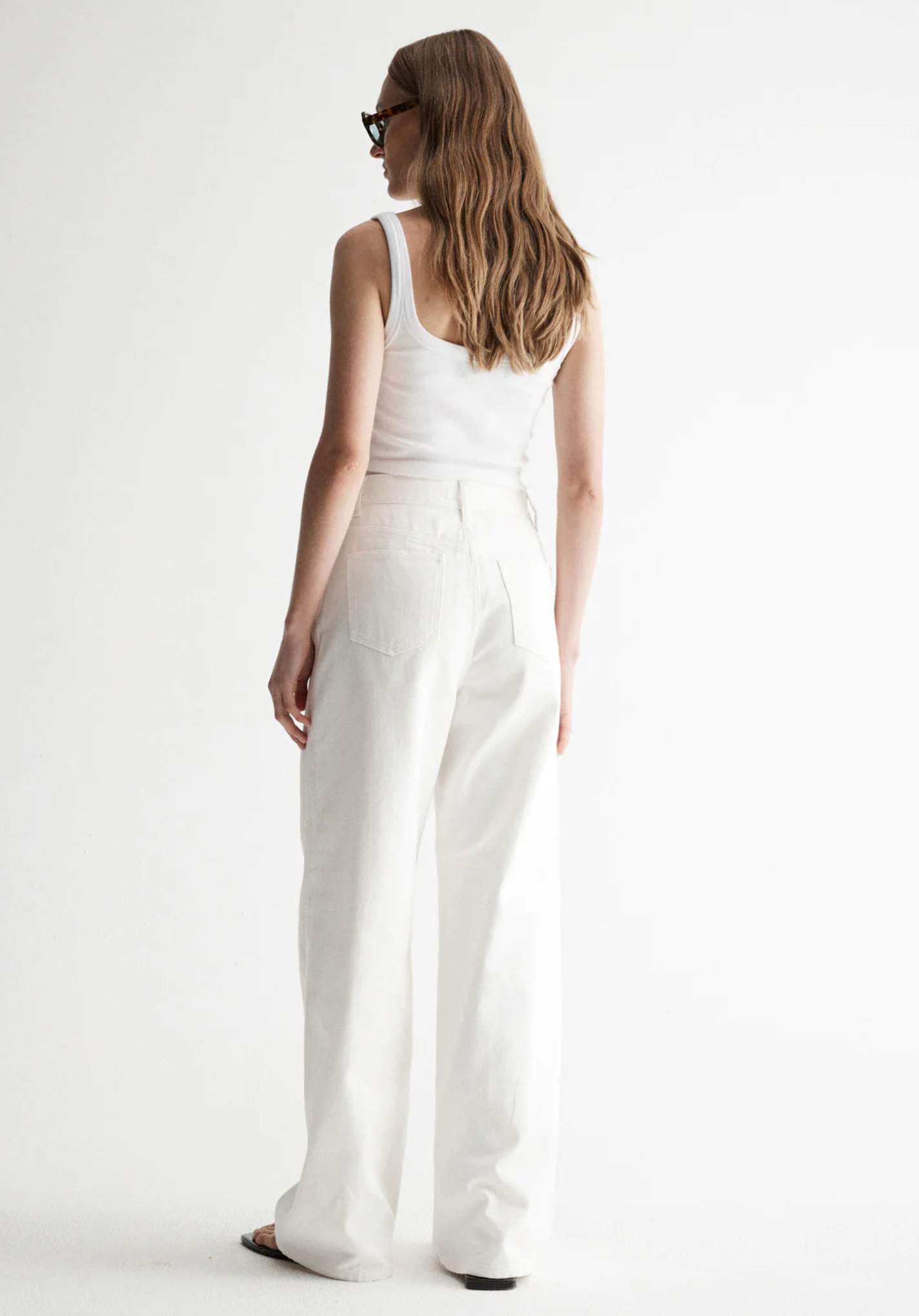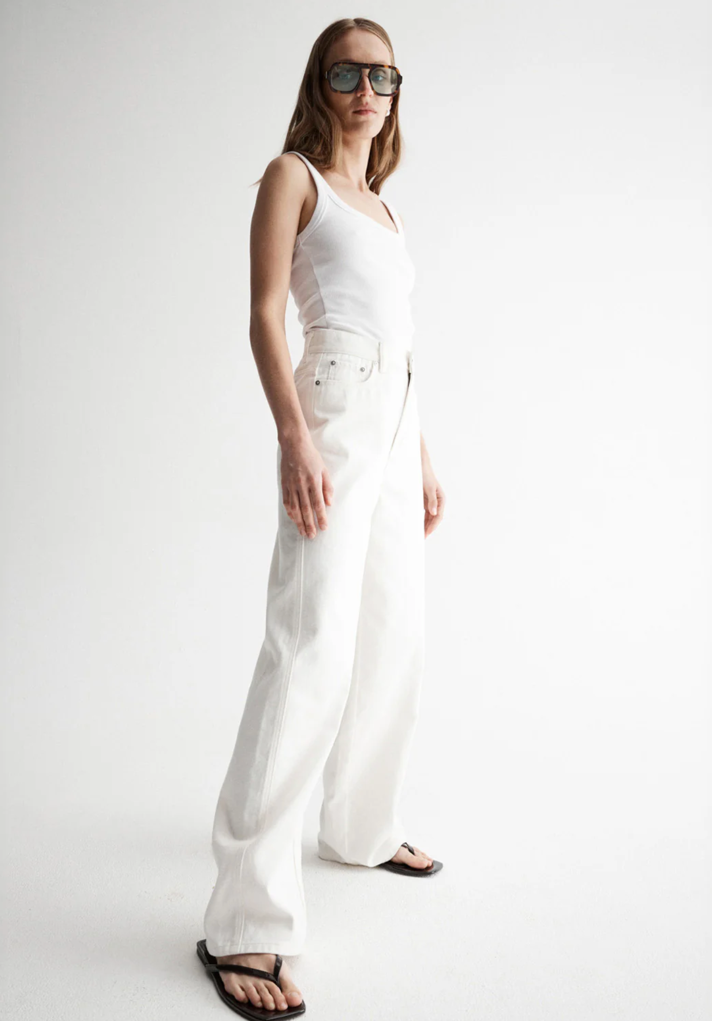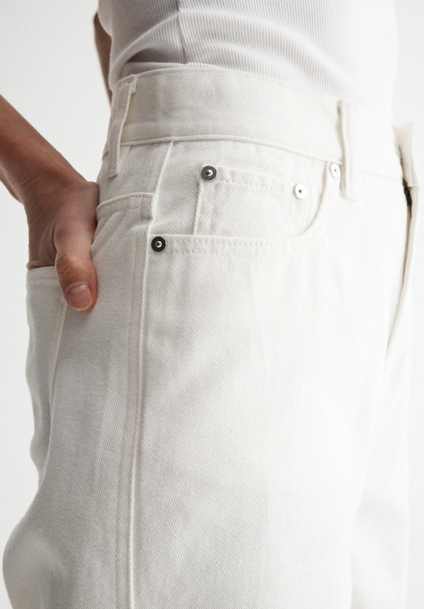 Building on our portfolio of core denim pieces, the Apollo Jean is a rebirth of one of our signature styles. Made of 100% rigid cotton denim, these jeans bring a relaxed silhouette to your capsule wardrobe, with a full length leg profile, loose fit, and exposed seam detailing. Finished with a standard 5-pocket design, zip and button fly, and Elka Collective monogram embroidery at the waistband.