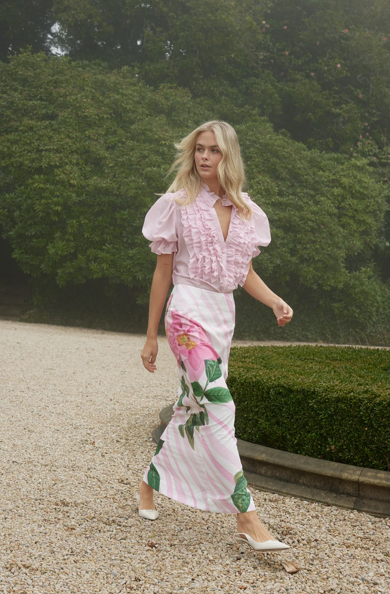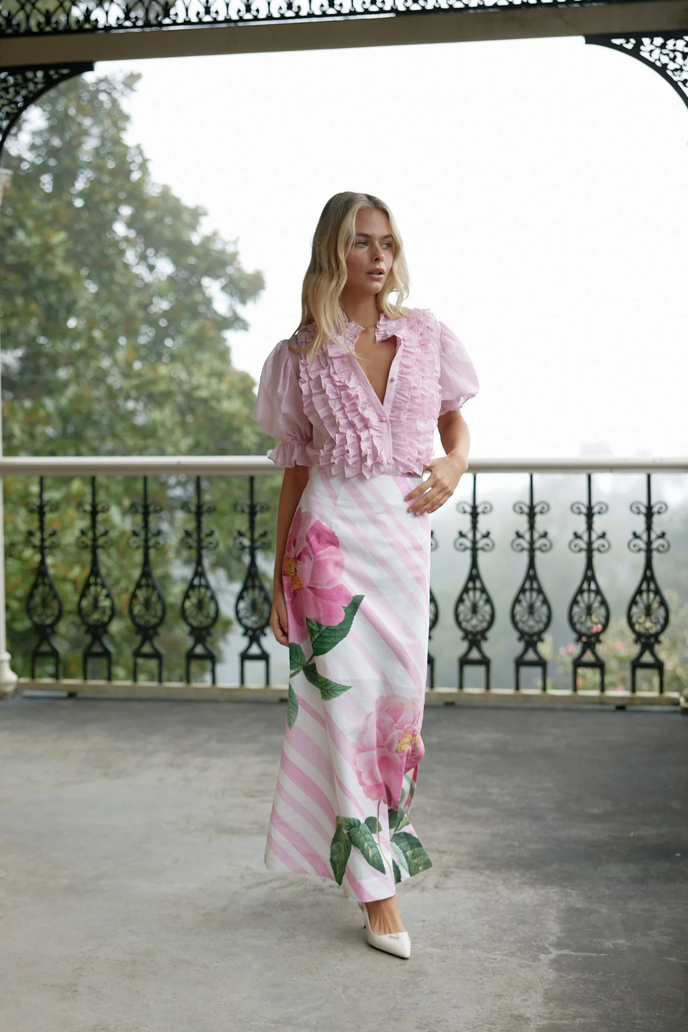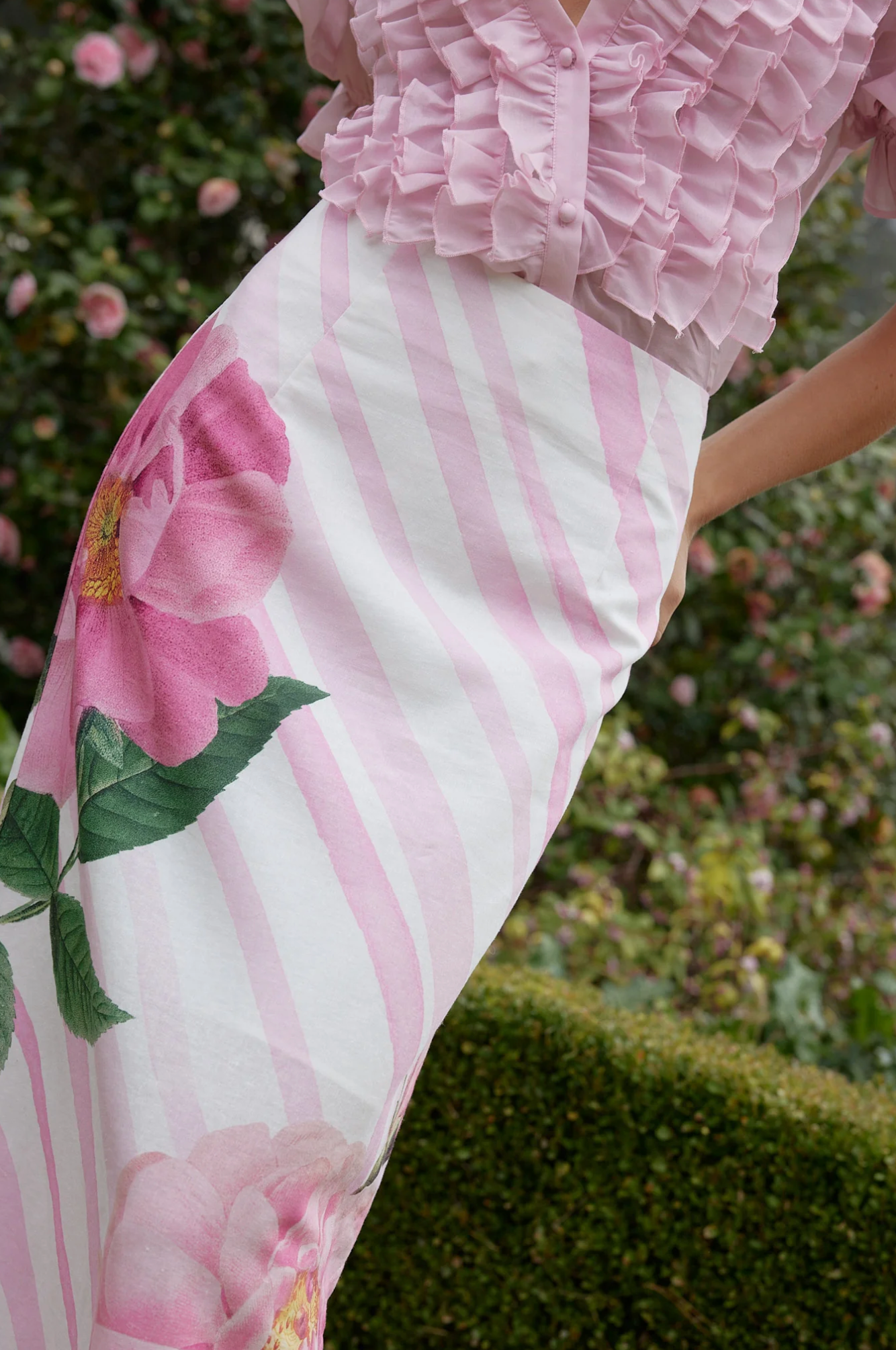 The Nola Skirt is a statement piece of refined elegance. Its full-length column silhouette is accentuated by a graceful side split, while the exclusive baby fleur placement print adds a touch of artistry and sophistication. This skirt seamlessly blends modern allure with timeless charm, making it a standout addition to any wardrobe.