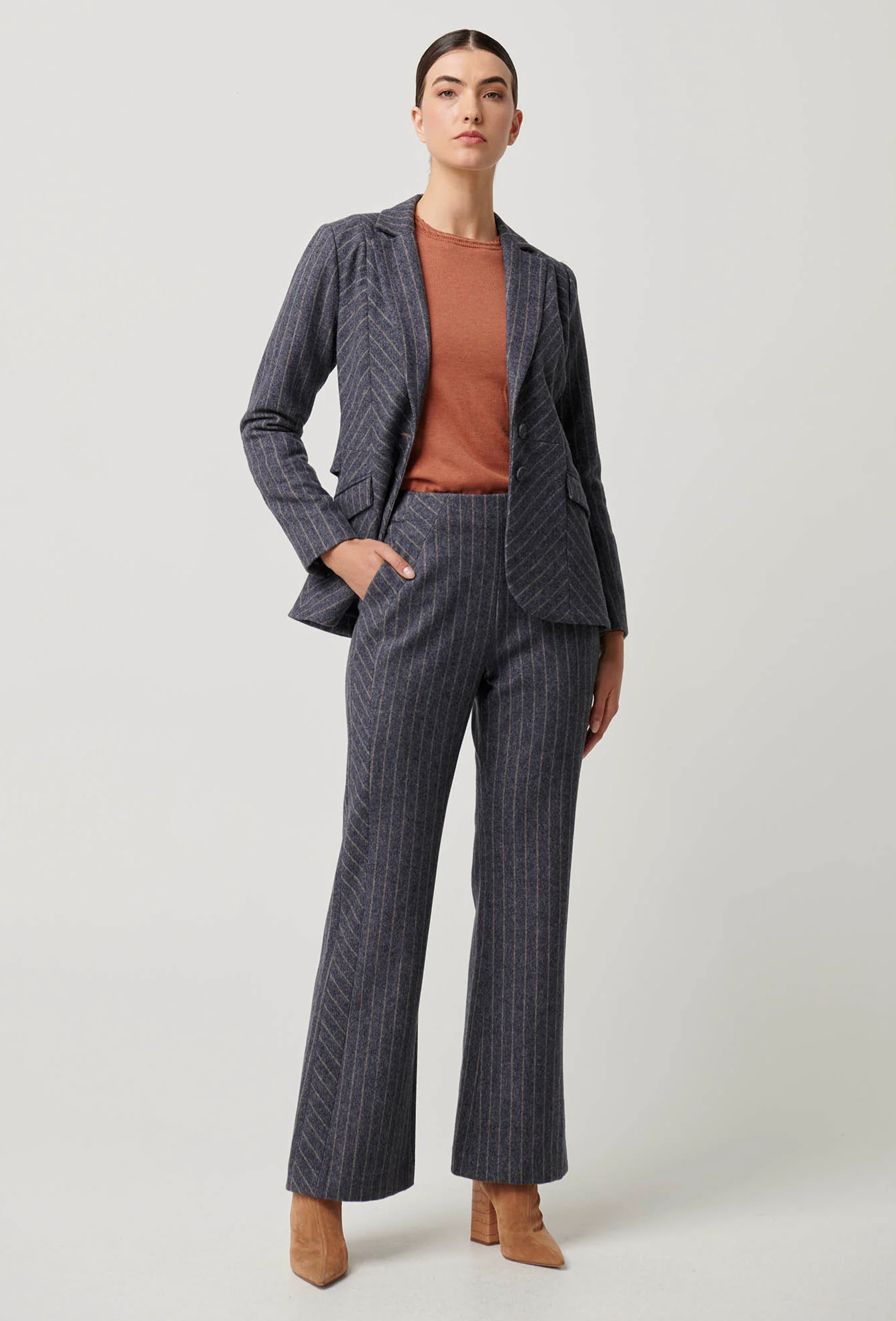 Perfect for transitioning from office wear to evening events, the Oaklyn Chevron Stripe Blazer pairs effortlessly with our tailored trousers for a coordinated look or your favourite denim for a smart-casual edge. Whether styled with a crisp blouse or a delicate cami, this blazer brings sophistication and versatility to every outfit.