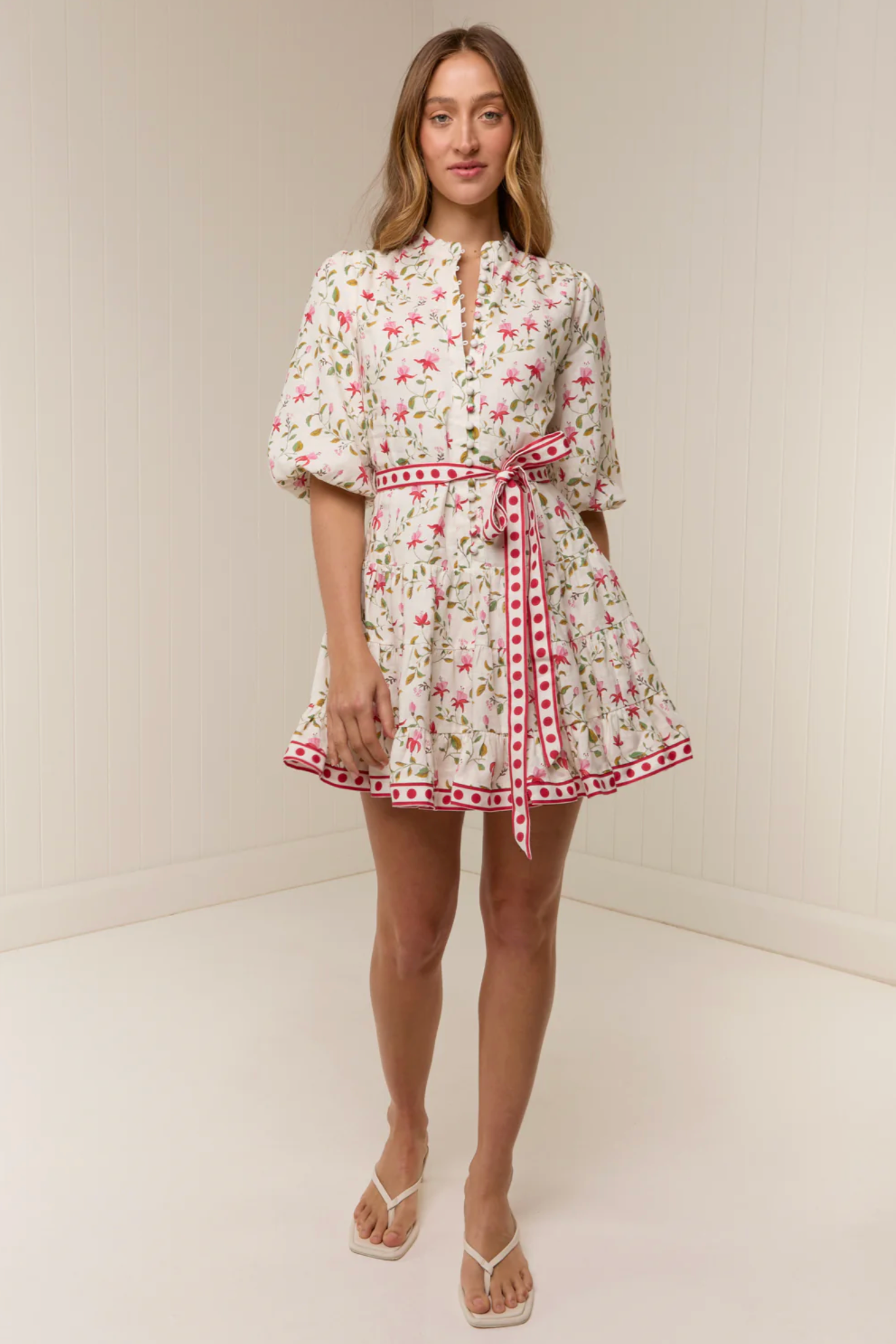 Gabrielle is wearing a size 8 and is 178cm tall with an 81cm bust and a 64cm waist. The Ruba Mini Dress is fitted through the shoulders and loose through the waist with a mini length tiered skirt. For a similar fit to Gabrielle, we recommend purchasing your regular size. Please refer to the size chart linked above for standard body measurements.