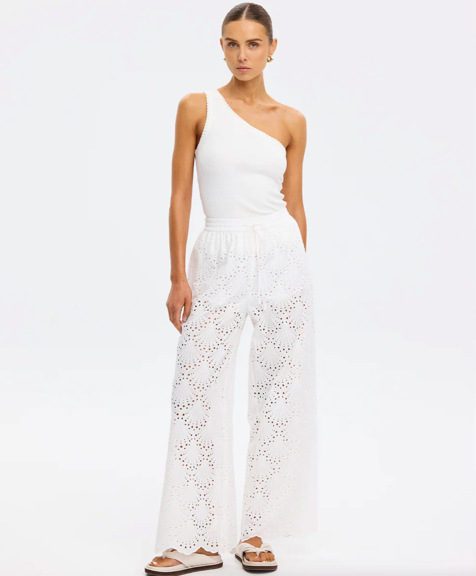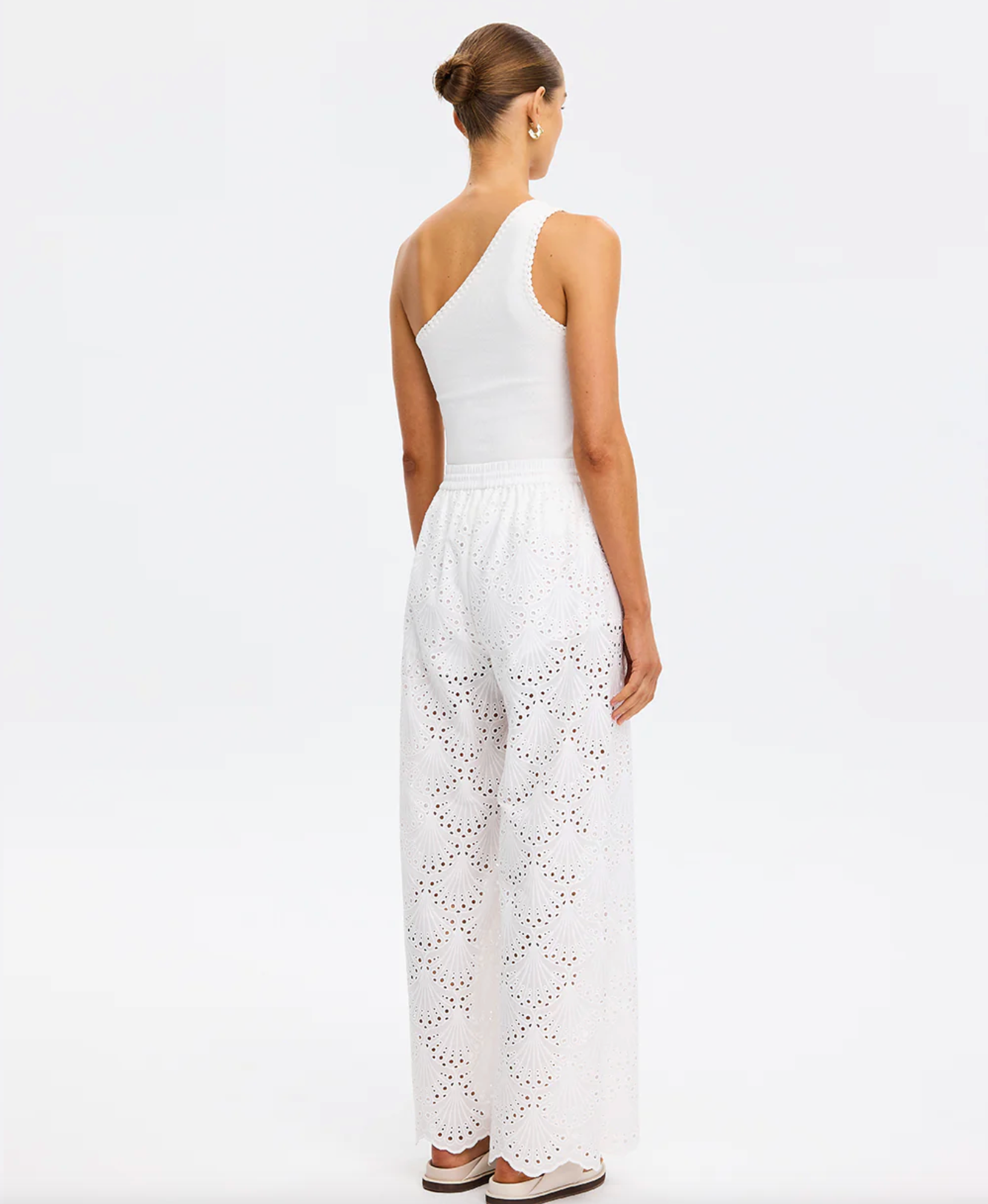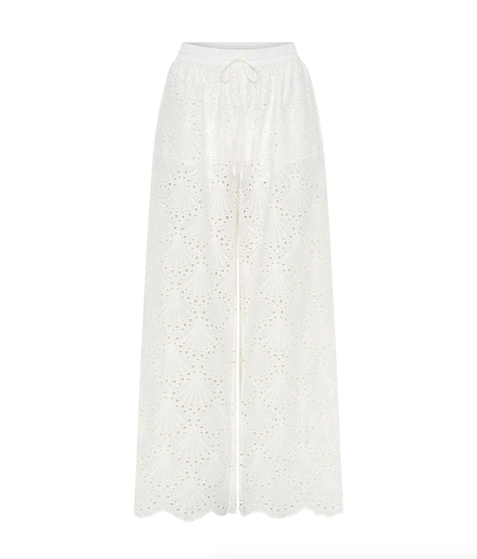 The Elodie Pants are crafted in a shell design broderie with a classic straight leg featuring an elasticated waist complete an adjustable drawcord with signature cord ends. Pair with the matching Elodie Top for a coordinated set, or style with a simple tank for an effortless look.