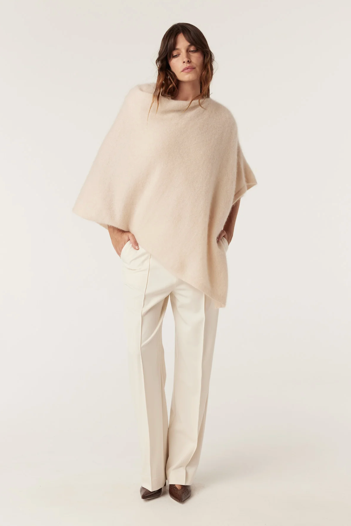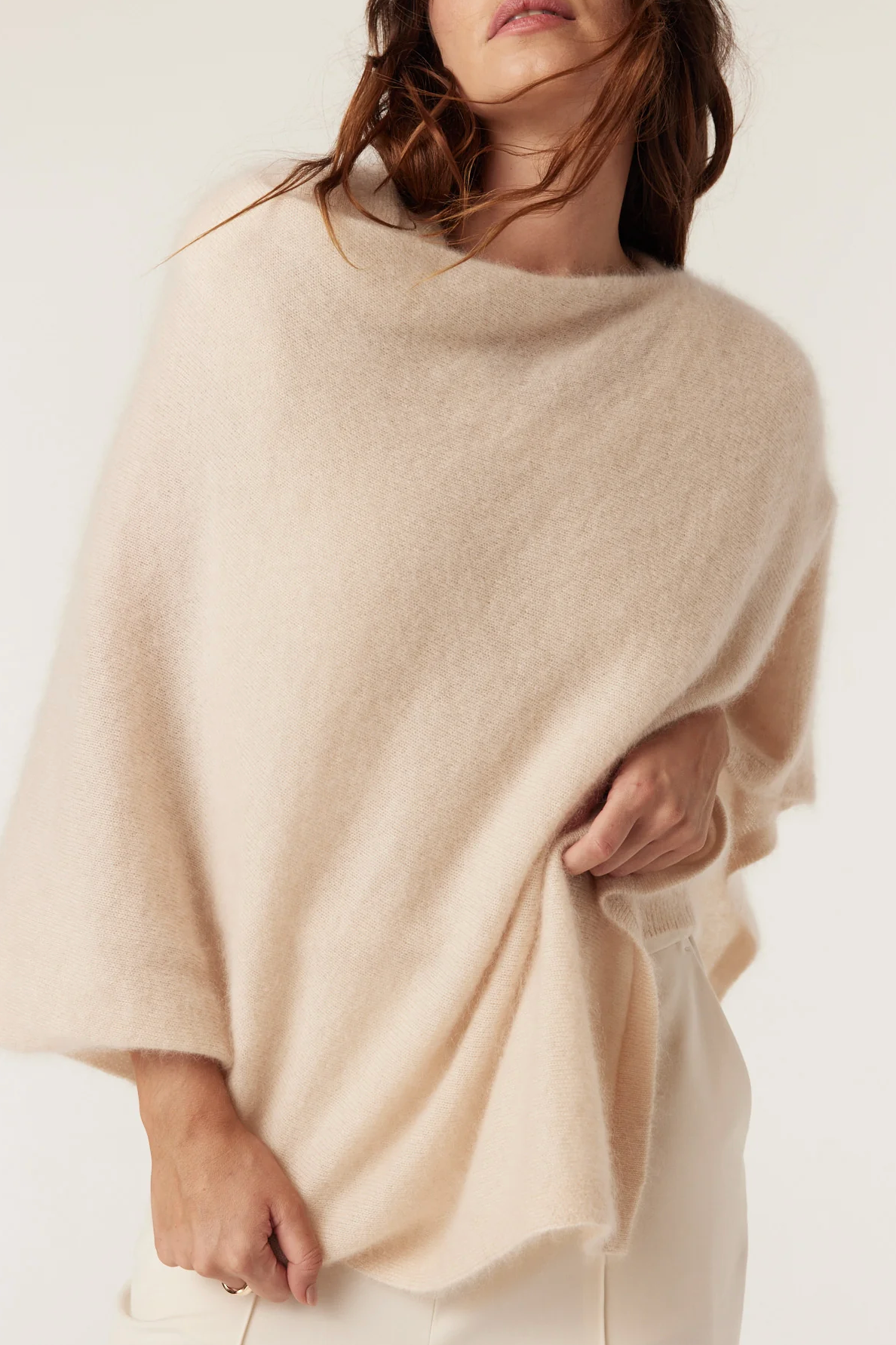 BRUSHED Pure Cashmere Poncho | FAWN