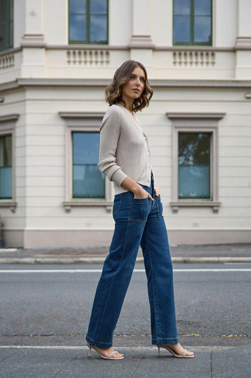Our signature Tailored Trousers designed as a jean, Carrie are high-waisted, fitted silhouette in wide-straight-leg that sit just below the ankle. Plus, they're Oeko Tex 100 Certified, so you can rest easy knowing they're free from harmful chemicals and dyes.