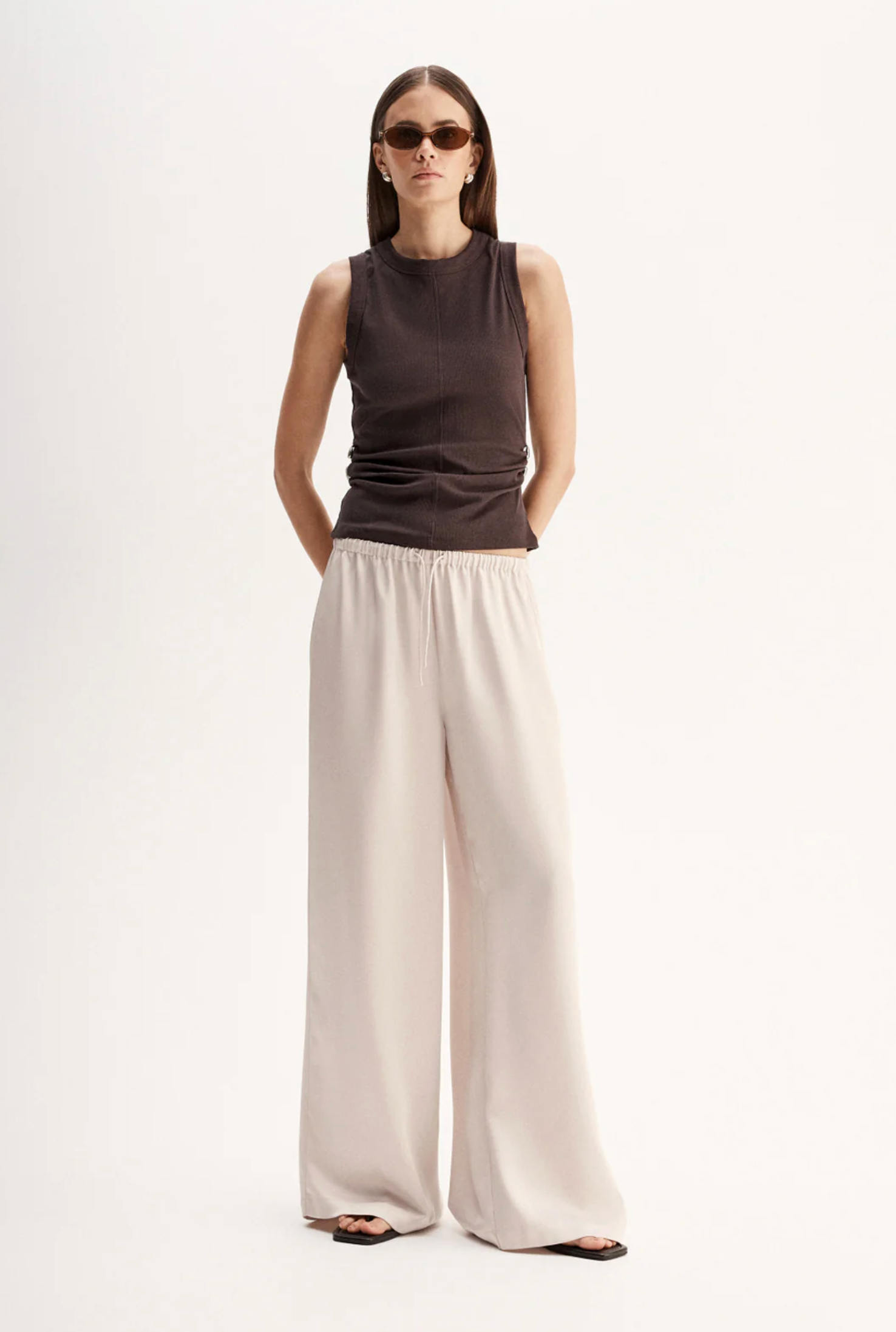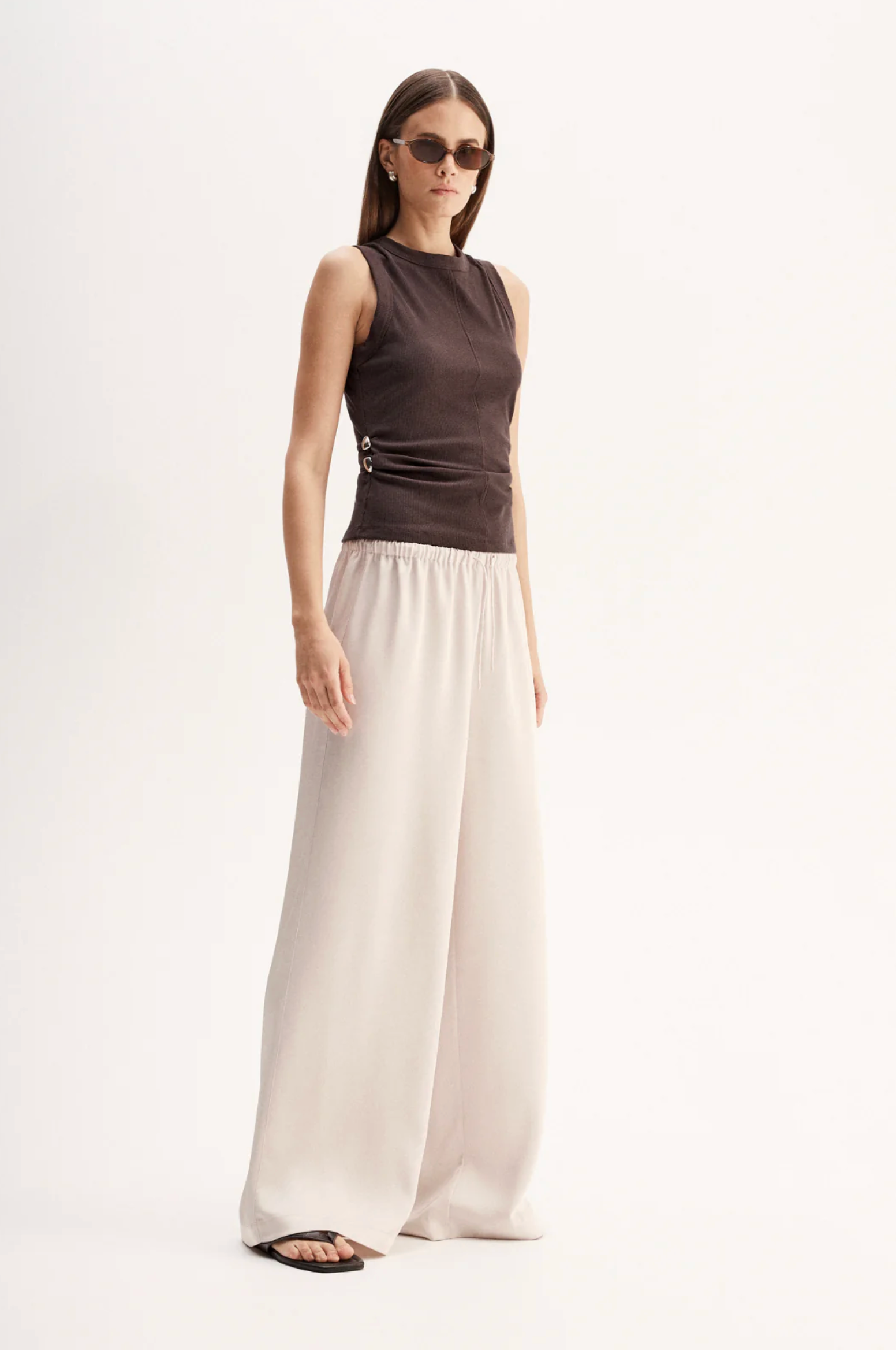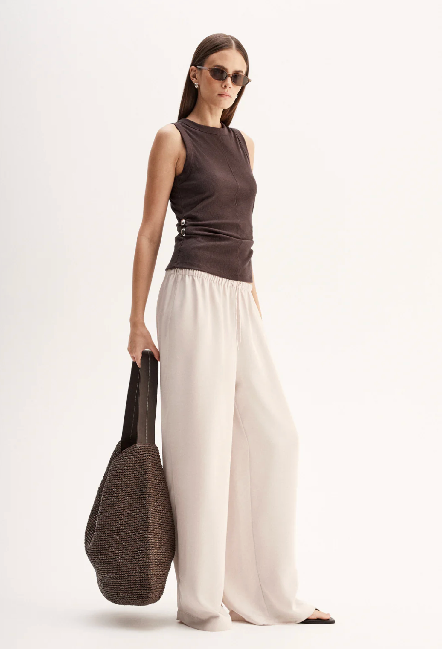 A sleek trans-seasonal piece, the Charlie Top is made of a soft ribbed fabric with a regular fit. This top is accentuated by exposed seam and chrome hardware detailing. Pair with tailored pieces for an effortless day to night outfit.