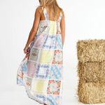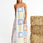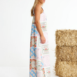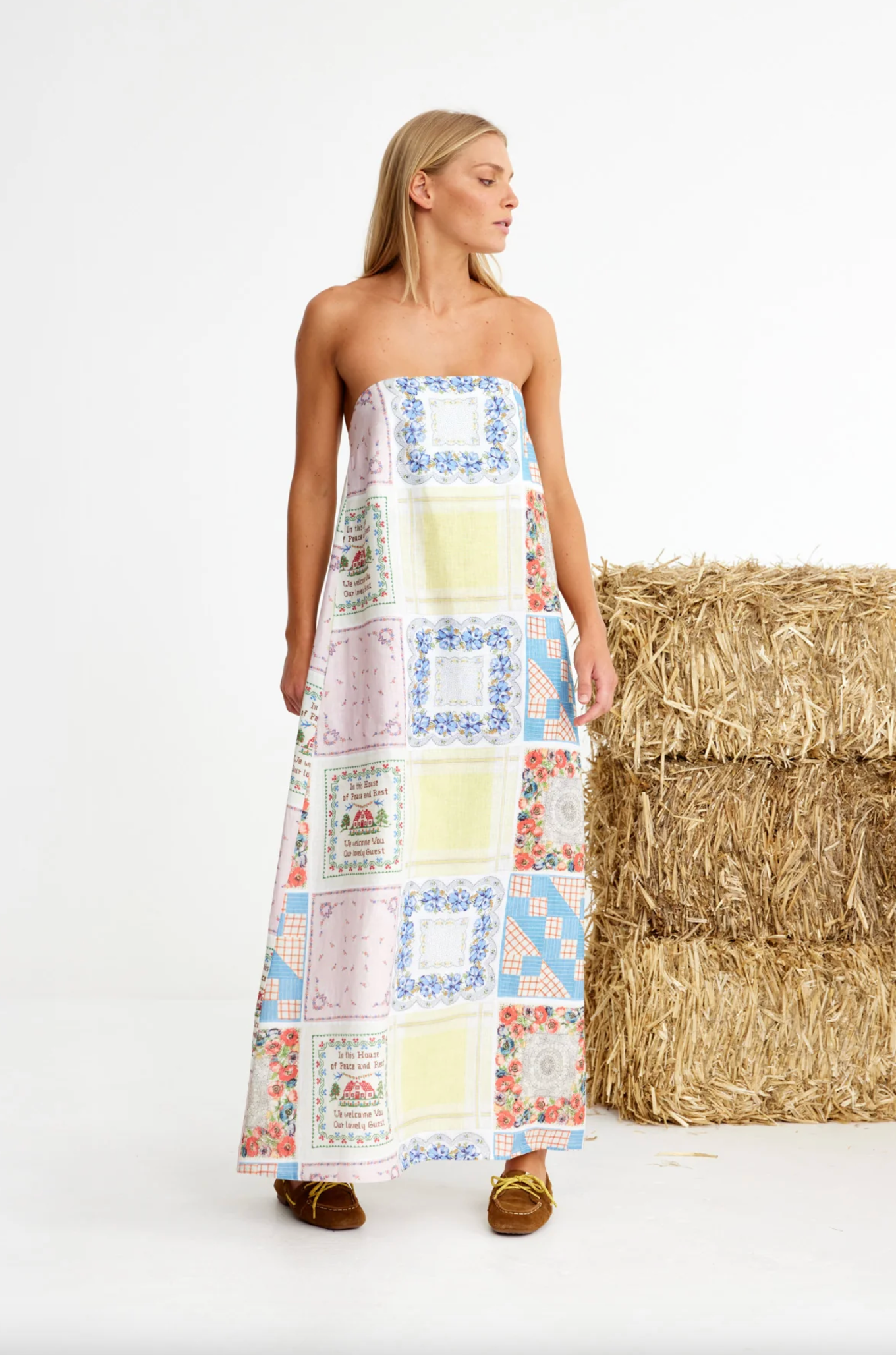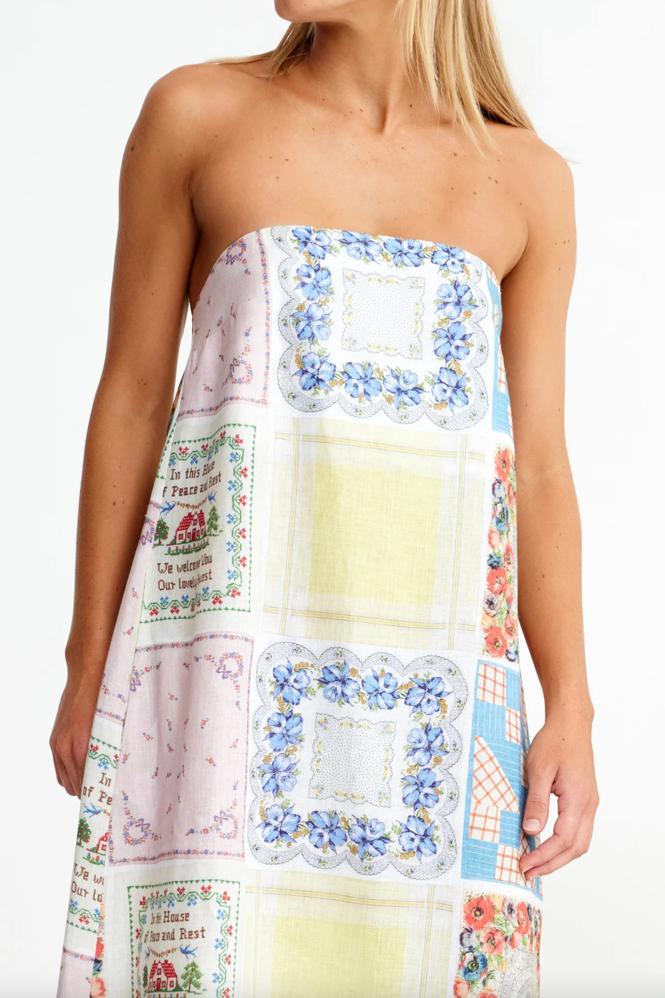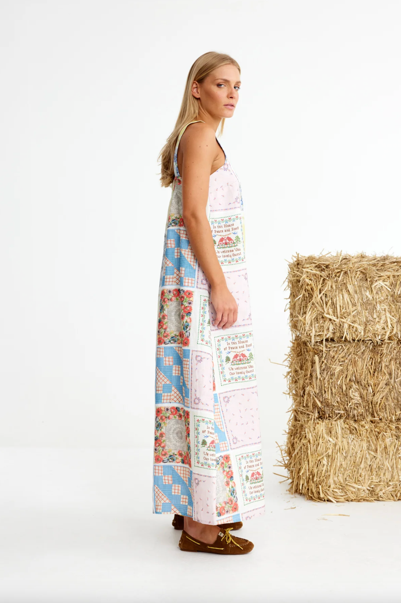 Bending Poles. For those not famil, its racing your ponies through a series of poles. Excellent. And just as cute simple good fun a sundress stitched with stories. Cut from 100% linen & patterned with a patchwork of daintiest vintage handkerchief designs. Cute as a cucumber. Scallop florals, sweet checks, cross stitched homespun charm. Removable shoulder straps, an elasticated back, deep side pockets keep it easy & unfussy, whether you’re leaning on the fence rail or festivals, footloose & fancy free. The kind of dress that says you’ve inherited both style & a trunkful of tales.
