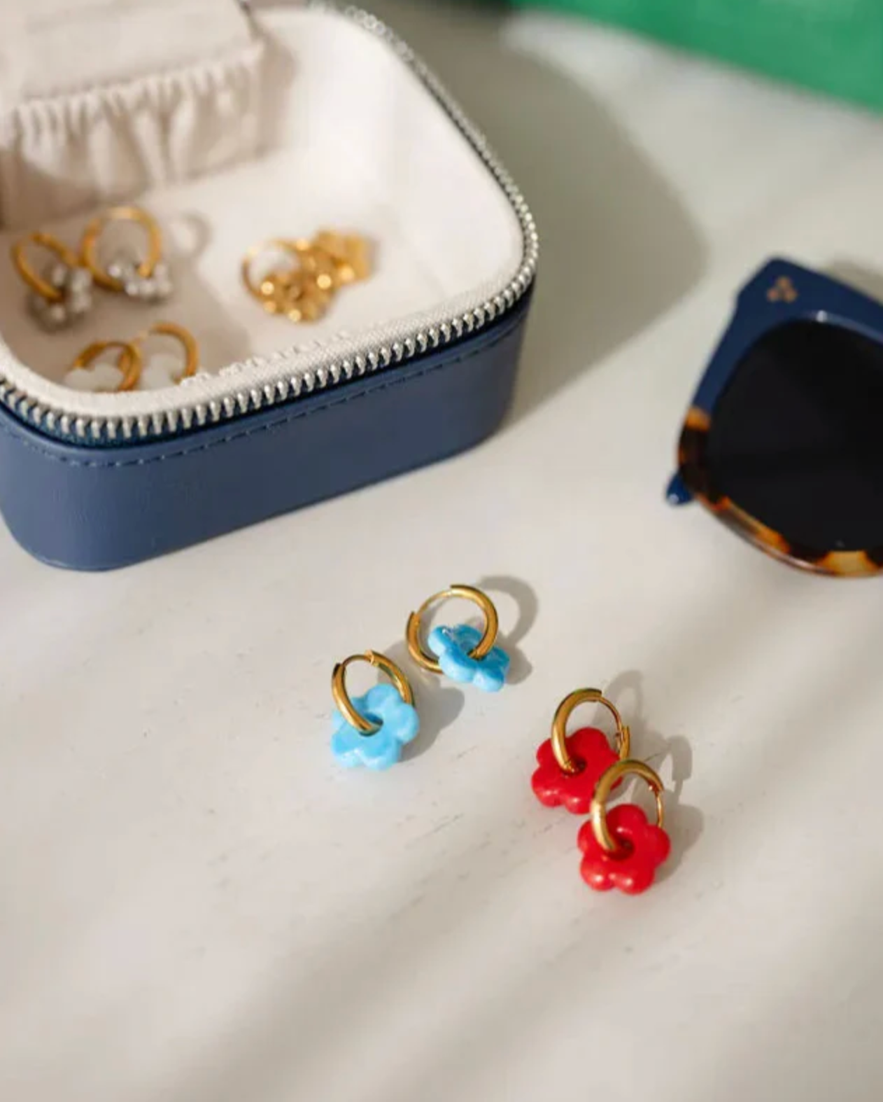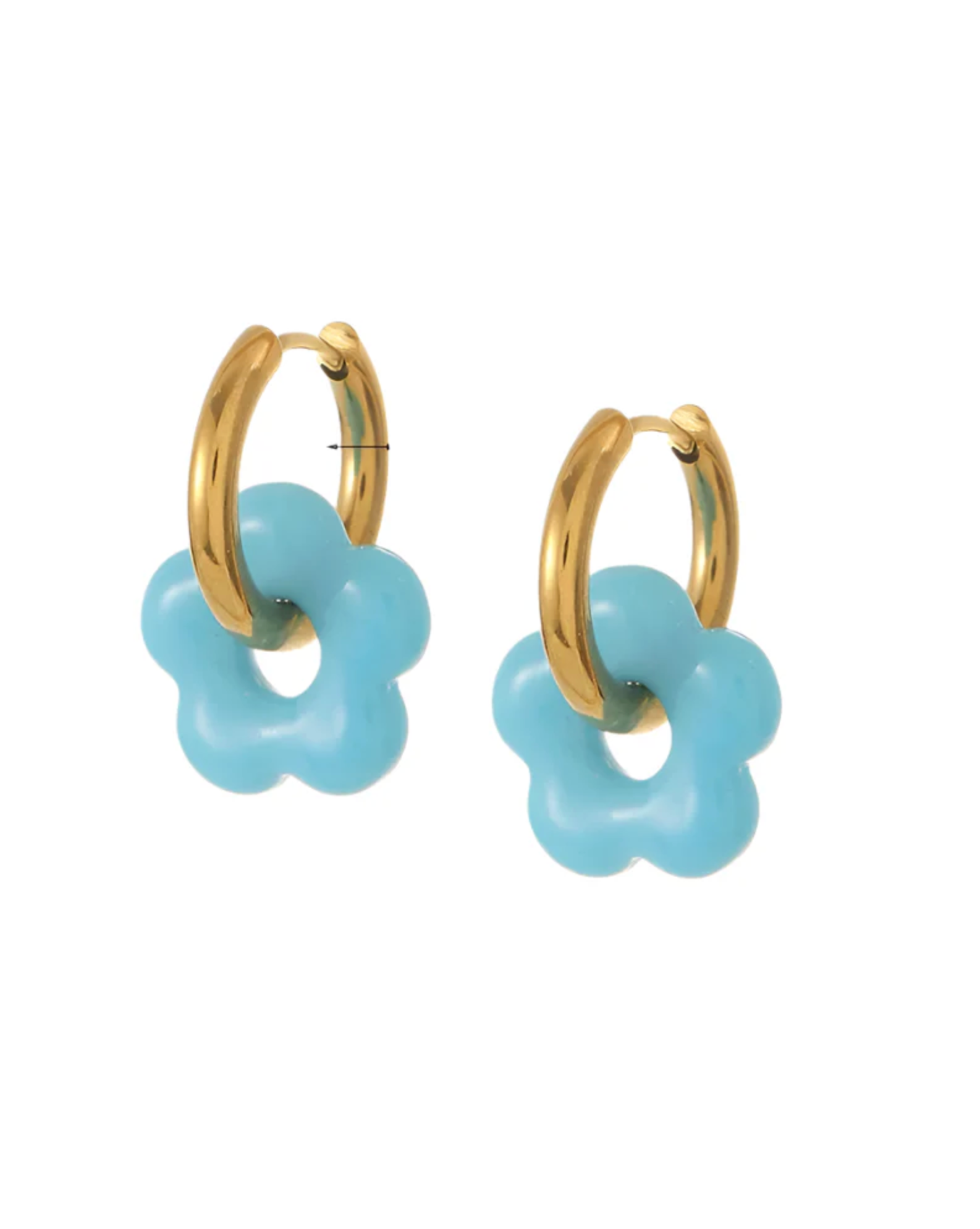 Fleur is pure throwback cool with a fun little twist. A blue resin flower-shaped charm sits snugly on a classic gold hoop. Wear her with the floral charm for extra flair, or slip it off and rock the sleek gold hoop solo—hello, 2-in-1 versatility! She’s bold, a little flirty, and totally back in vogue. The kind of piece that pulls your whole outfit together without even trying.