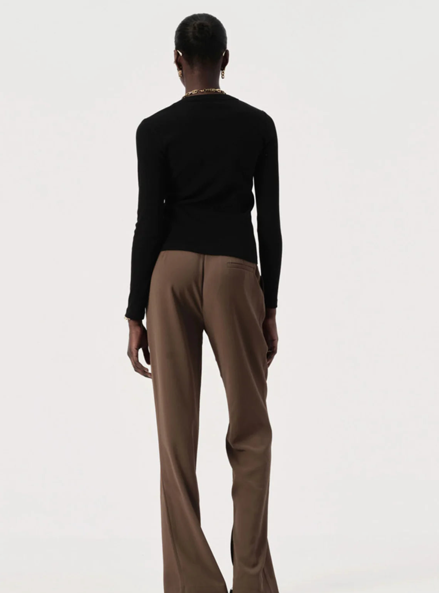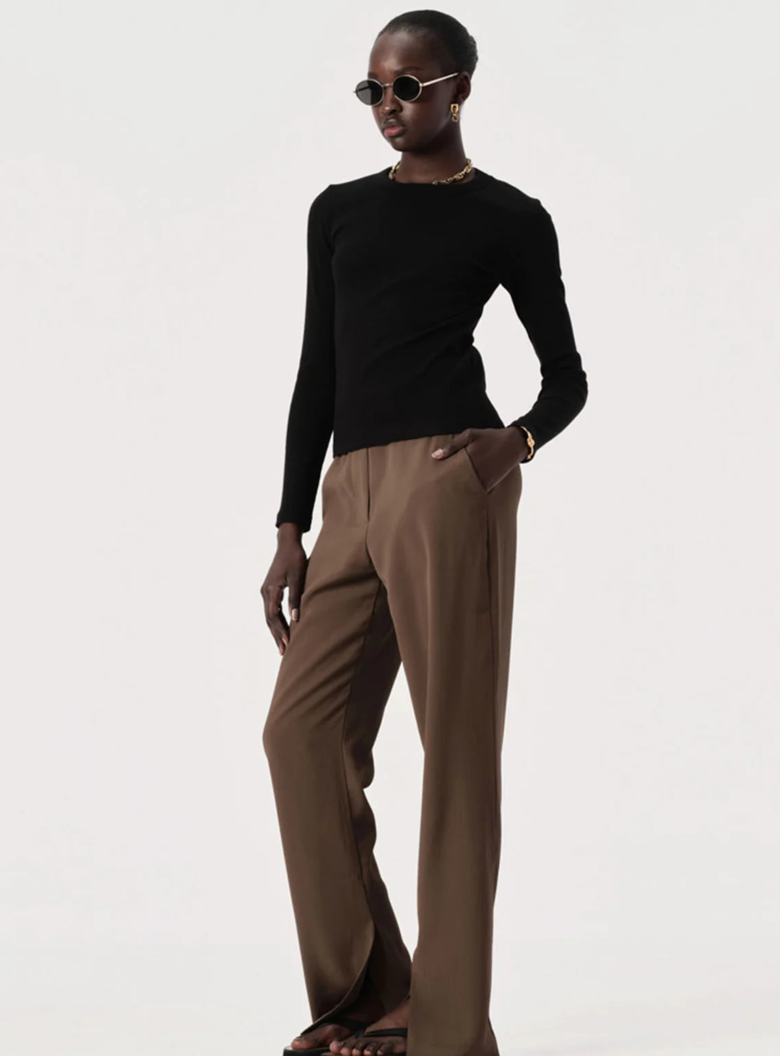 The ultimate everyday wardrobe staple, the Nola Long Sleeve Top in BLACK is part of the E.C Premium Basic range made from a ribbed cotton fabric that's been chosen for it's sleek look and supreme comfort. Perfect for layering under knitwear or pairing with classic denim, this top has a crew neckline, long sleeve and a fitted silhouette.