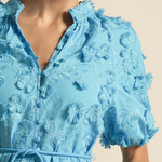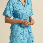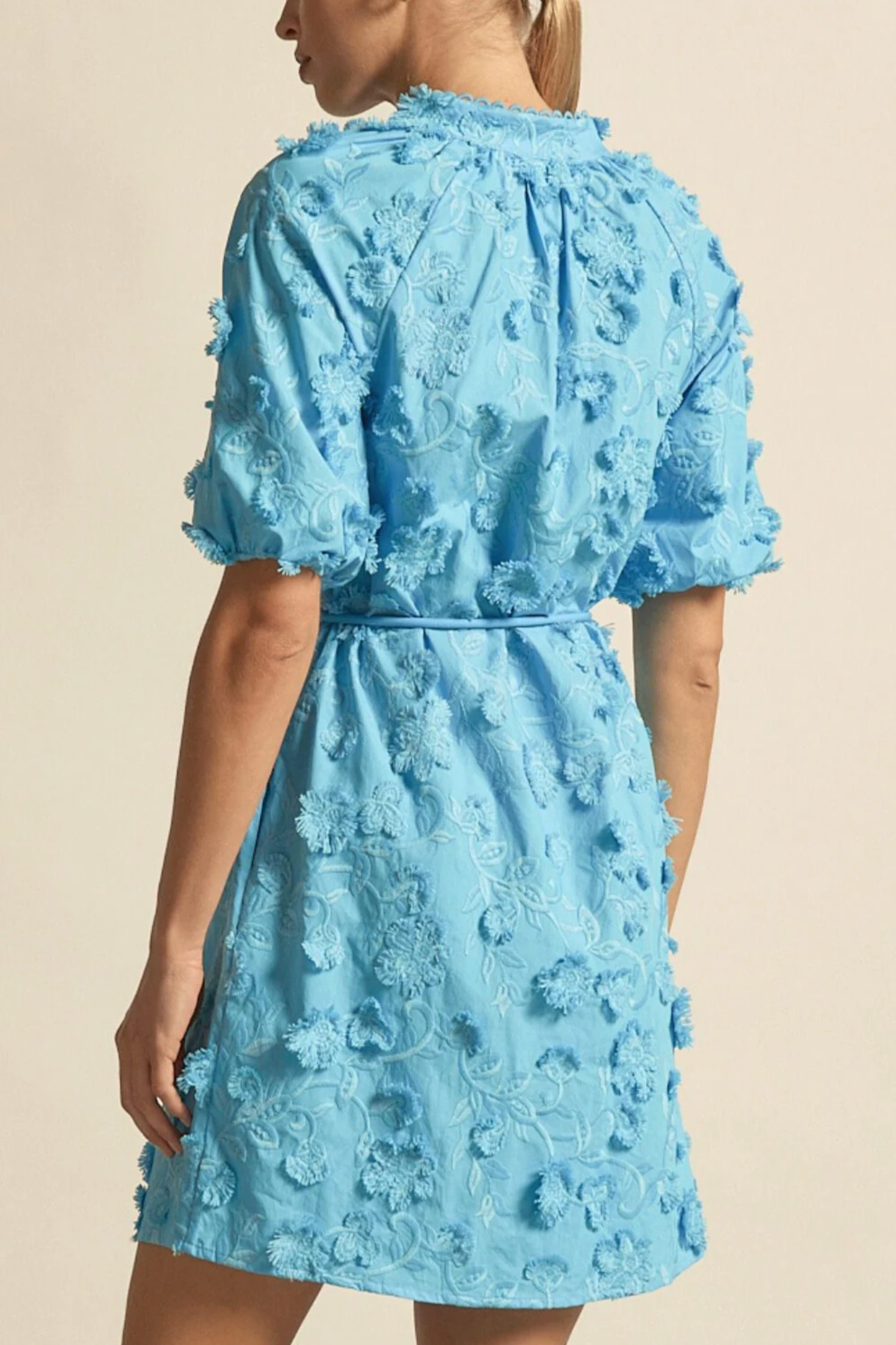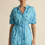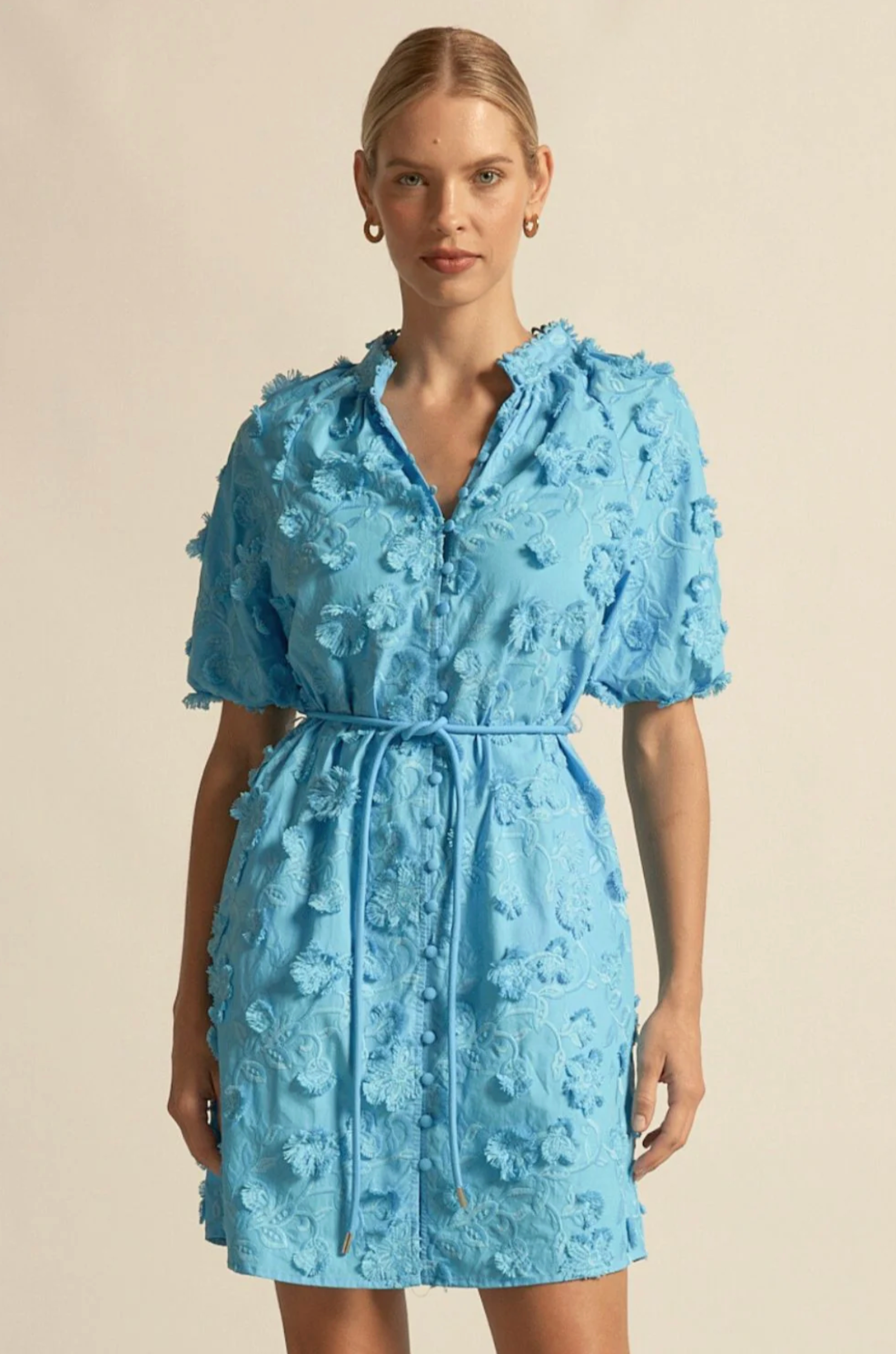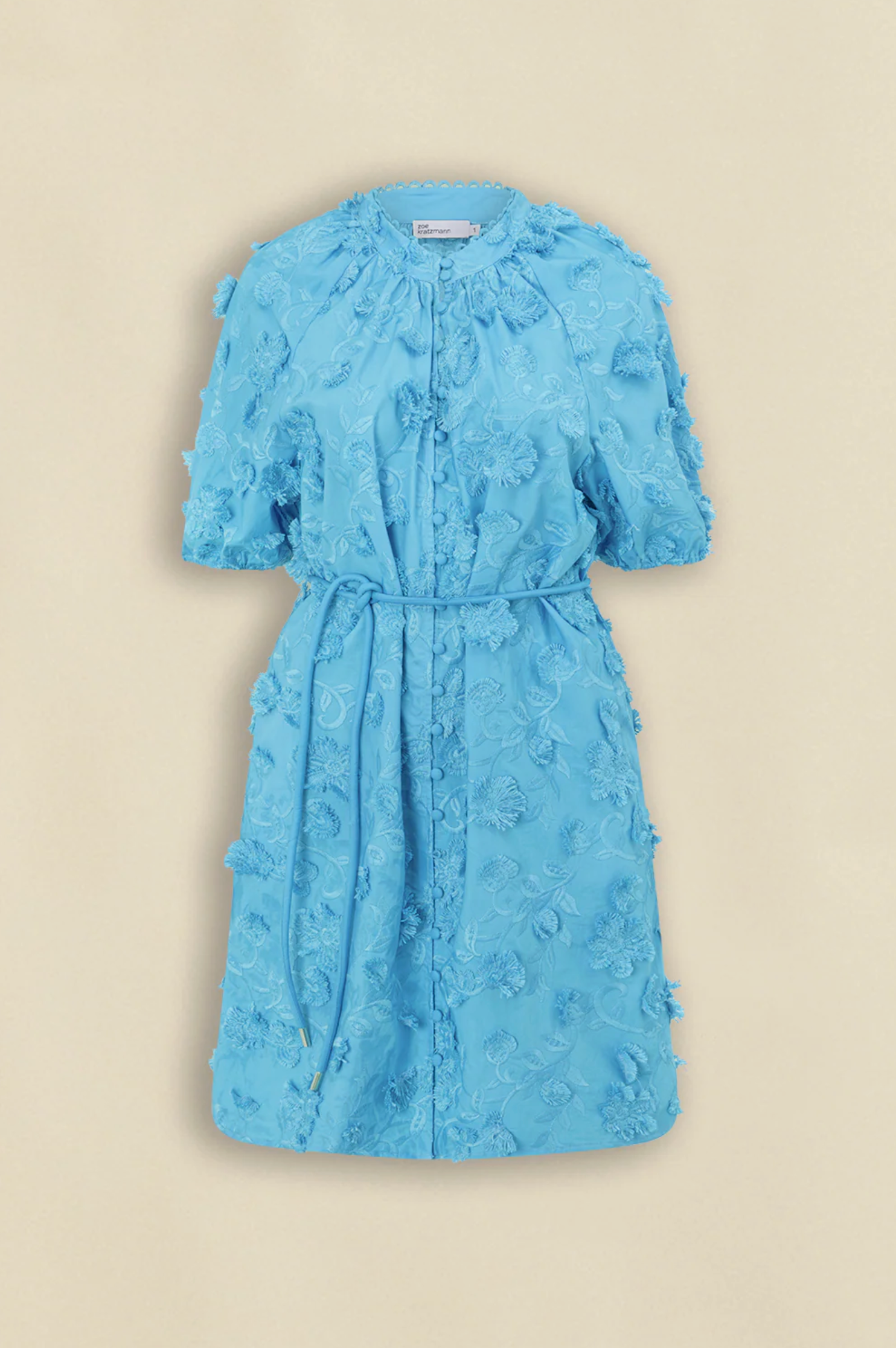 crafted in cotton, the aspect dress combines a dynamic 3D floral broderie with a scalloped lace neckline finish. A piece designed for elevated and romantic summer dressing.