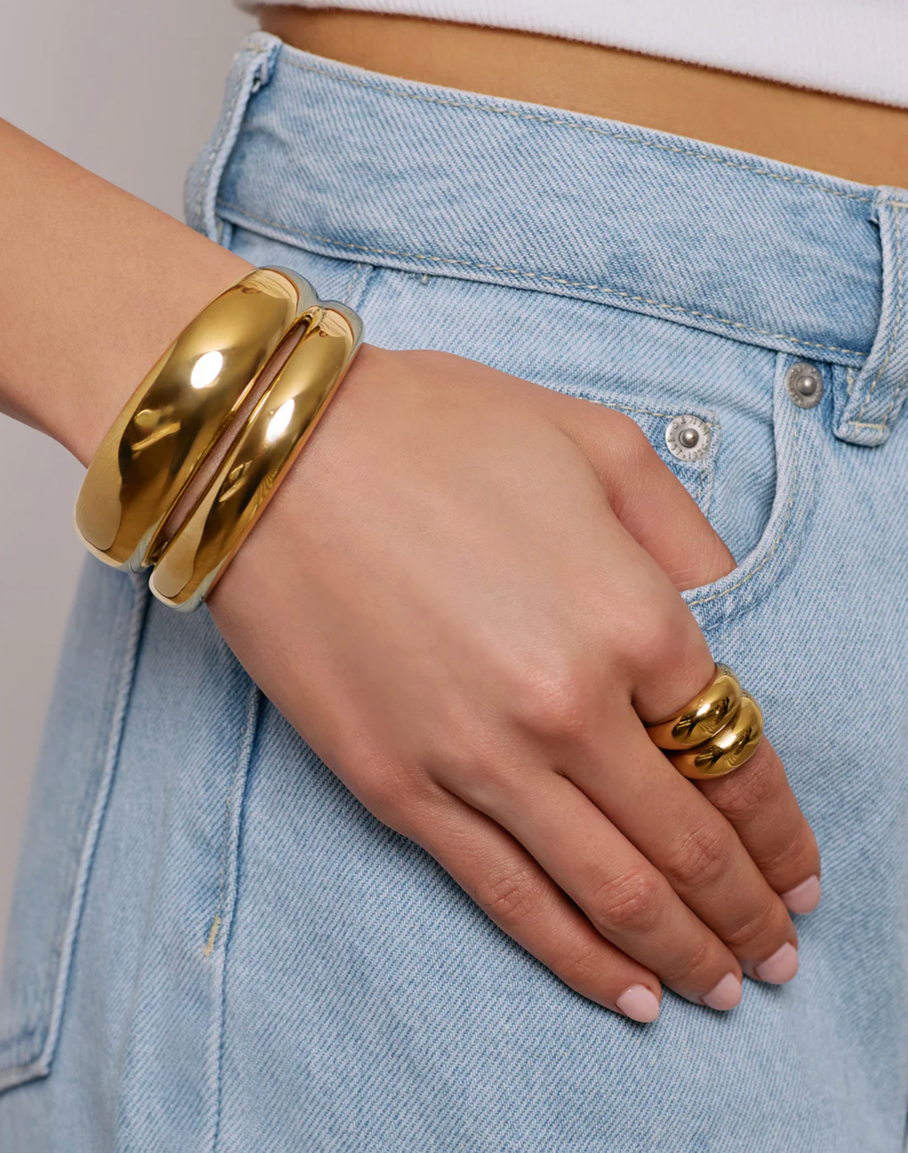 Gorgeous and golden, the Georgia Ring is the ultimate power piece! Sleek, modern, and unapologetically stylish, Georgia is the perfect finishing touch of drama your evening look needs. Available in Gold and Two Tone.