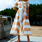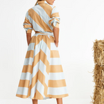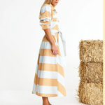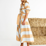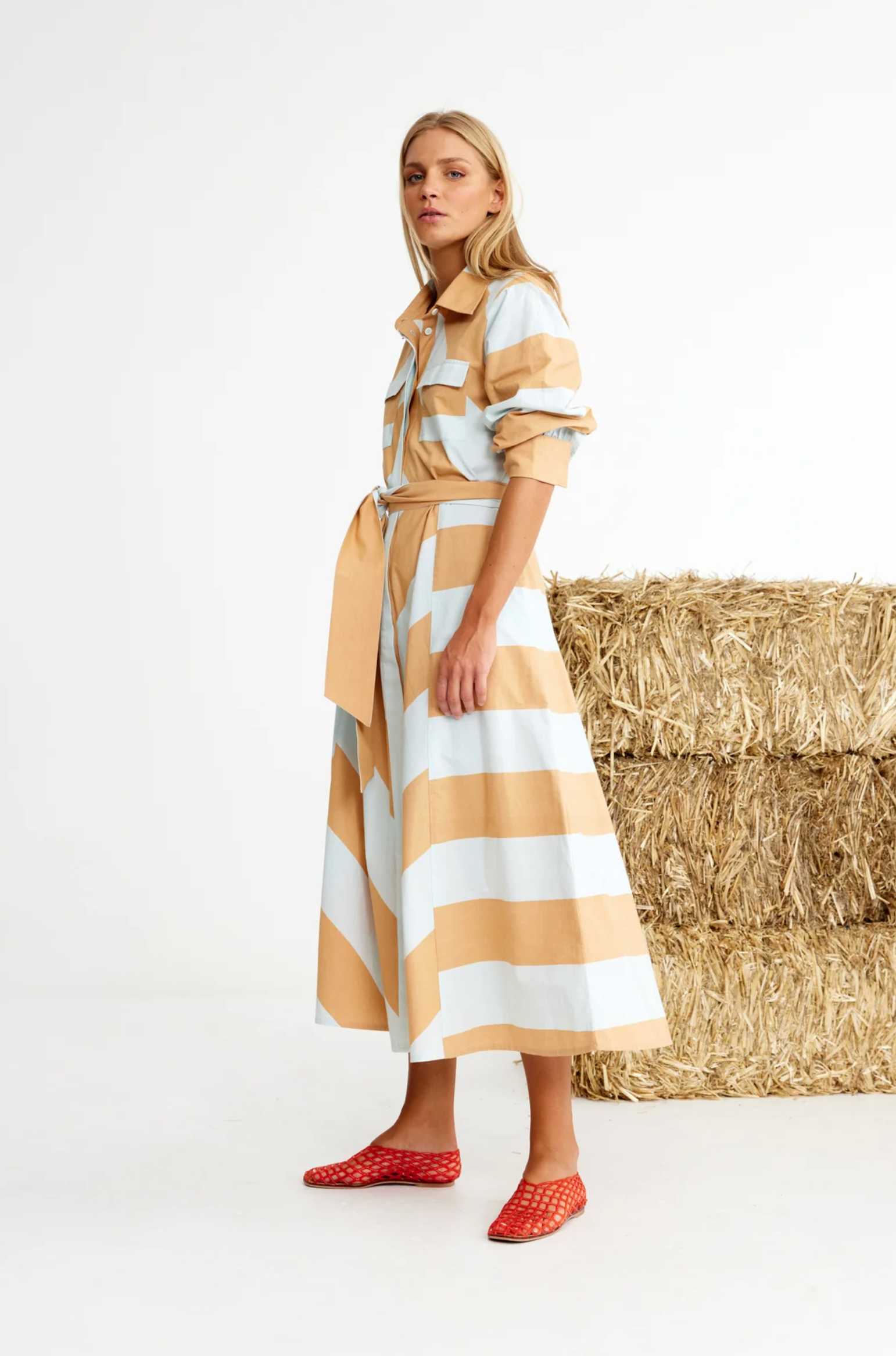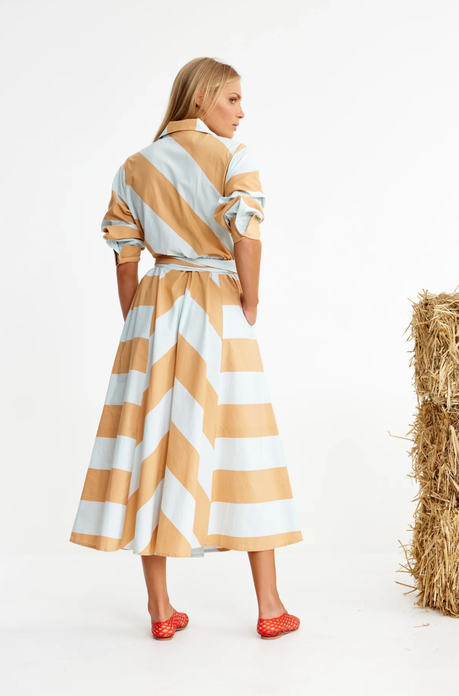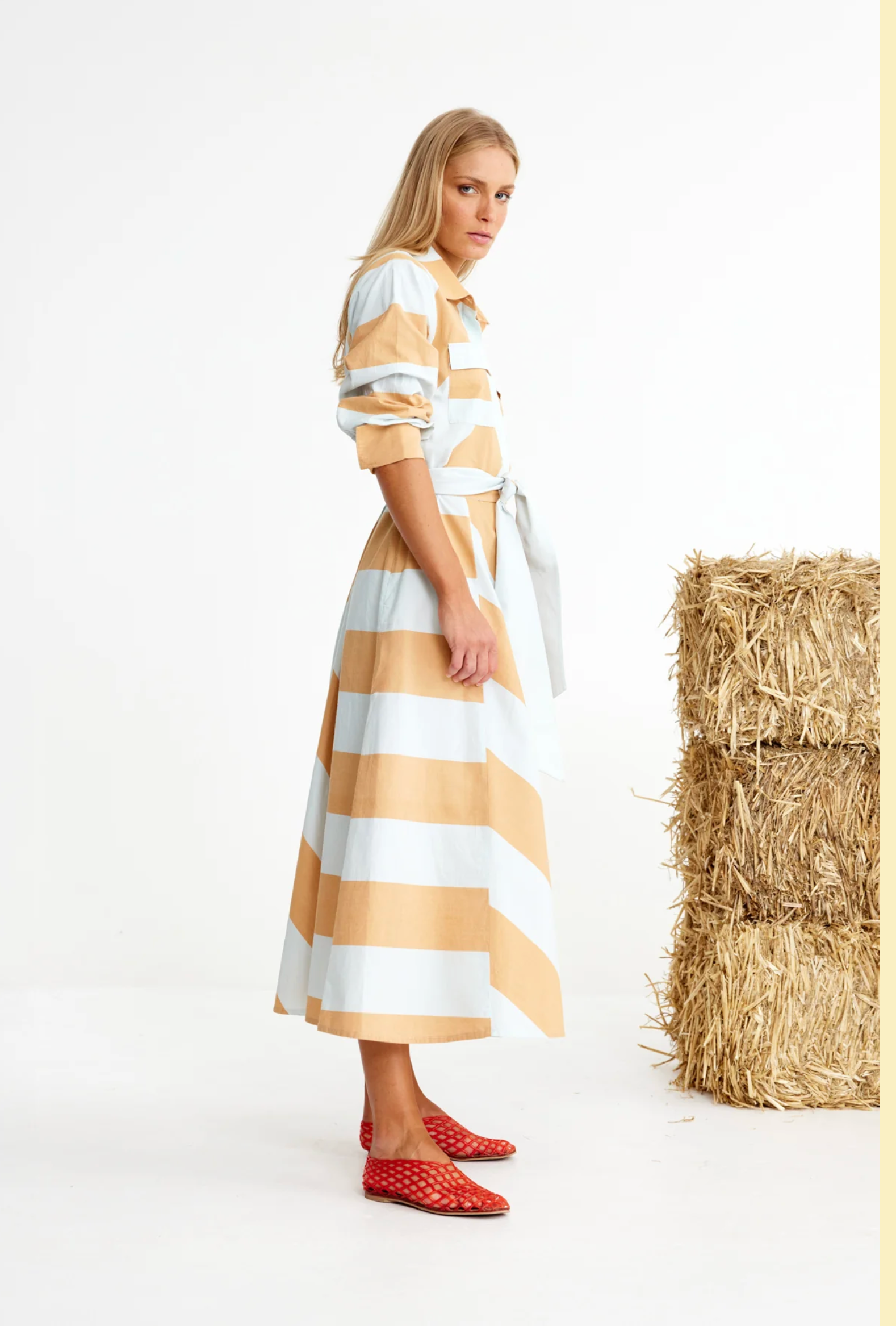 The CHESTNUTS shirt dress in sky blue and oaten hay is your sunny-day just add rose, & all your friends sidekick. Just say yes. One of our classics & in the best colour combination we think we have ever done. Made from soft cotton poplin, it’s light, perfectly cut and beautifully cut. Just add tan leather flats. Or a woven lattice leather heel. Mani, Pedi, Lip. Make the booking, make sure you allocate extra time as its going to be a long lunch. A Binny summer classic. Adds to cart, creates the group Whats App chat, books the table.
