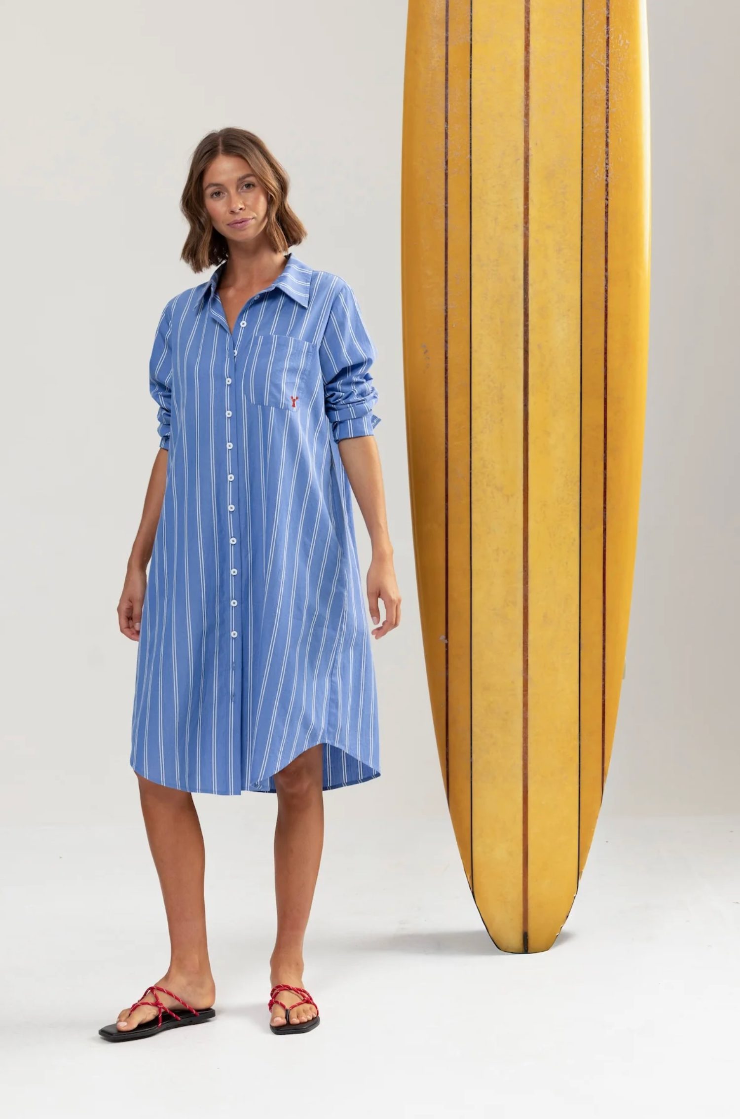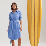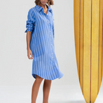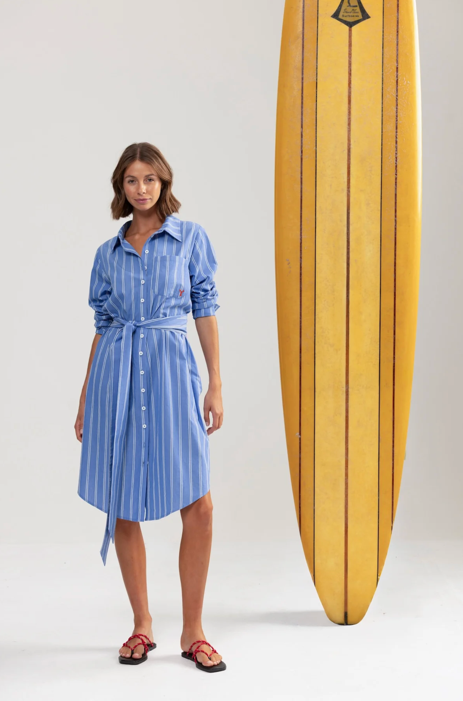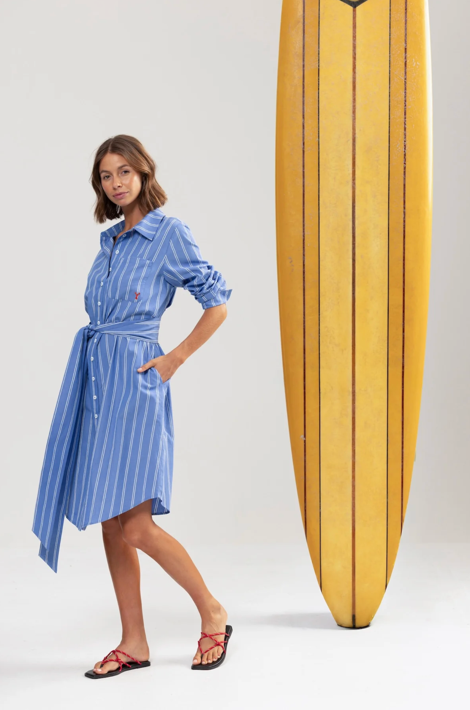 CAPE BYRON has that laid back relaxed easy charm just like you on holidays. Not too oversized, just with a neater fit, side pockets a waist tie for shape when you want it. Midi length, made for leisurely walks to lunch with your favourite ladies or little people. Complete with a mini red embroidered lobster on the pocket to take it into very cute Binny territory.