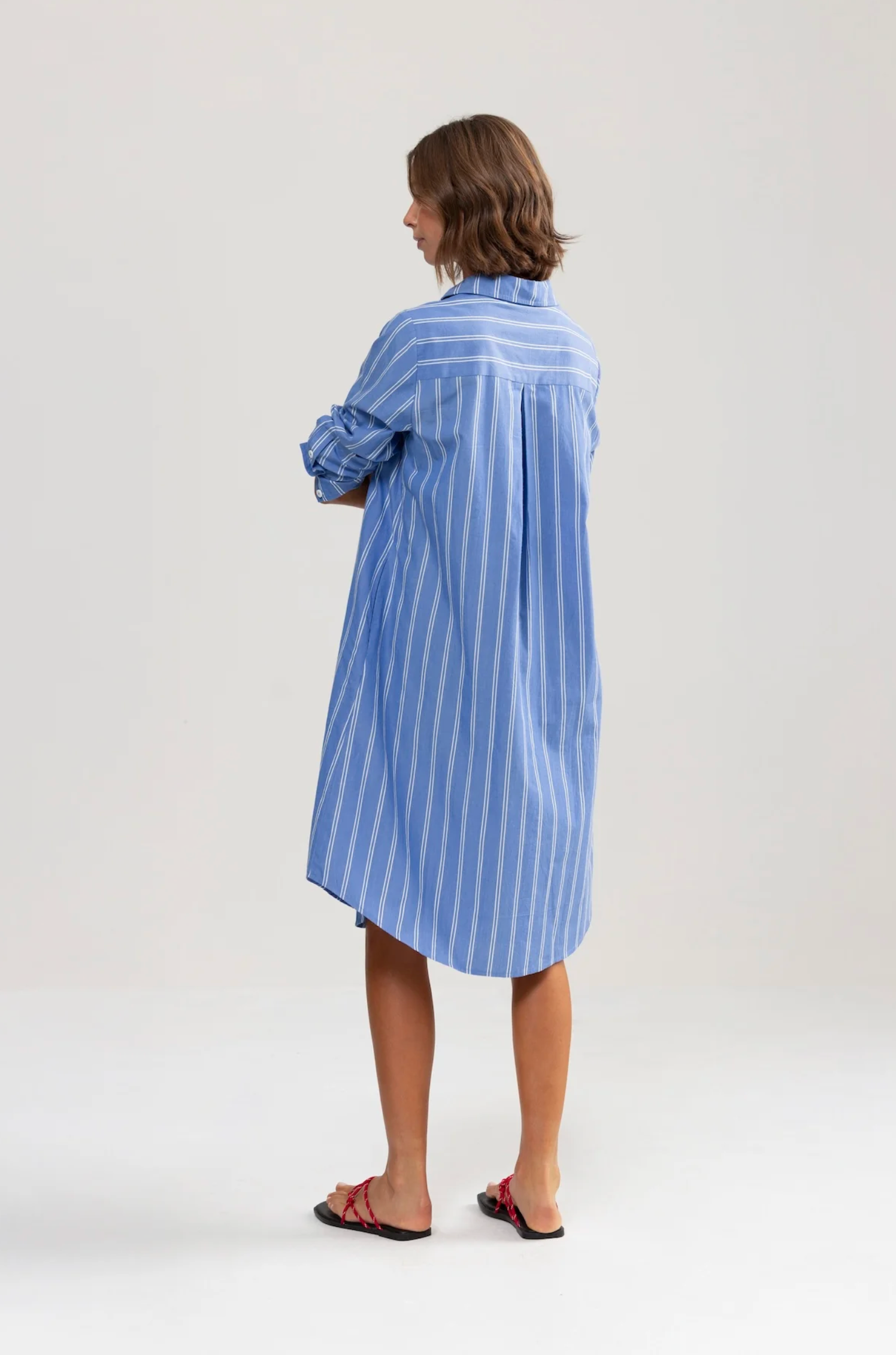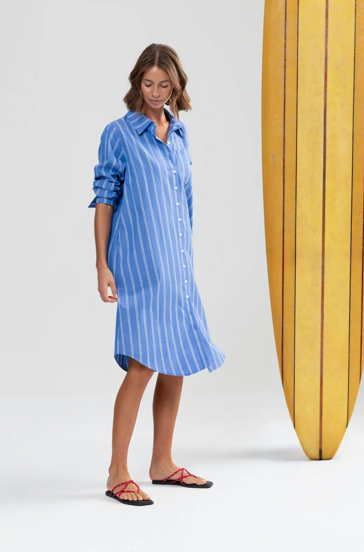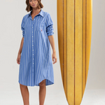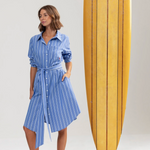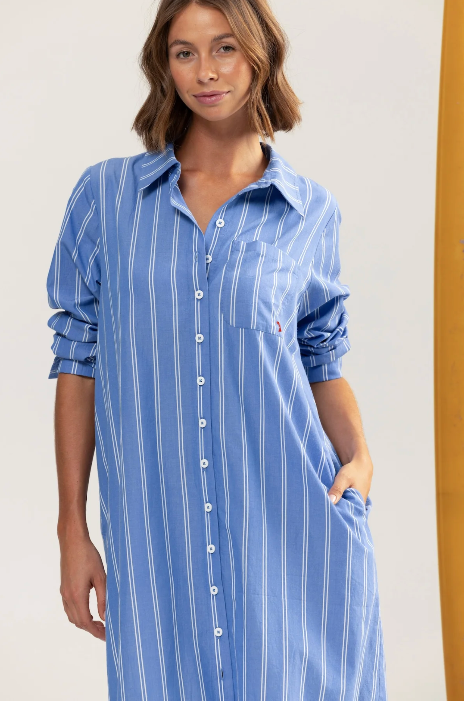 CAPE BYRON has that laid back relaxed easy charm just like you on holidays. Not too oversized, just with a neater fit, side pockets a waist tie for shape when you want it. Midi length, made for leisurely walks to lunch with your favourite ladies or little people. Complete with a mini red embroidered lobster on the pocket to take it into very cute Binny territory.