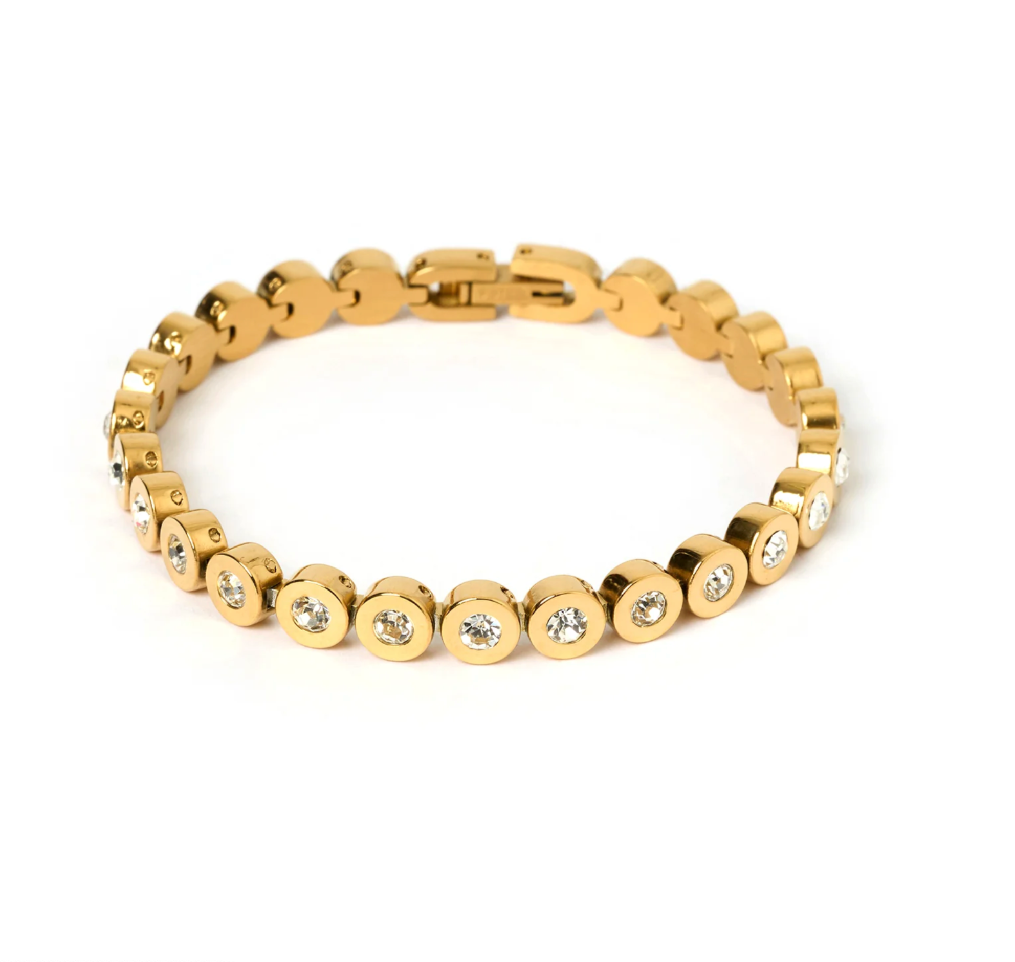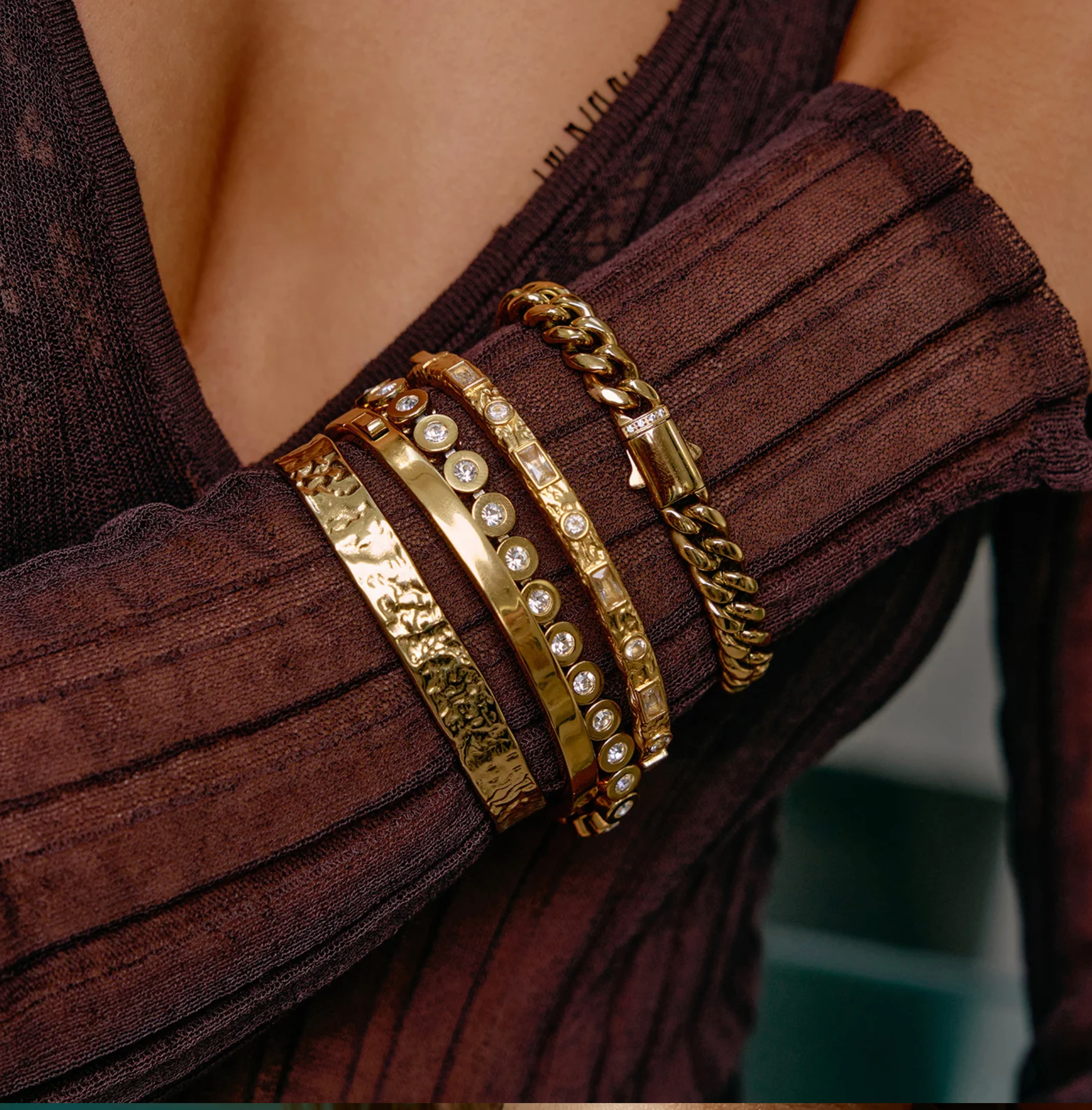 Sophistication and style are all we see when we look at the Maeve Bracelet. This classy chain is adorned with beautiful gemstones making it the perfect luxe jewel to complete any stack.