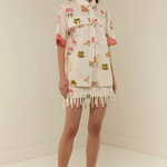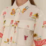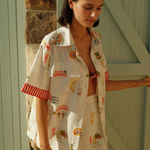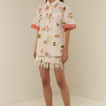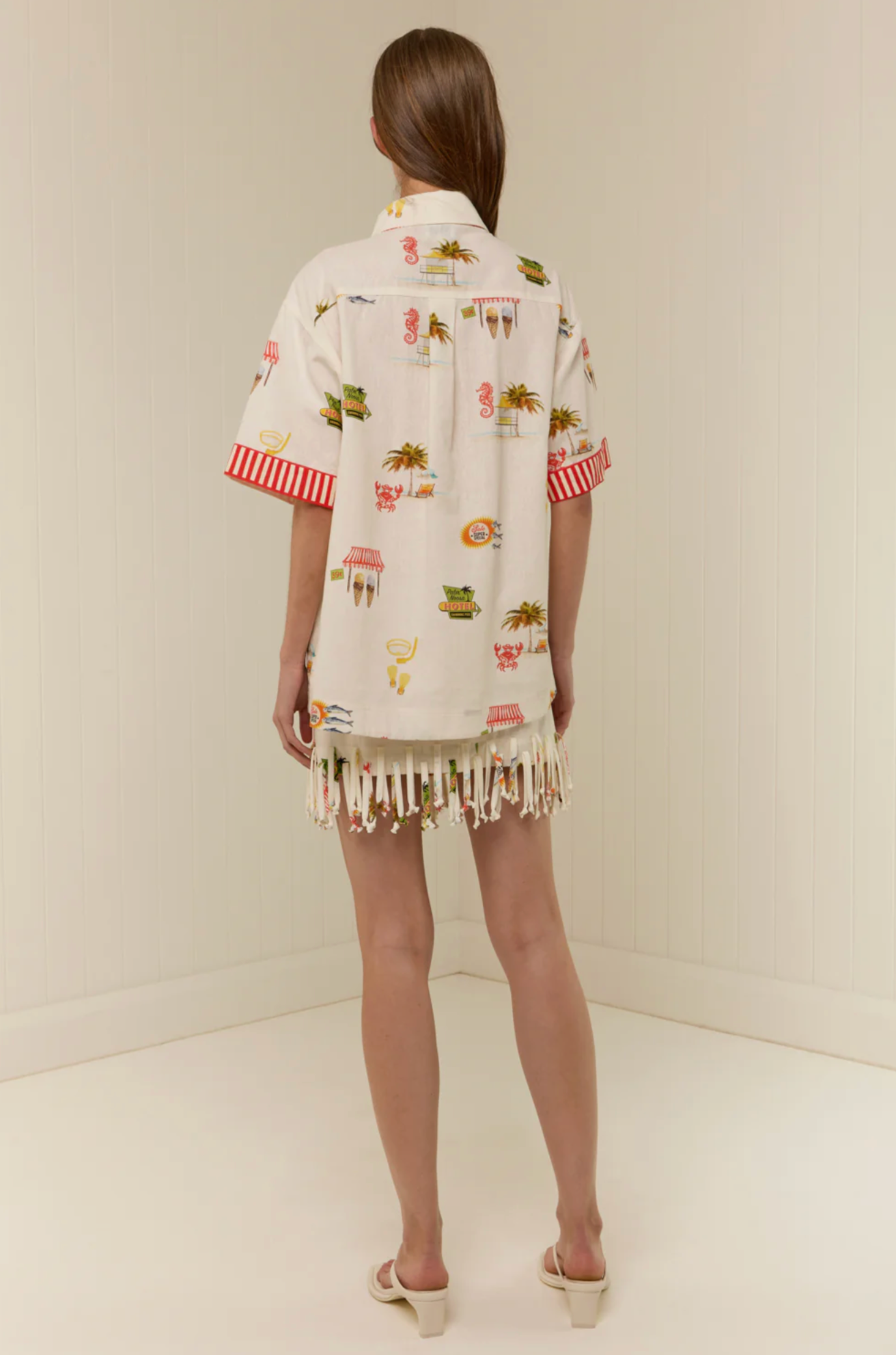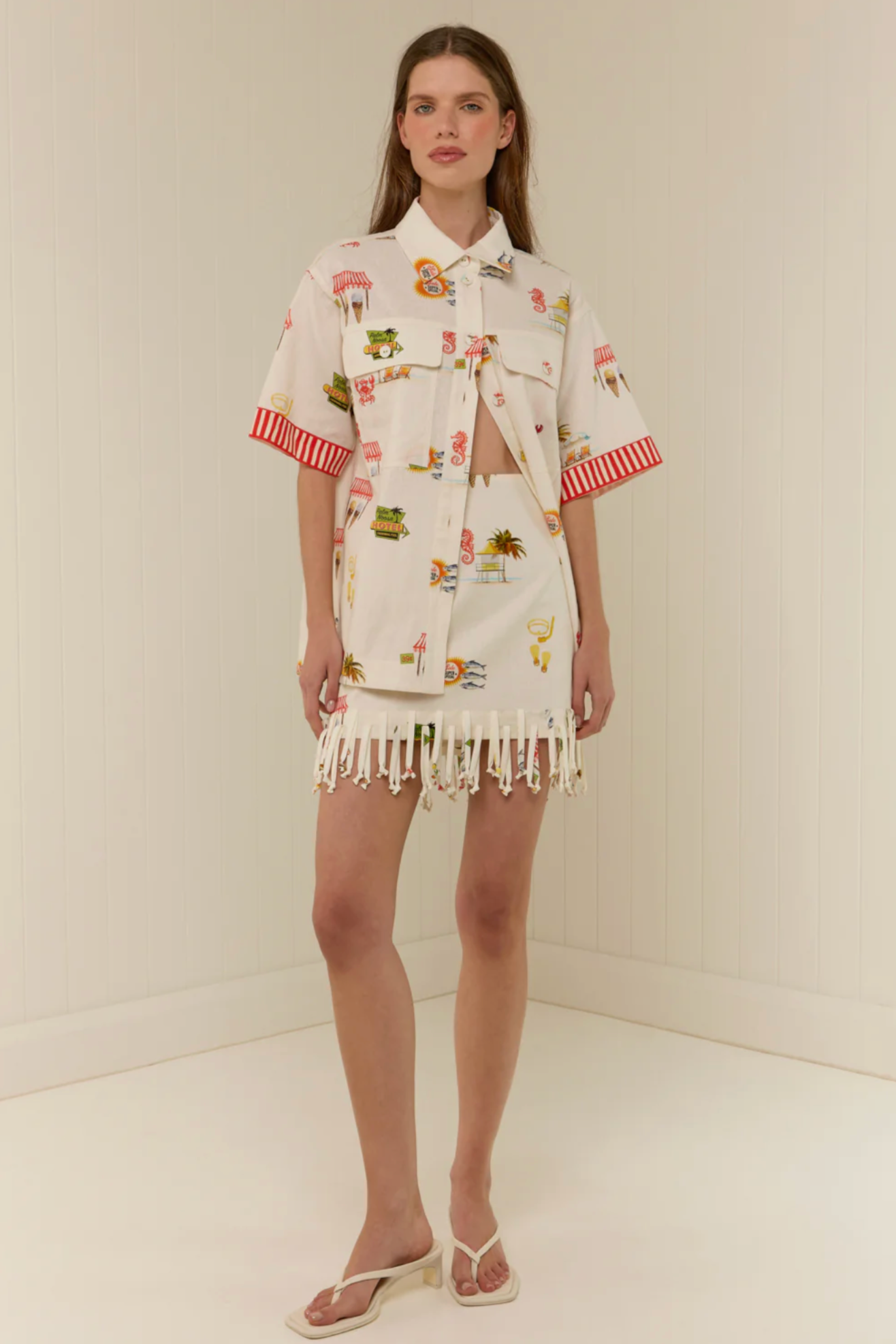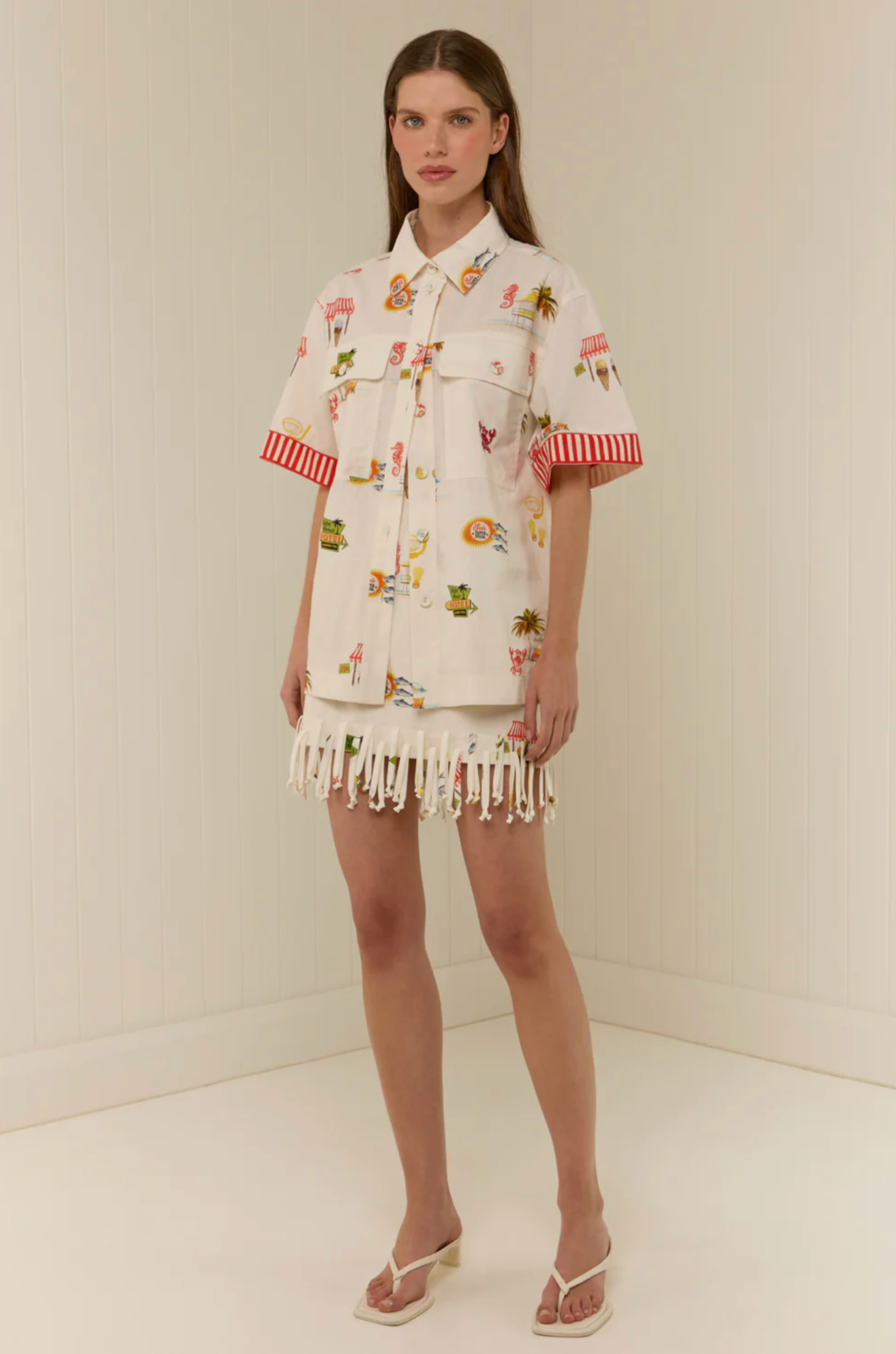 The Alto Shirt in our exclusive Tropicana print is a shirt silhouette crafted from a premium Linen blend. The Alto Shirt is designed to be an oversized boxy fit, featuring statement pockets, contrast border detailing and an embroidered pocket design element. Pair back with our Tropicana Skirt for a matching set. Please refer to our size and fit guide for further fit details.