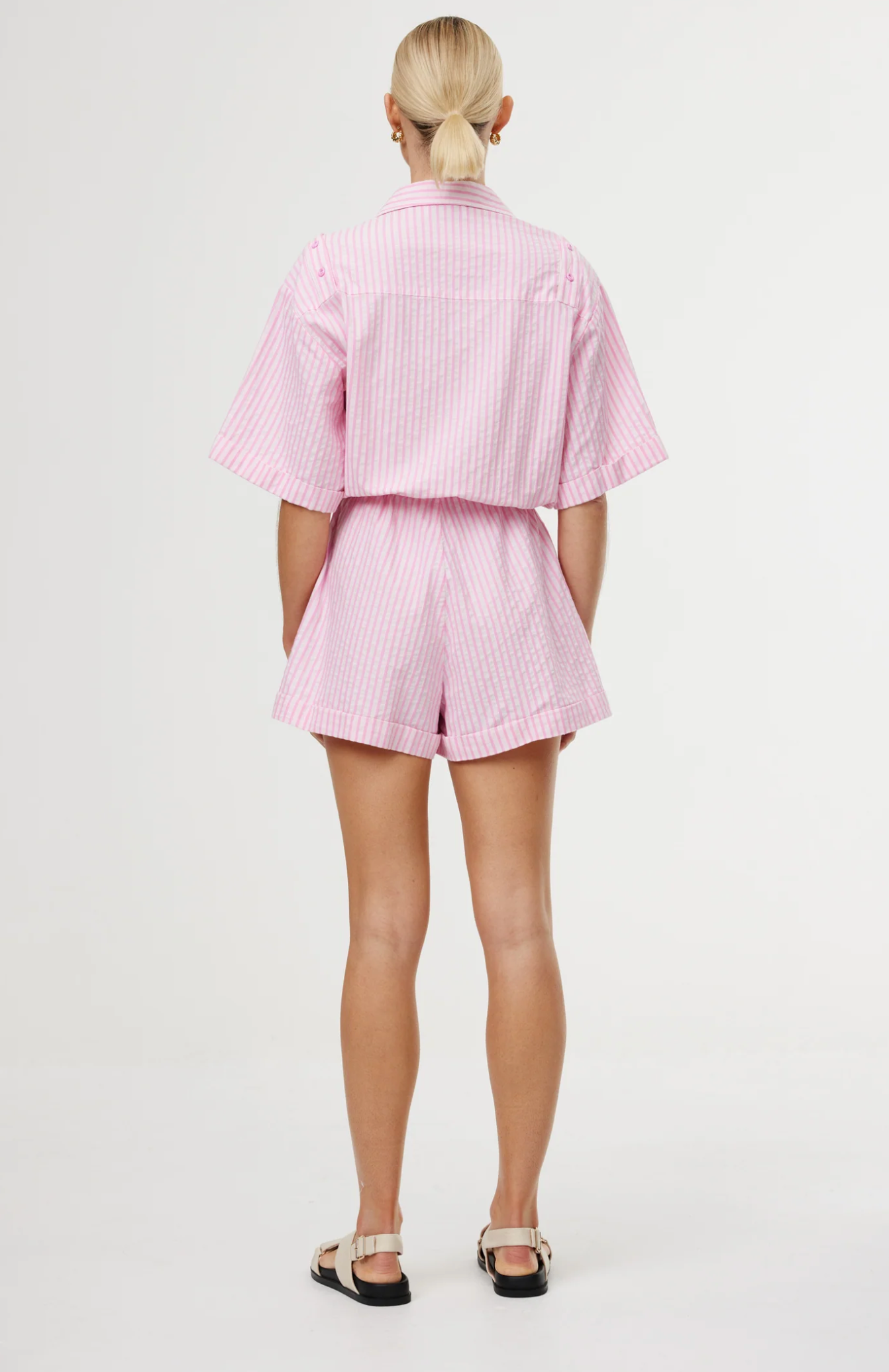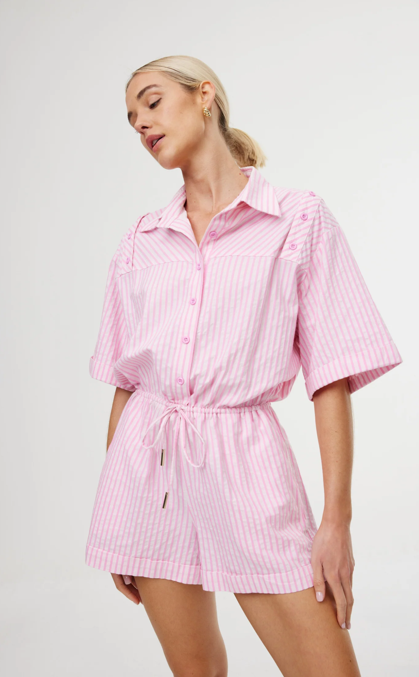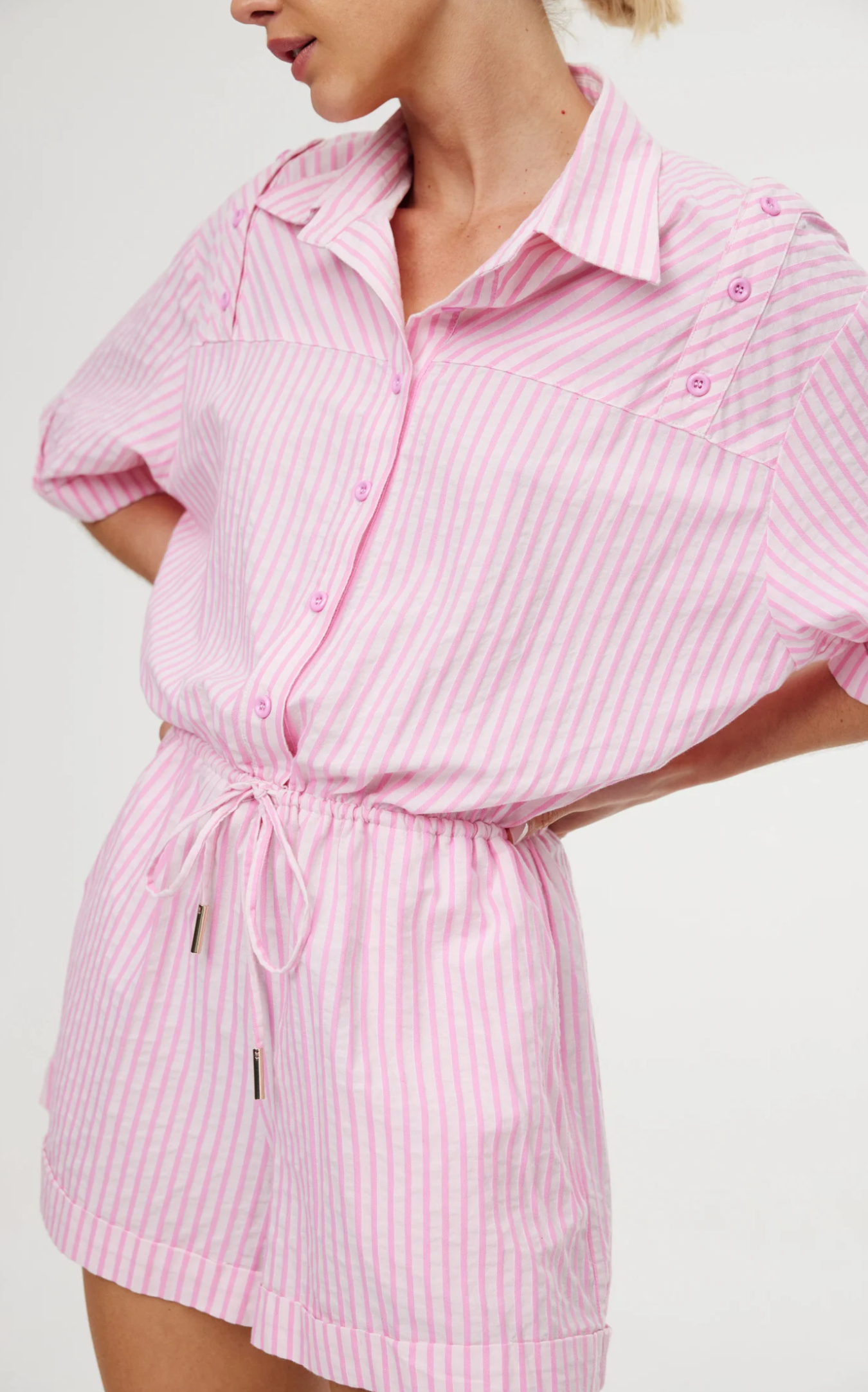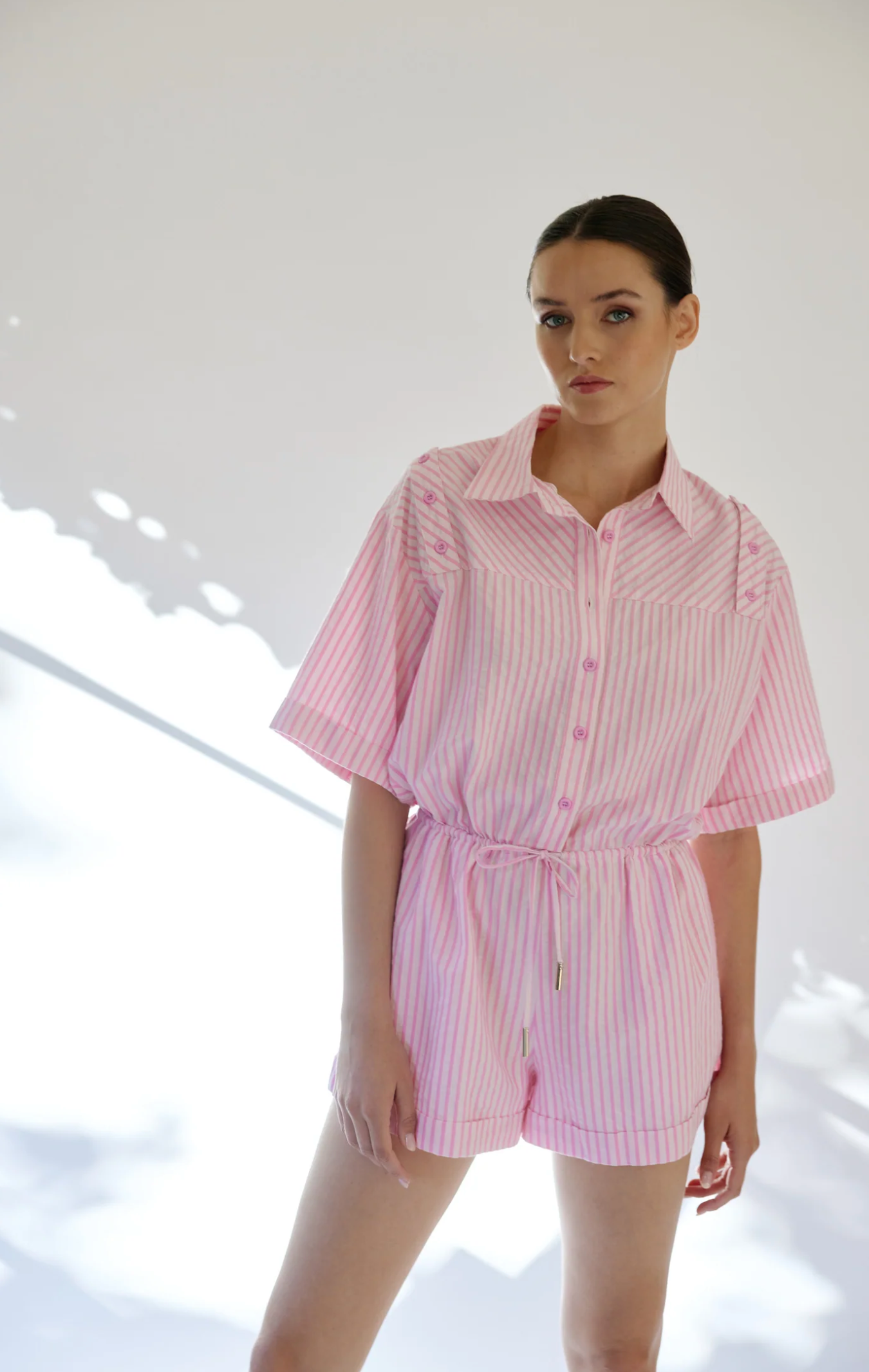 The Lucia playsuit is a fun and easy to throw-on piece, perfect for the warmer weather. It’s design features include in-seam pockets, button details at the shoulders, a classic collar and an adjustable waist tie