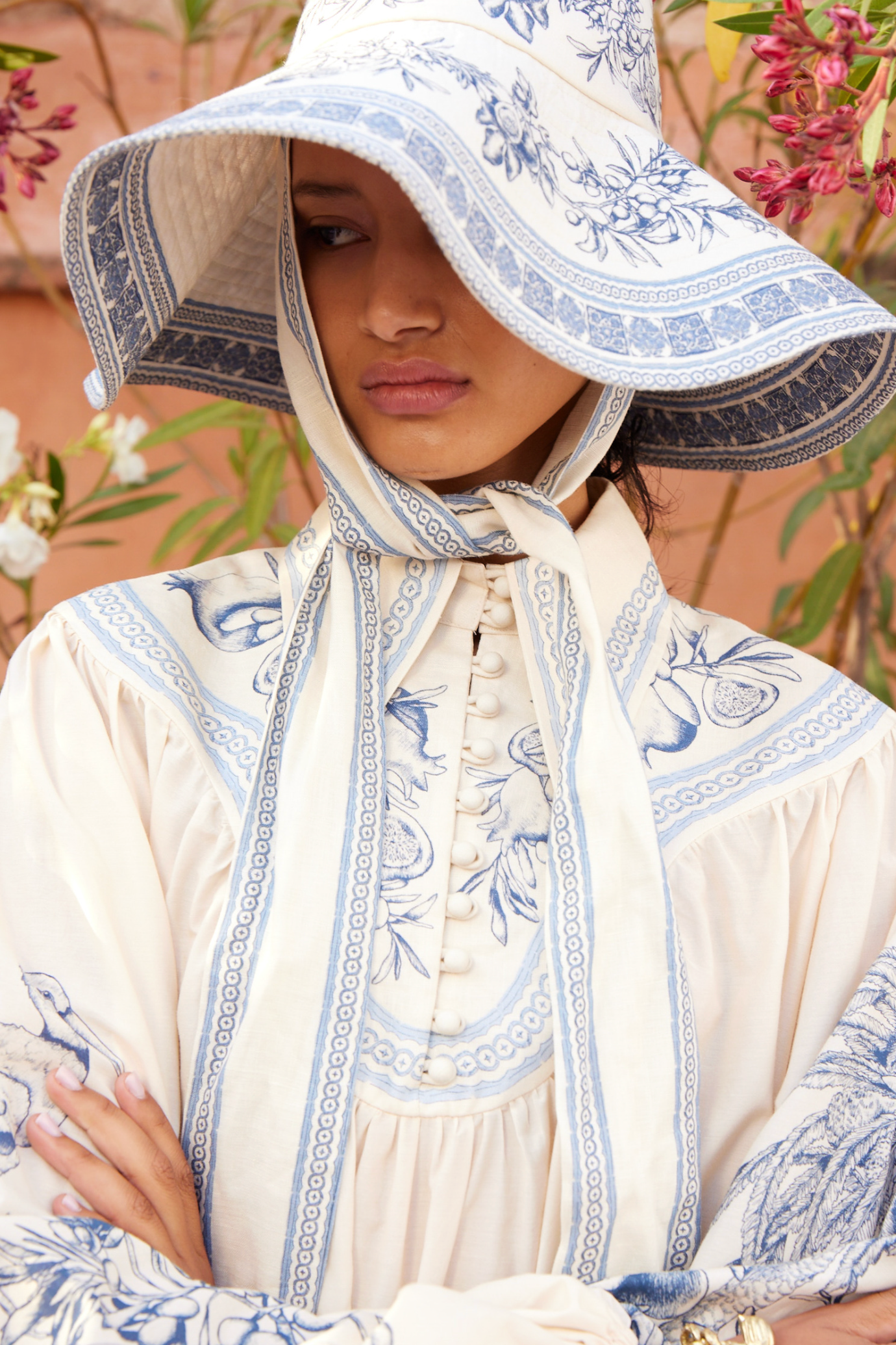 - Printed wide brim sunhat with ties