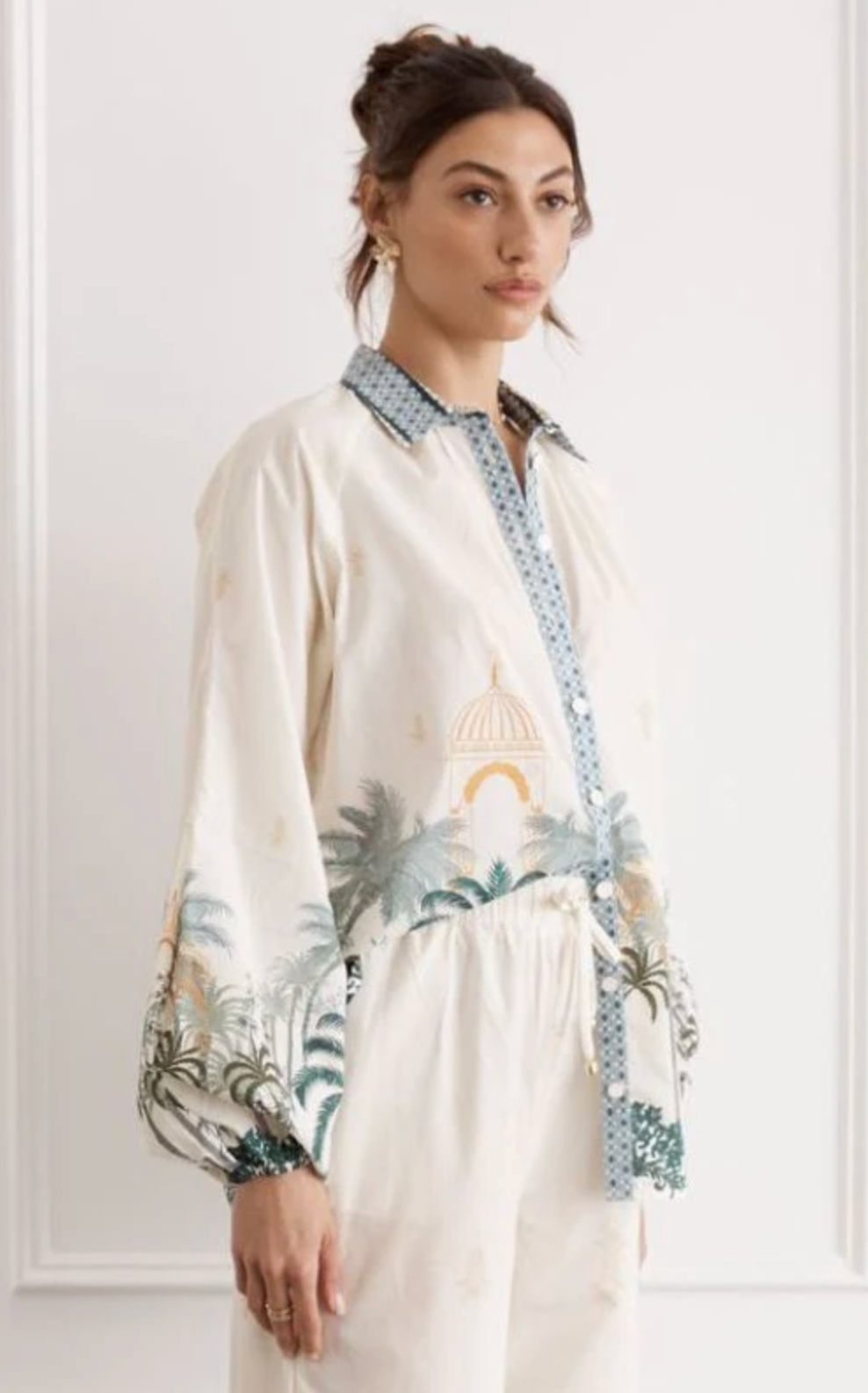 Step into a daydream with the Heaven Lucile Blouse in Oasis. This playful top blends breezy comfort with a touch of whimsical charm, perfect for brightening up any outfit. Its soft fabric and delicate details make it your go-to for effortless style that feels as good as it looks.