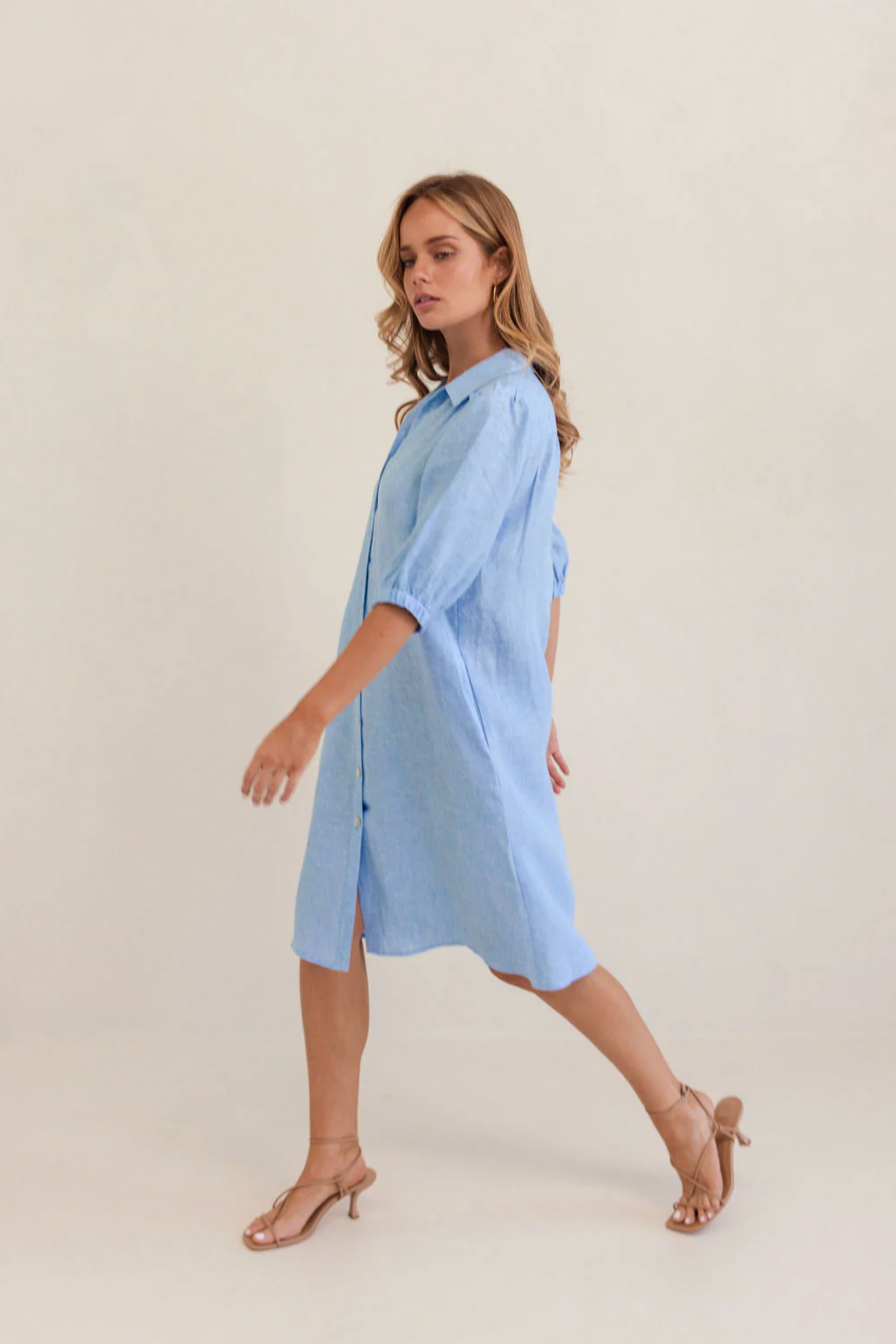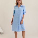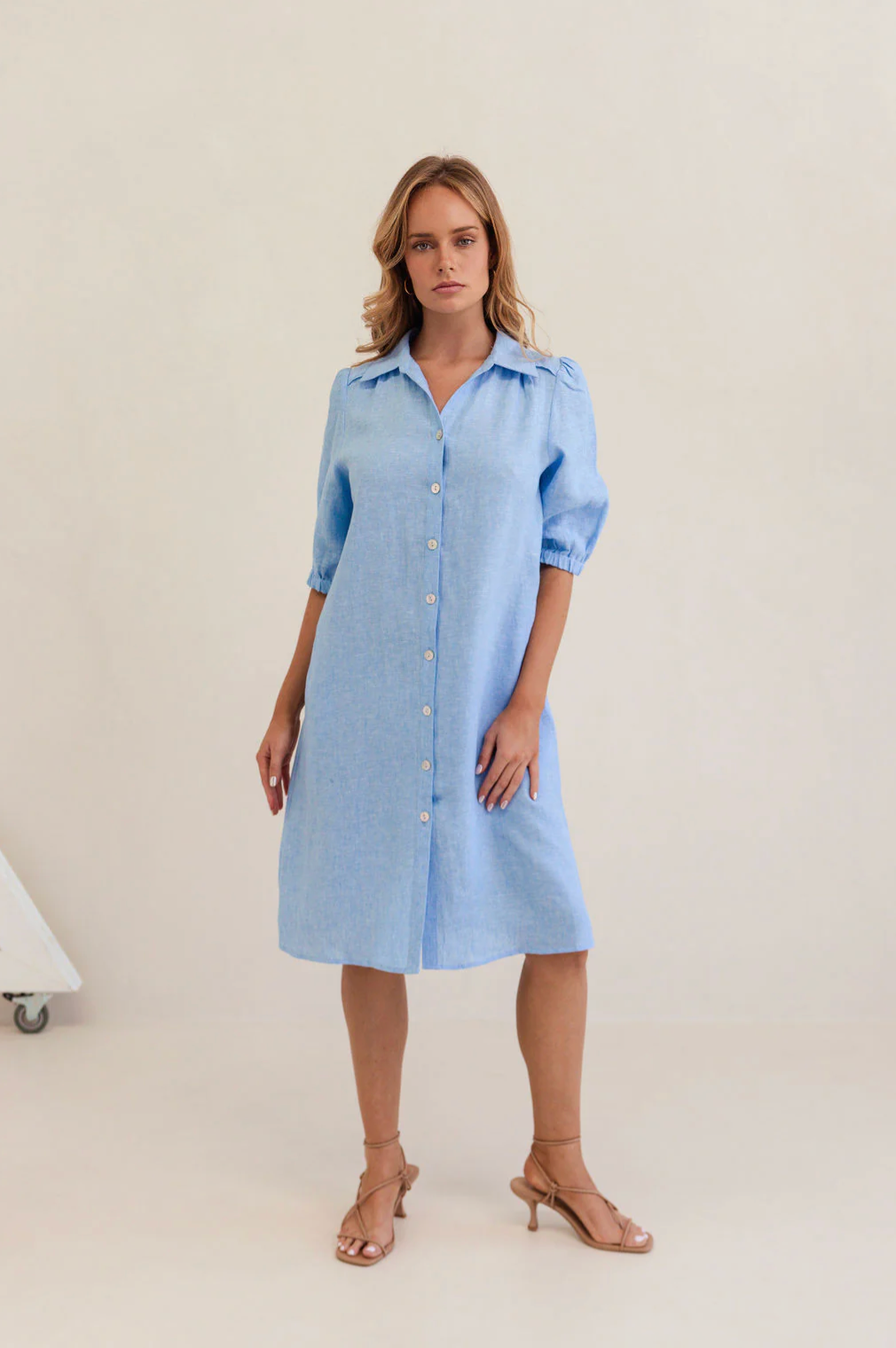 LINEN Collared Button Thru Dress | CHAMBRAY