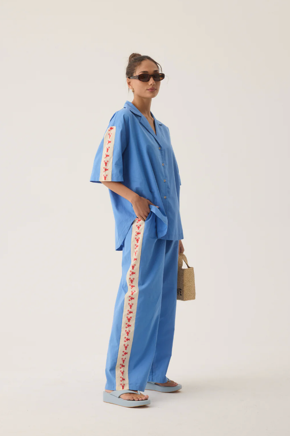 The Lobster Shirt in French Blue is a timeless piece, designed for ultimate comfort and laid-back luxury - perfect for sun-soaked days on the water and sunset evenings in coastal towns. Crafted from breathable 100% cotton poplin with tonal lobster trims at the sides. Complimented by tortoiseshell style buttons, and designed to pair perfectly with our matching Lobster Shirt in French Blue for head to toe coastal charm.