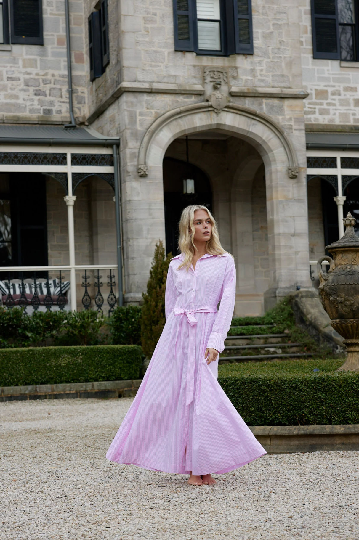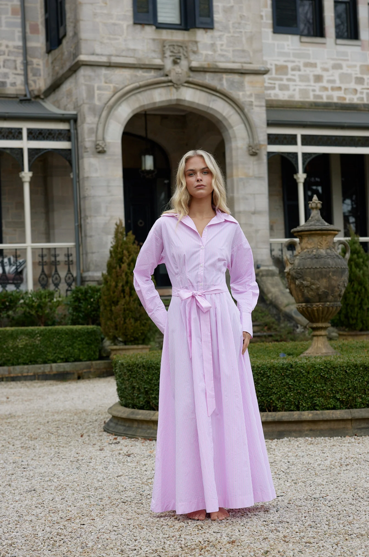 The Arlet Dress is a timeless masterpiece crafted from soft, breathable cotton. Featuring a classic button-down front, a cinching waist tie, and a flattering midi length, this dress exudes effortless elegance. Long cuffed sleeves add a touch of refinement, making it a versatile choice for any occasion.