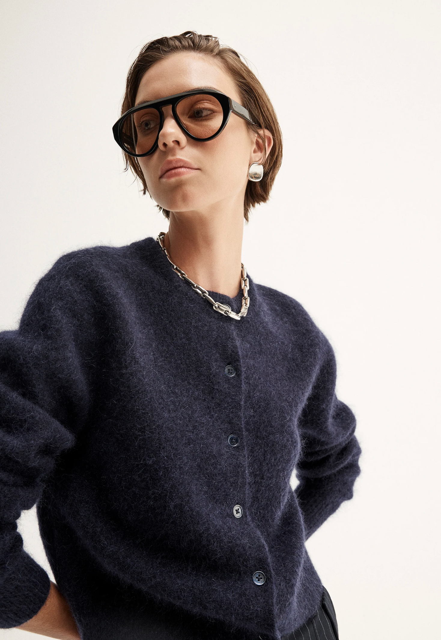Designed with versatility in mind, our signature knitwear takes on new colours, textures and silhouettes to elevate your transitional wardrobe. The Abigail Cardigan is made of a luxe wool blend knit with mohair for a soft and rich texture throughout. Cut to a cropped length with button through front and drop shoulders, this cardigan becomes a go-to for low risk, high reward outfitting. Styled with staple denim, this knitwear essential weaves comfort and warmth into day and night looks.