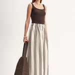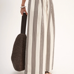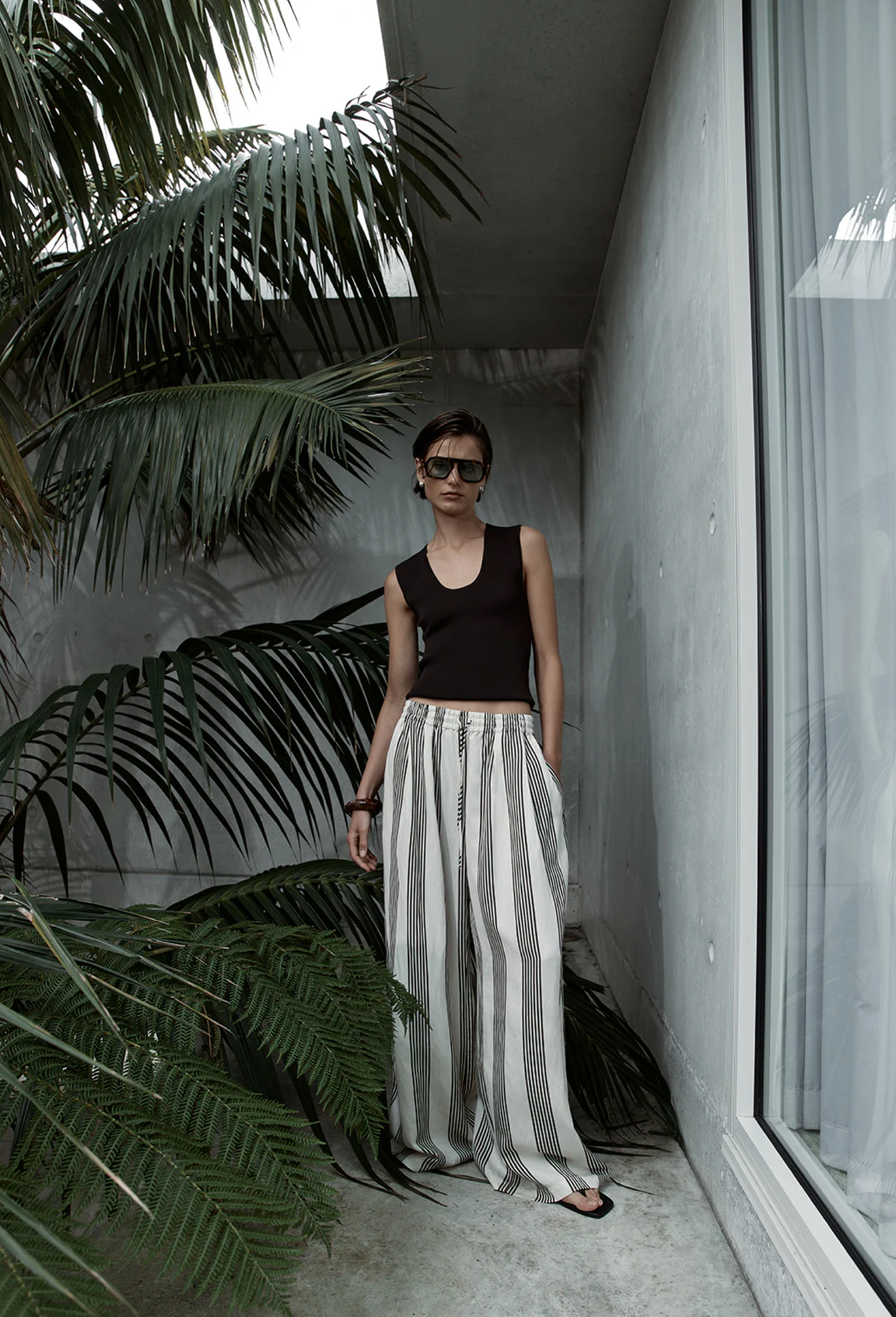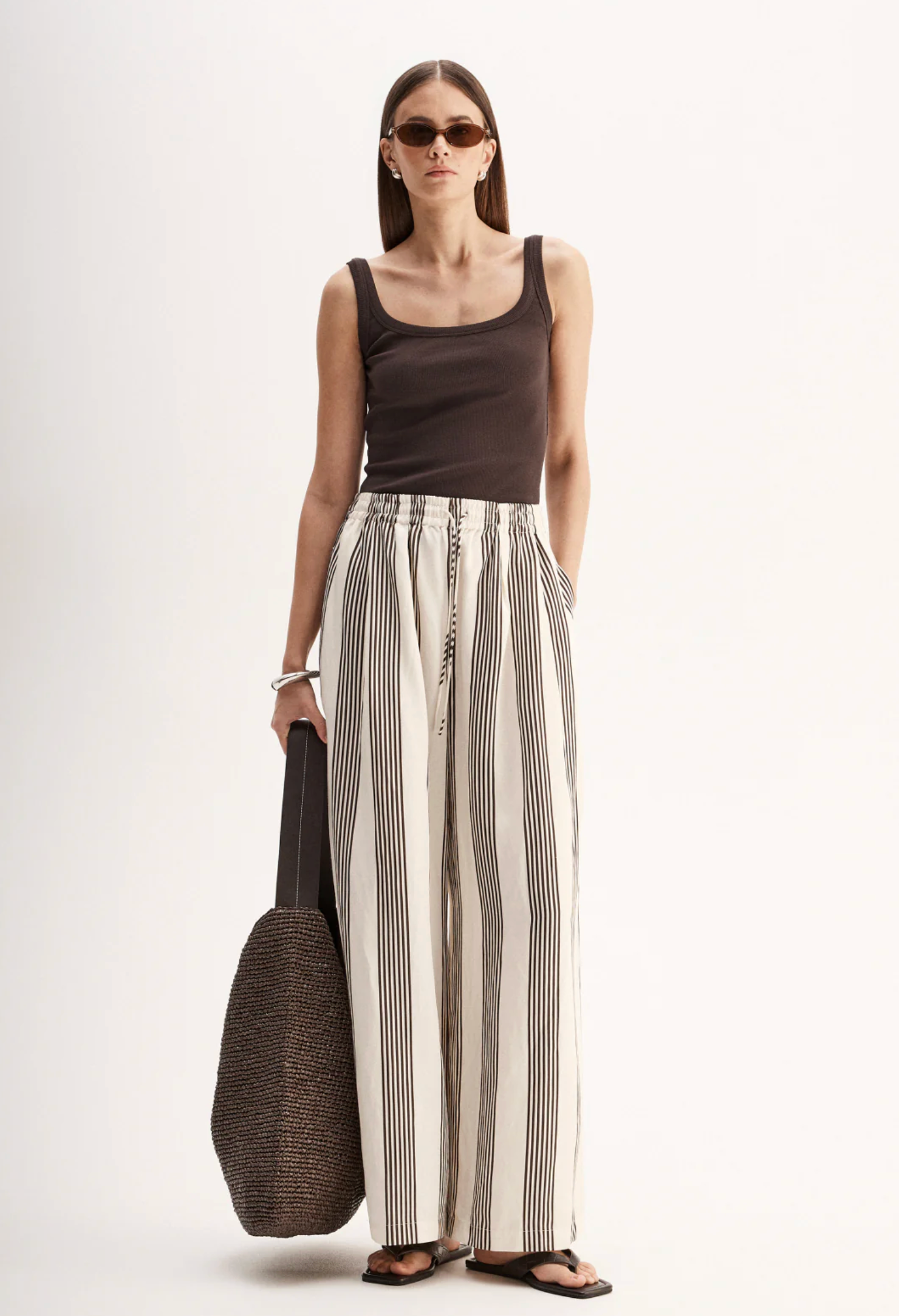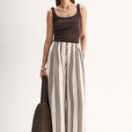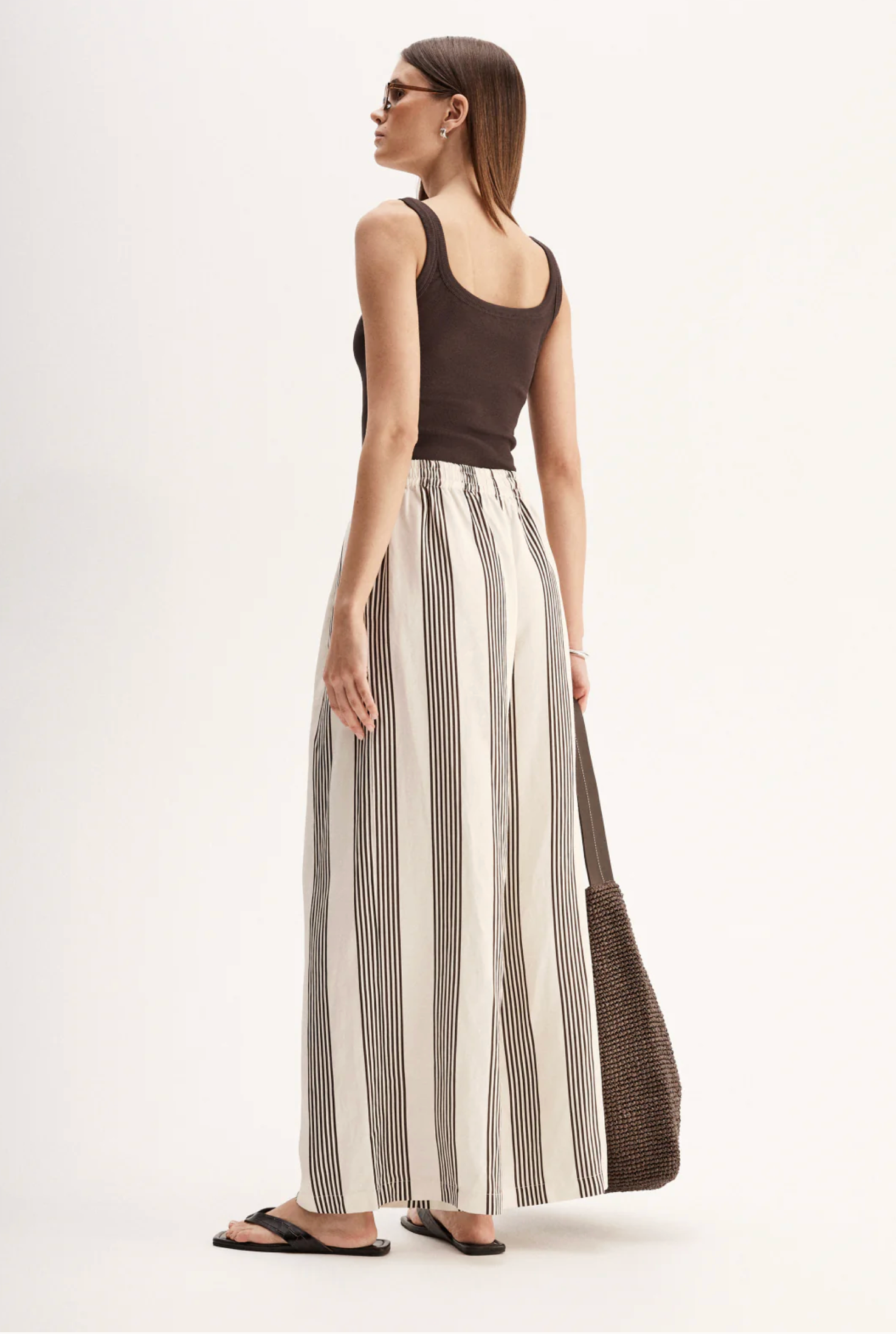 Made of a lightweight fabric with a statement stripe, the Milo Pant is an effortless summer piece. Cut to a wide leg silhouette, these pants have an adjustable drawstring waist. Style with comfortable basics for an elevated casual look.