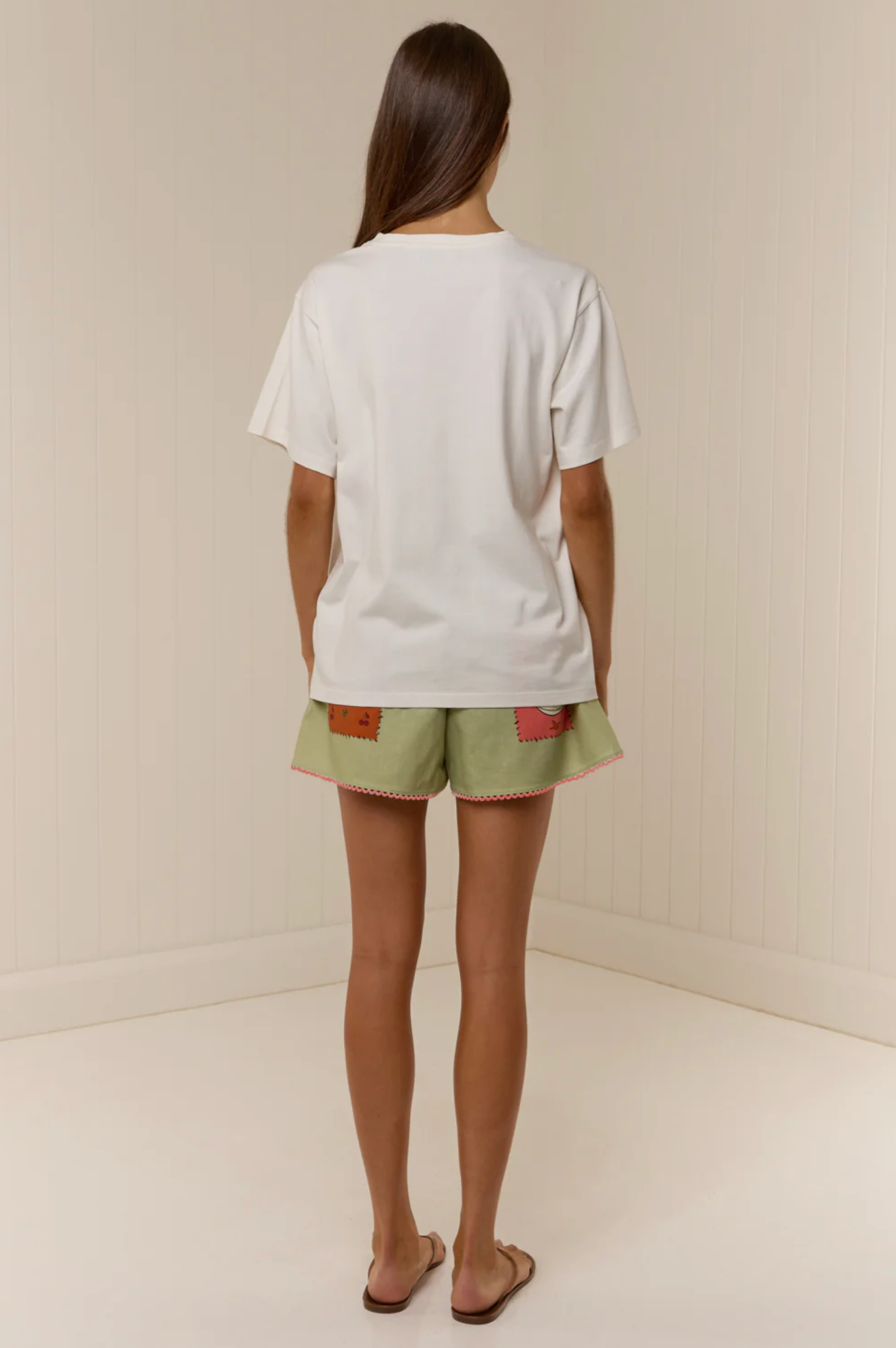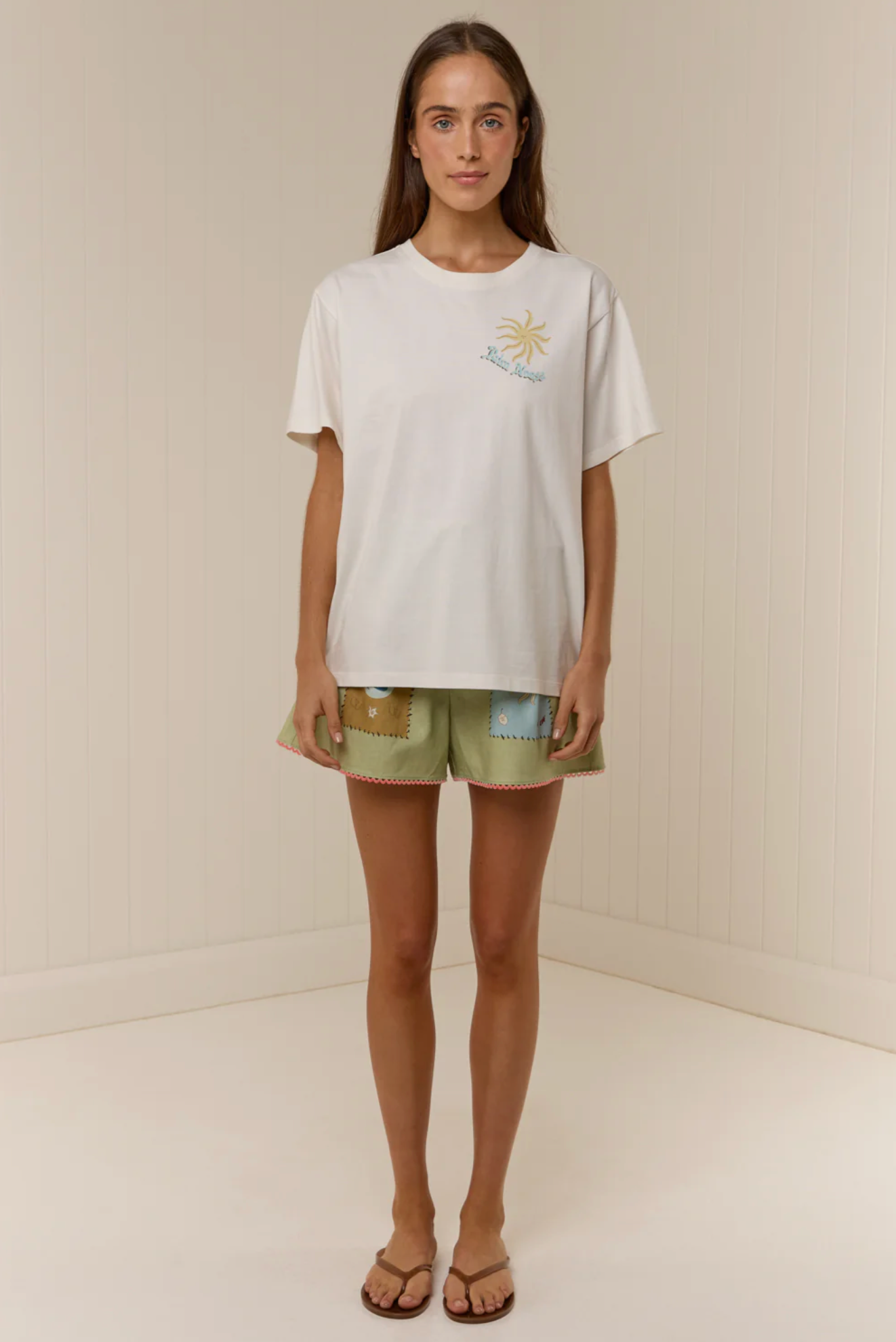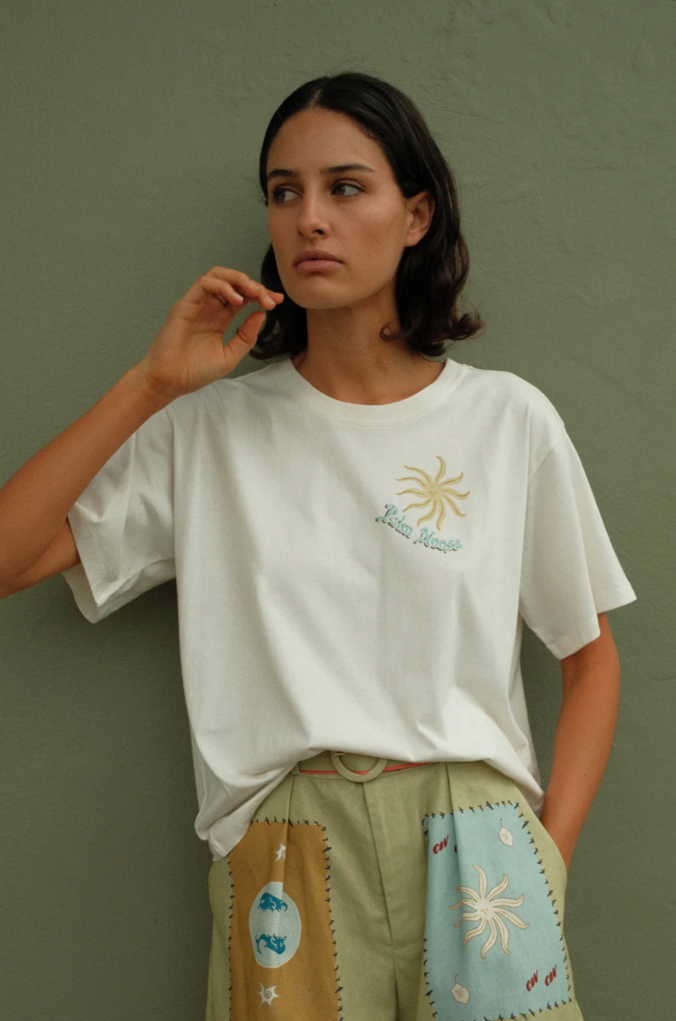The Maya T-Shirt is crafted from 100% Cotton, with a relaxed, boxy silhouette—ideal for layering over swimwear or styling casually. We recommend purchasing your standard size for a relaxed fit. Please refer to our size and fit guide for further fit details.