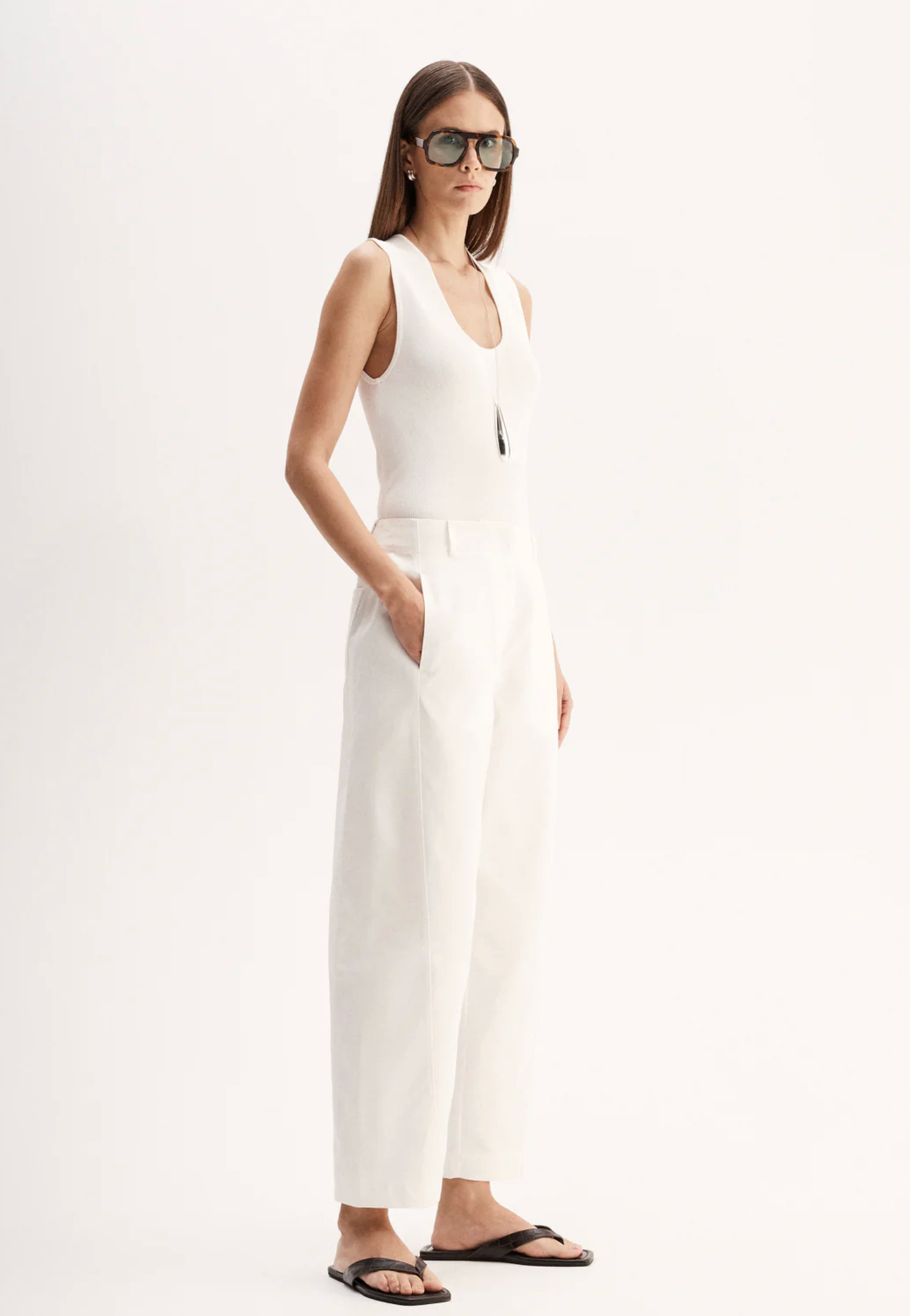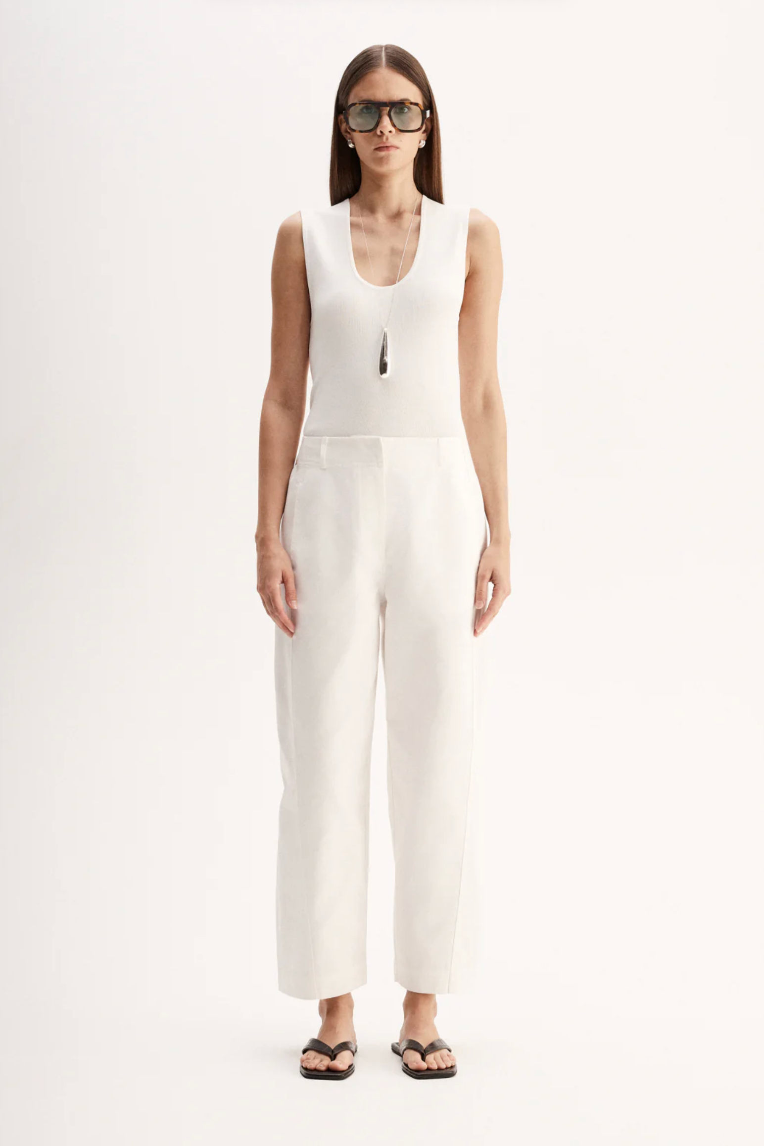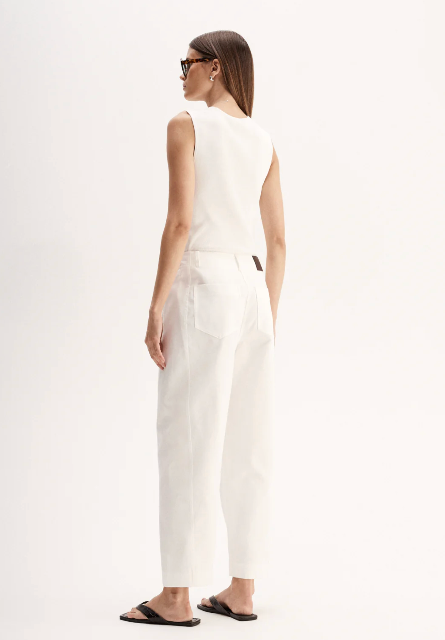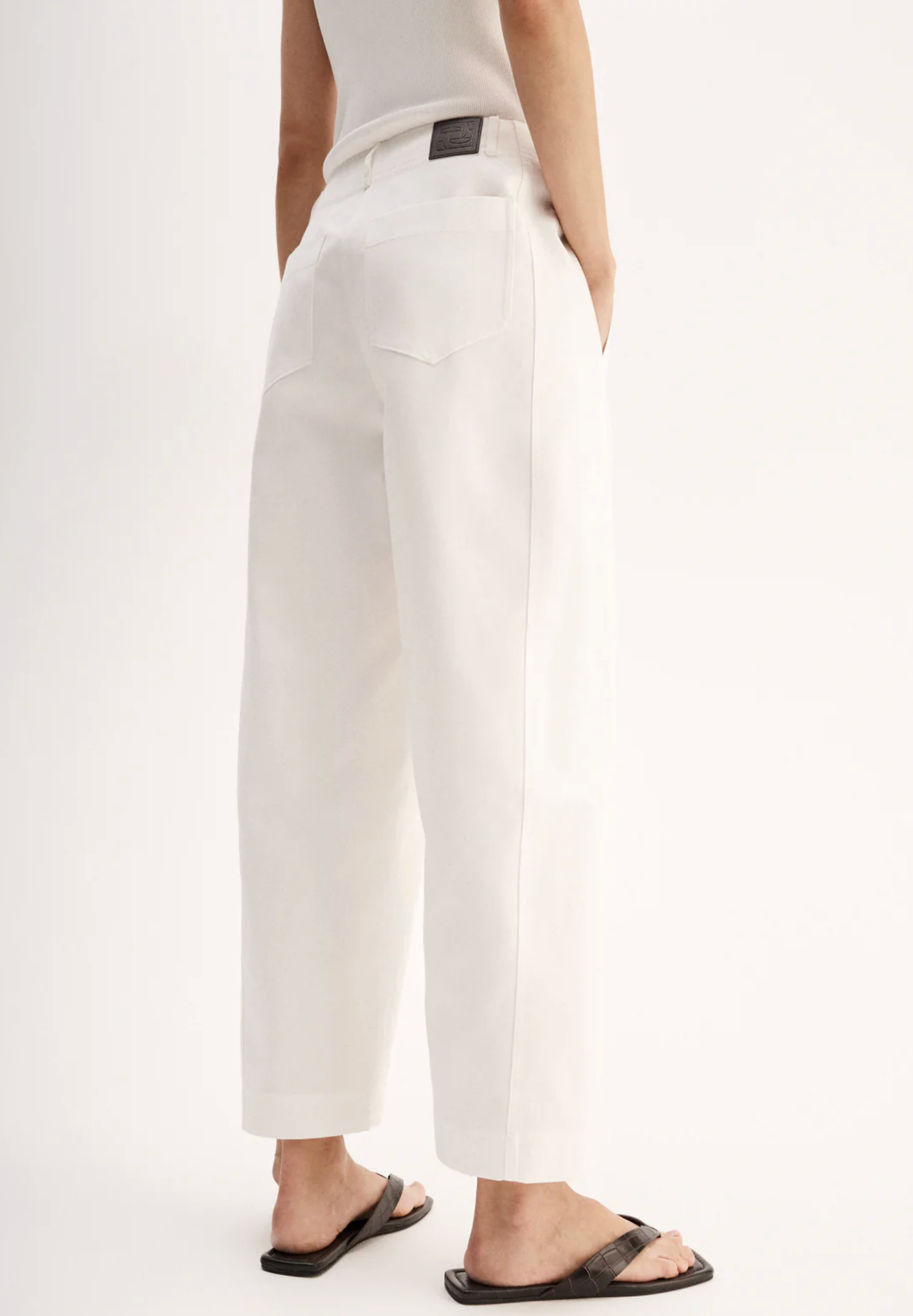 The Marshall Pant is a classic barrel leg style made of a structured cotton twill fabric. A wardrobe essential, these pants seamlessly transition between casual and elevated outfitting.