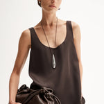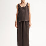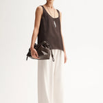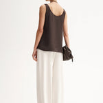 The Mina Tank is a true elevated basic. Made of a luxuriously soft recycled Japanese satin, this top is cut to a relaxed fit with a low scoop neckline. Style for day to night outfitting with soft tailored pants or coordinate with the Mina Maxi Skirt.
