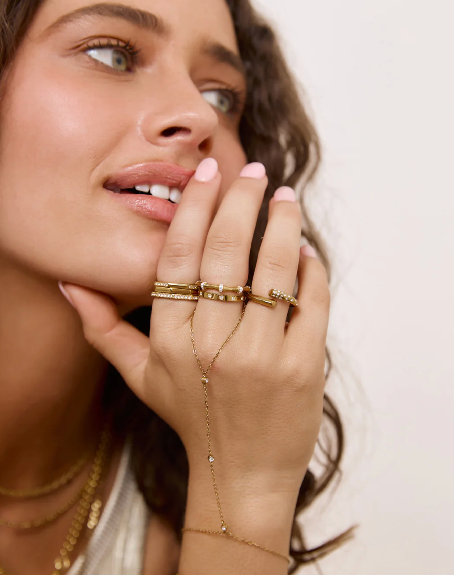 A sparkling stacking staple, the Kylie Ring is the piece your jewellery collection has been waiting for. Dainty yet dazzling, it catches the light with every move and adds the perfect touch of shine to your everyday stack. Chic on its own or styled with your fave AOE rings, Kylie is the kind of effortless sparkle you’ll never want to take off.