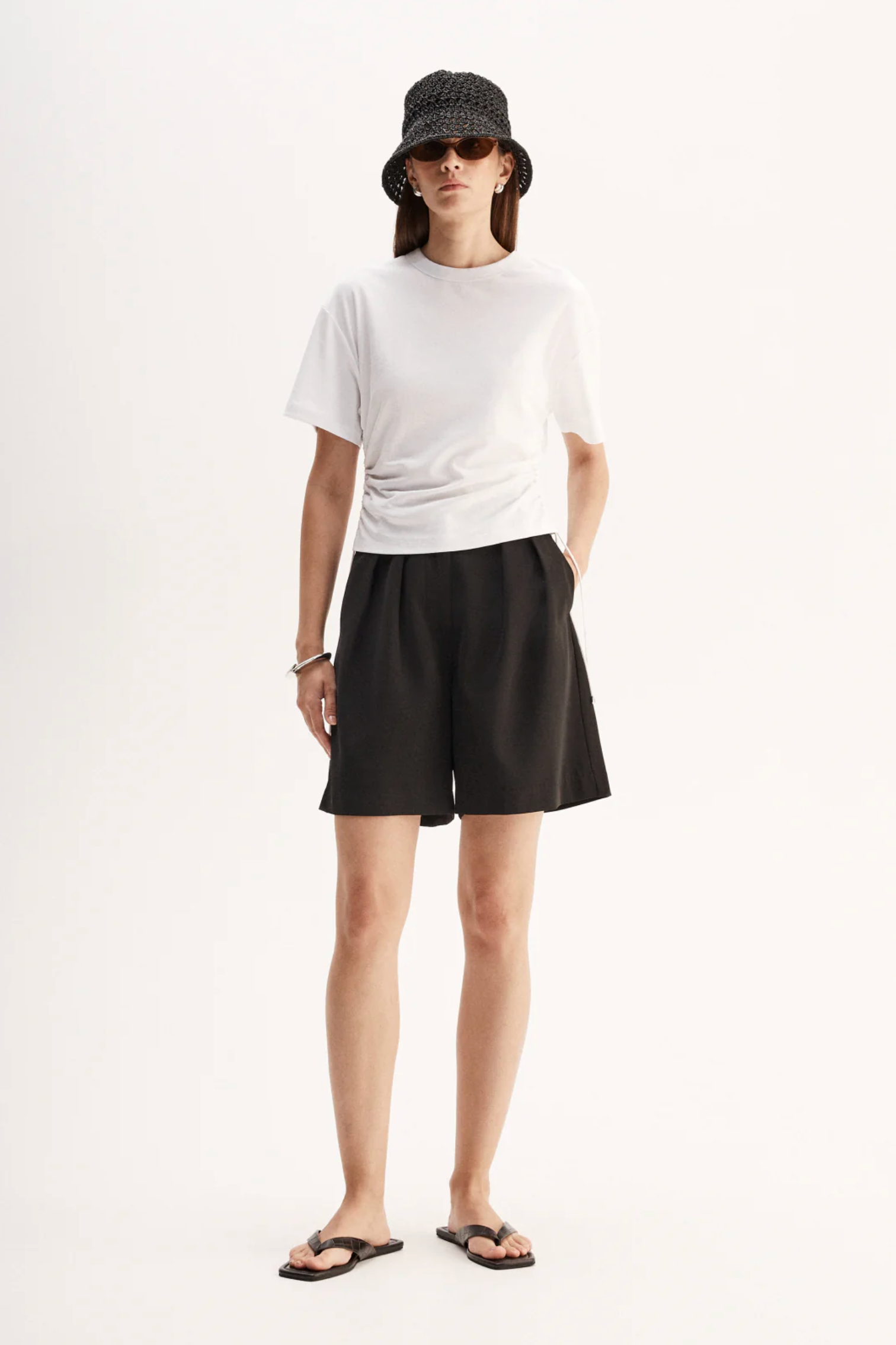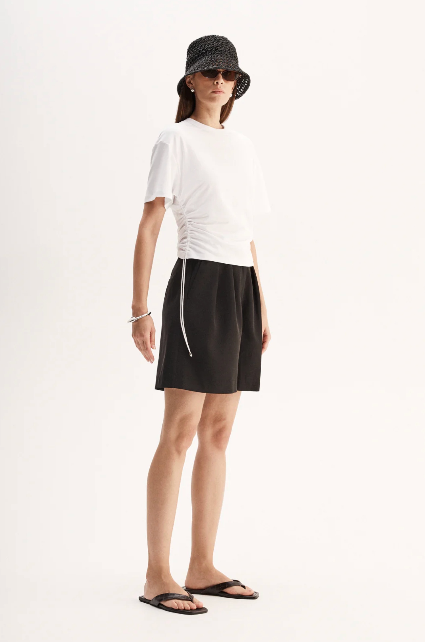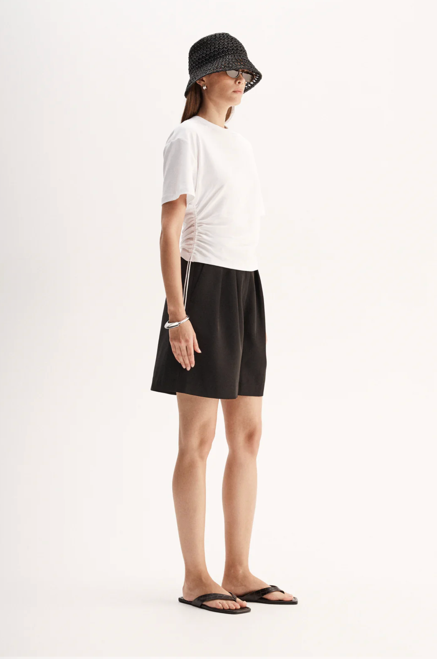 An elevated basic, the Gabriel Top is made of 100% cotton and fits true to size. This tee features cords at the side for adjustable ruching and is cut to a cropped length.