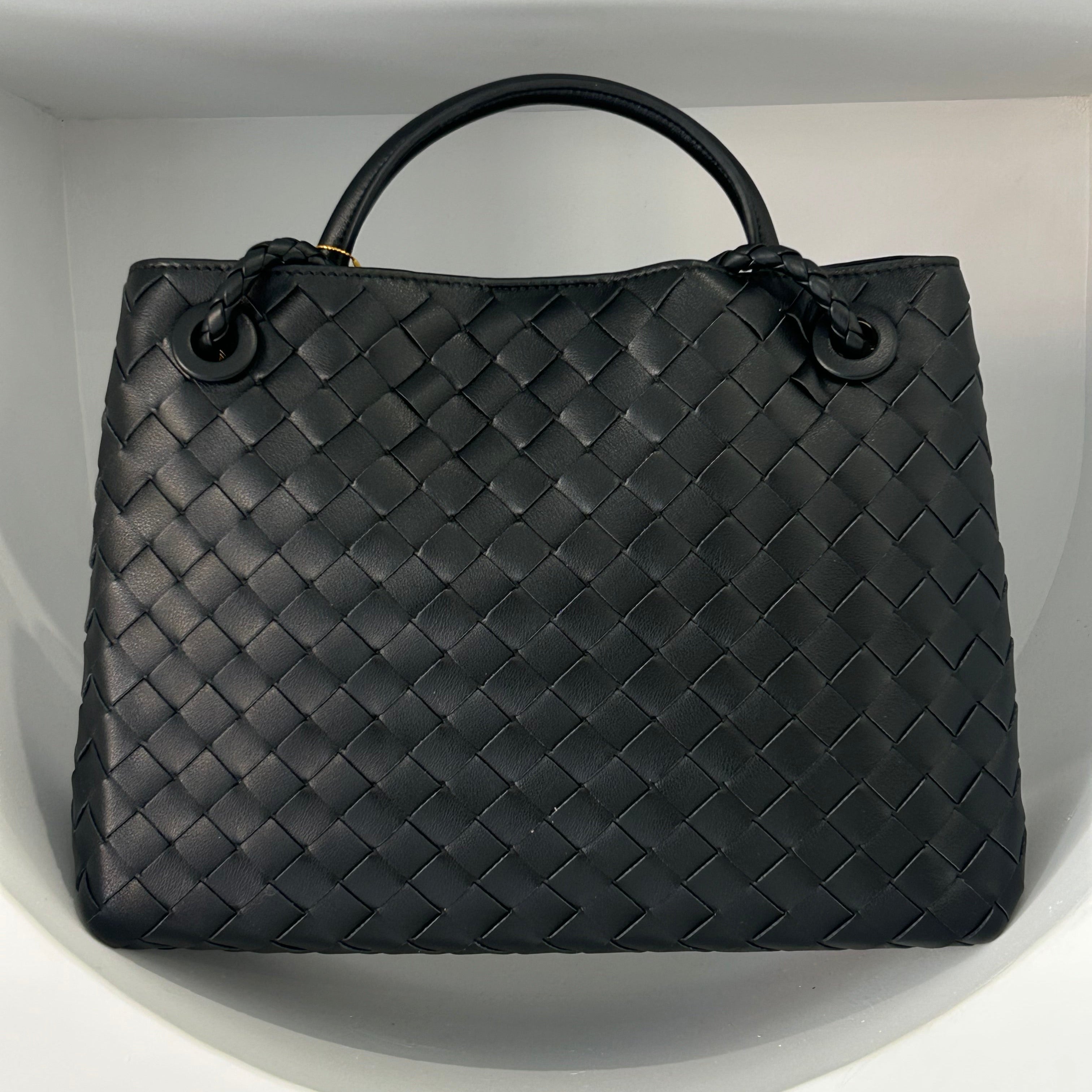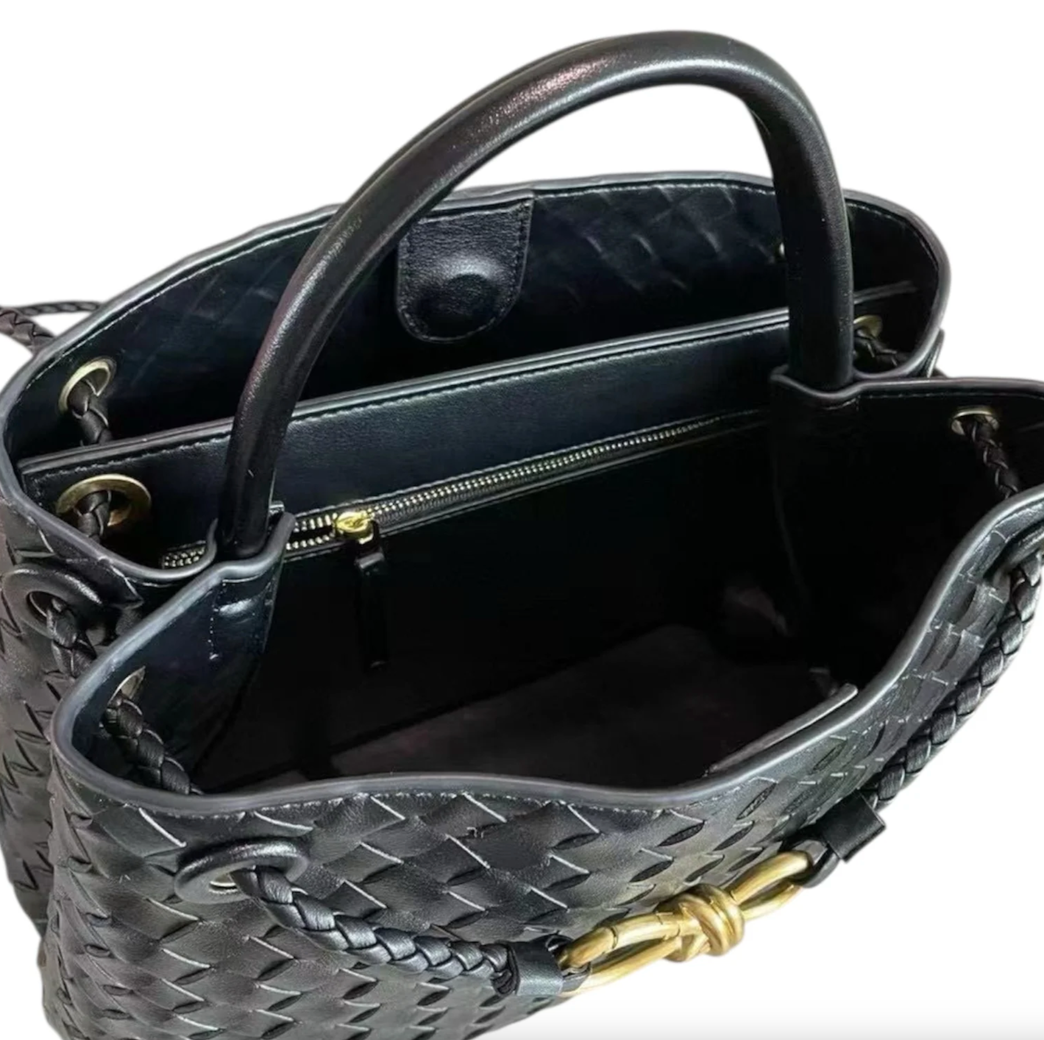PL Woven Leather Bag | BLACK