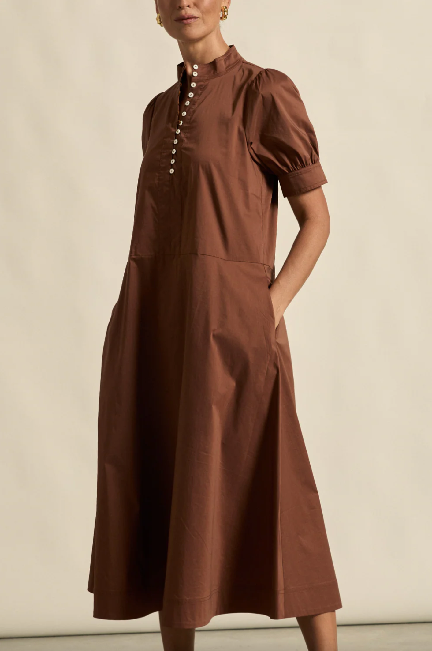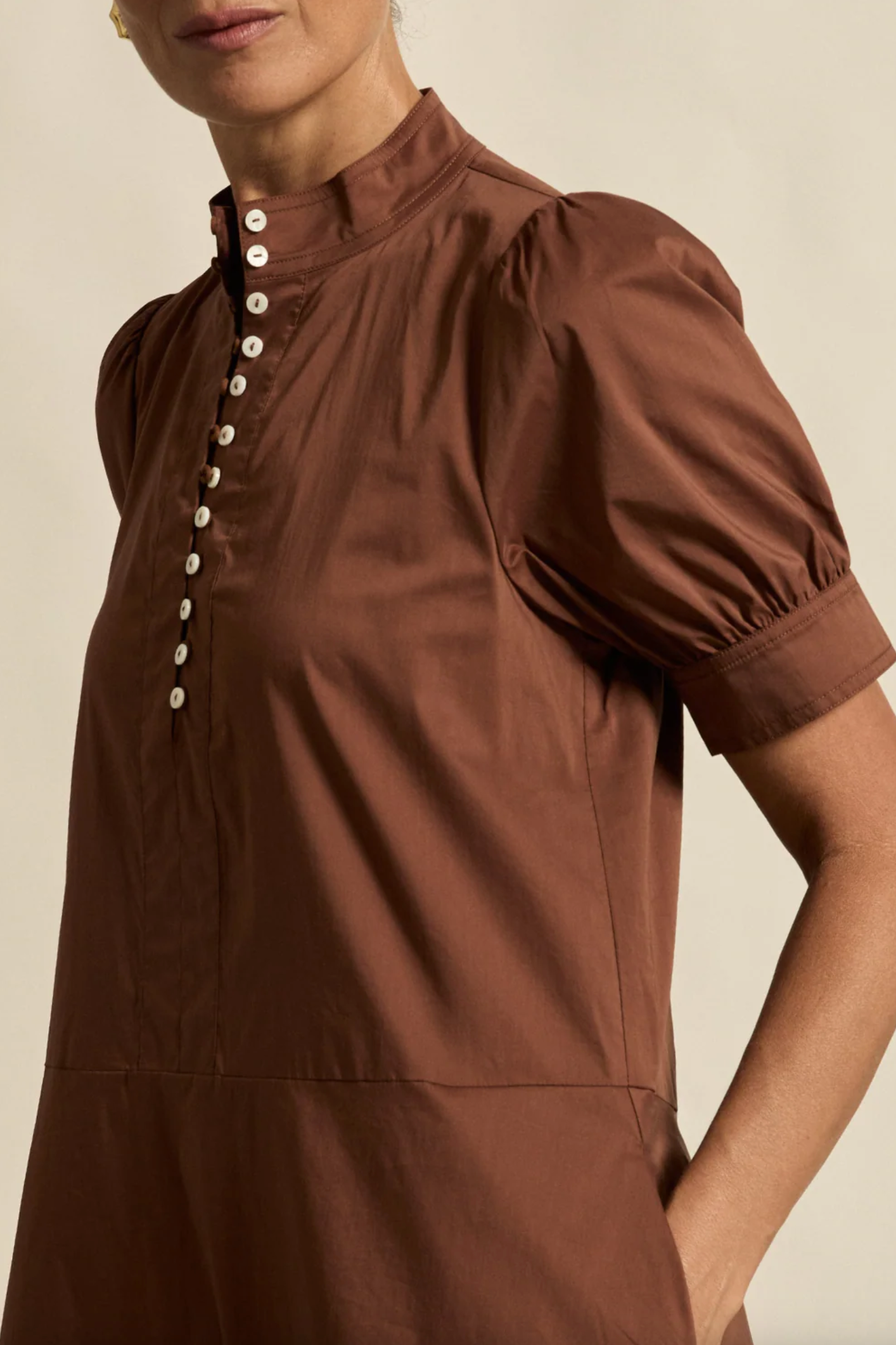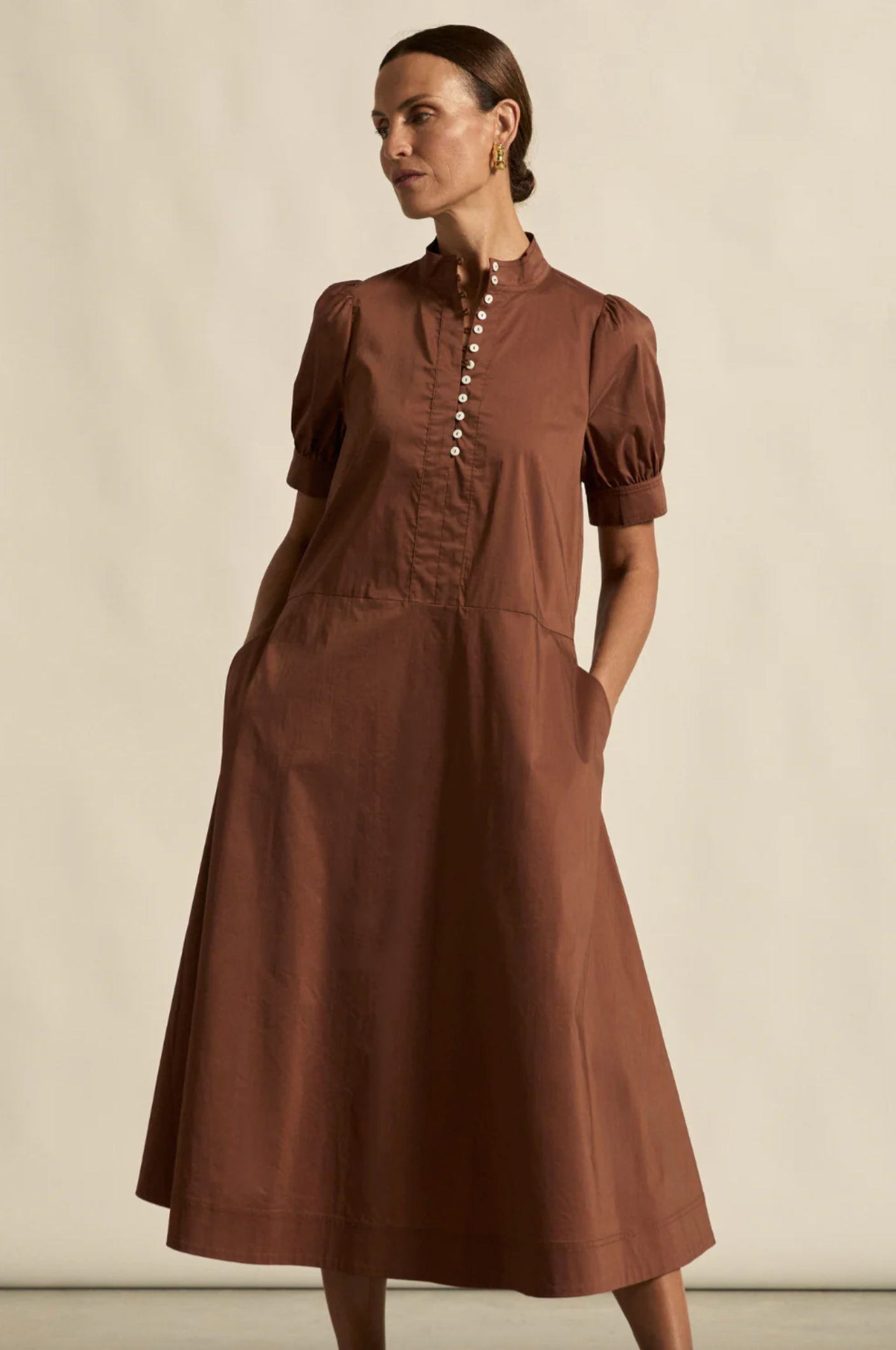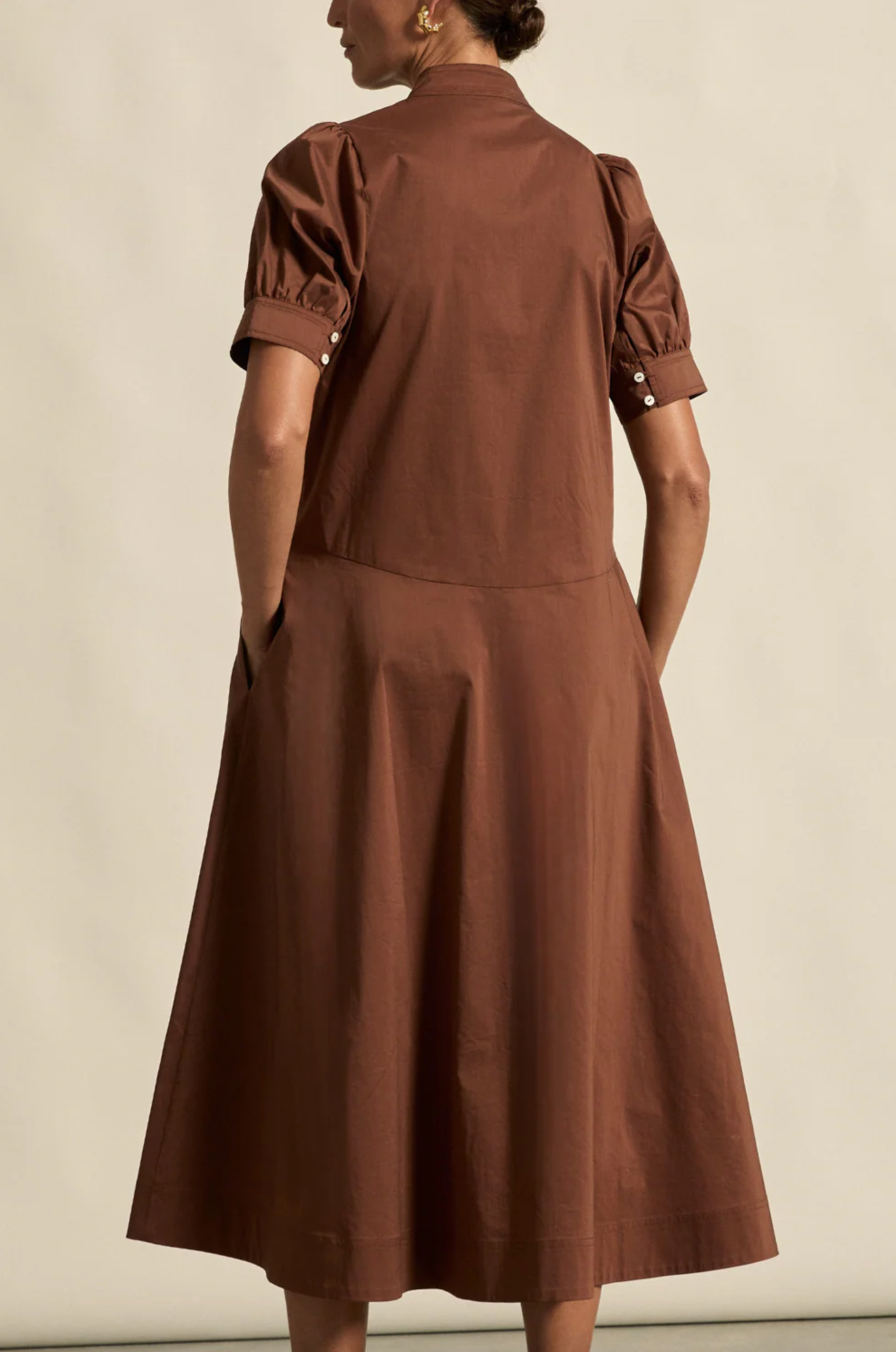 cotton poplin, a drop waist, and refined details make this a polished go-to.