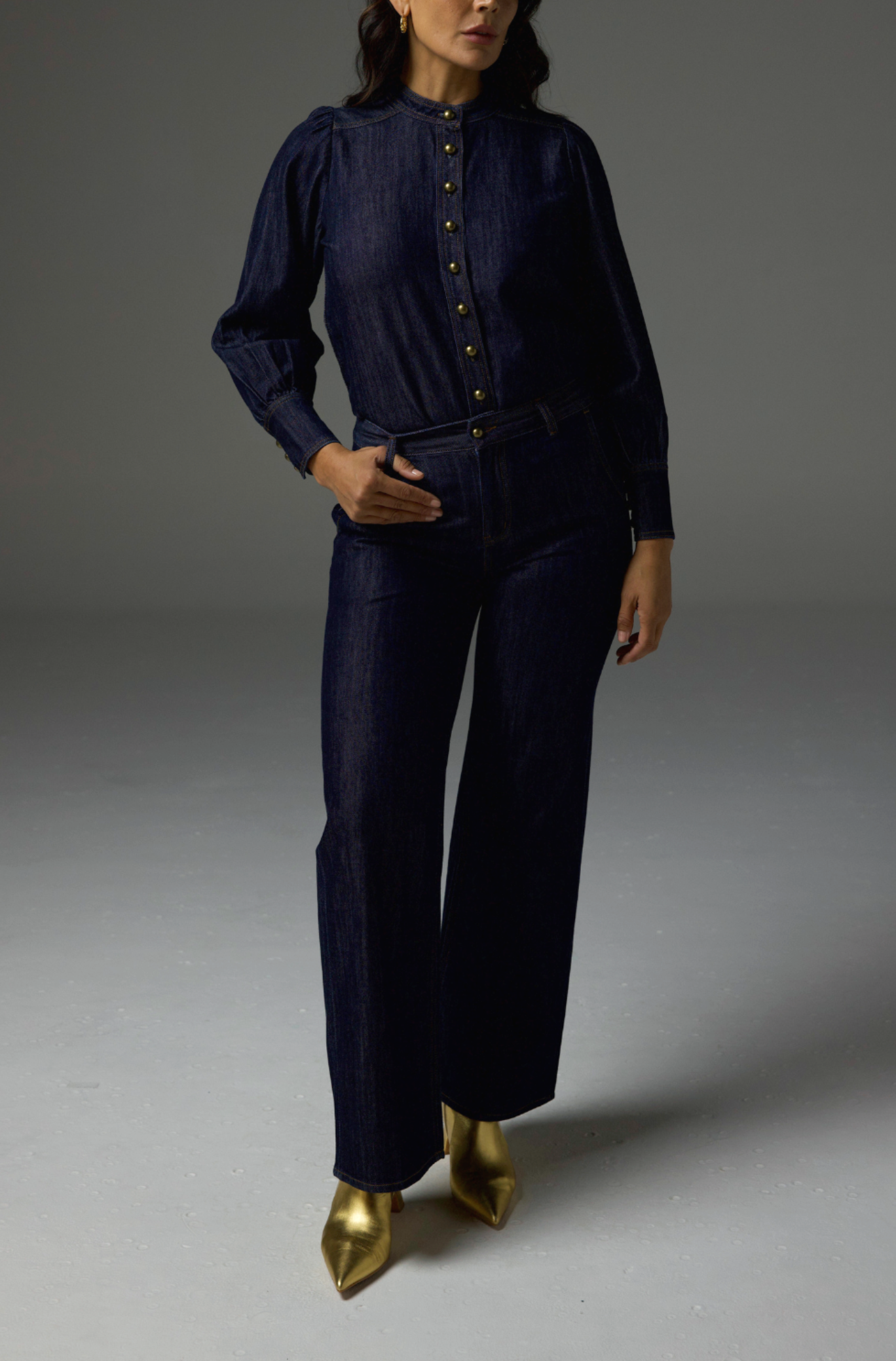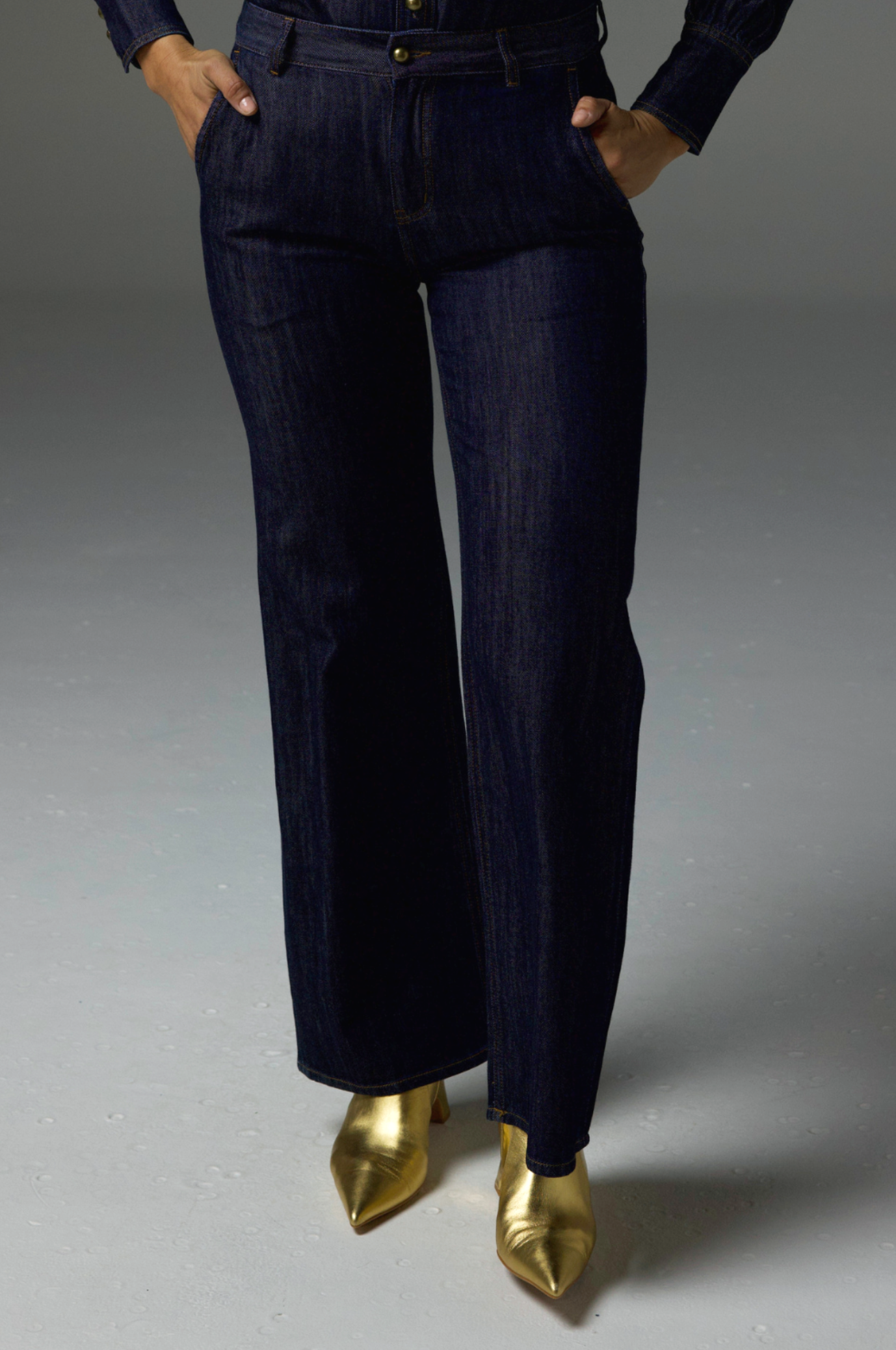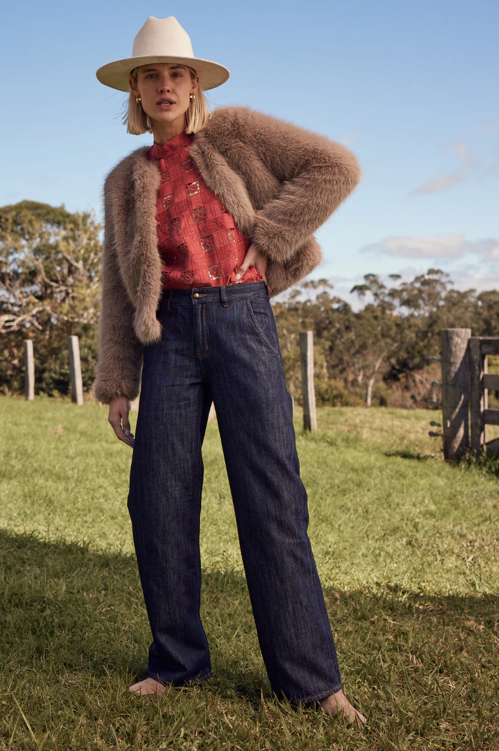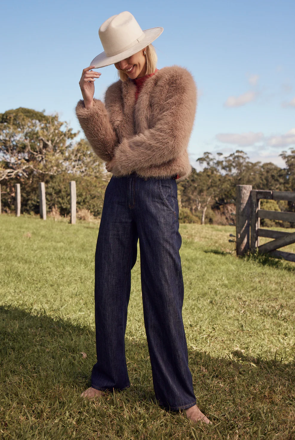 embracing fall’s penchant for refined structure. This hybrid jean-pant brings a flattering high waist and soft flattering proportions through its wide leg, whilst maintaining a relaxed elegance.