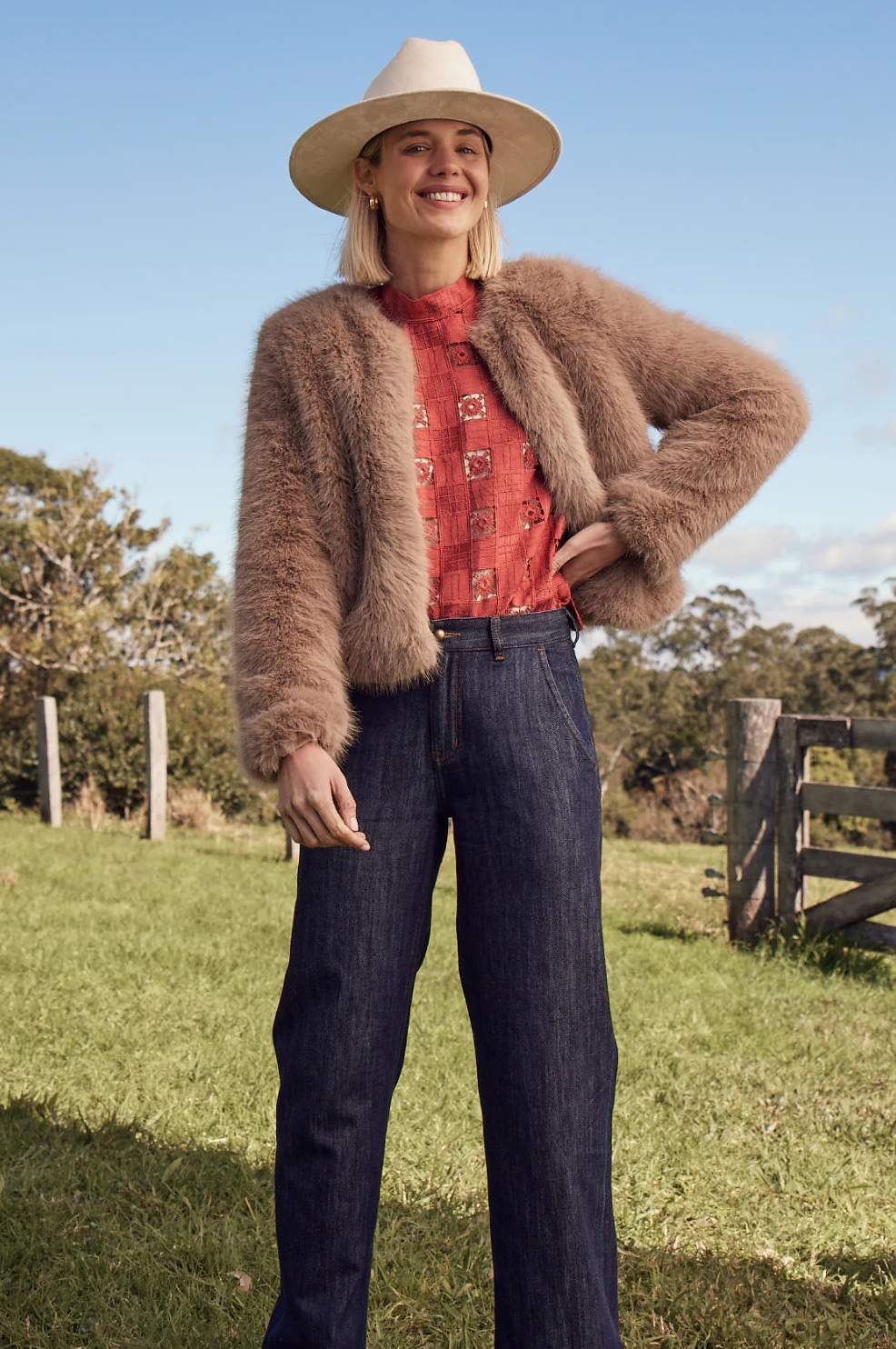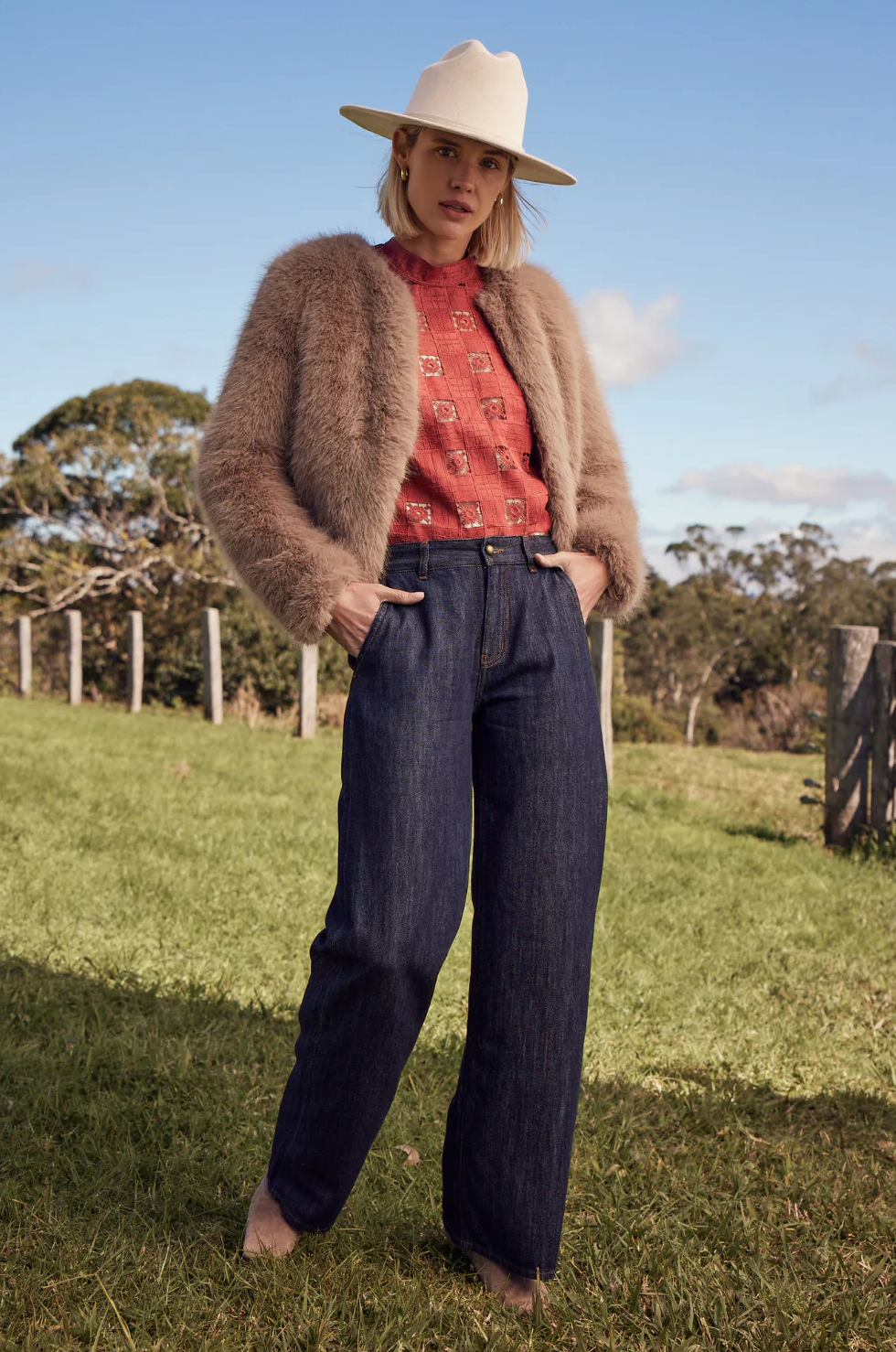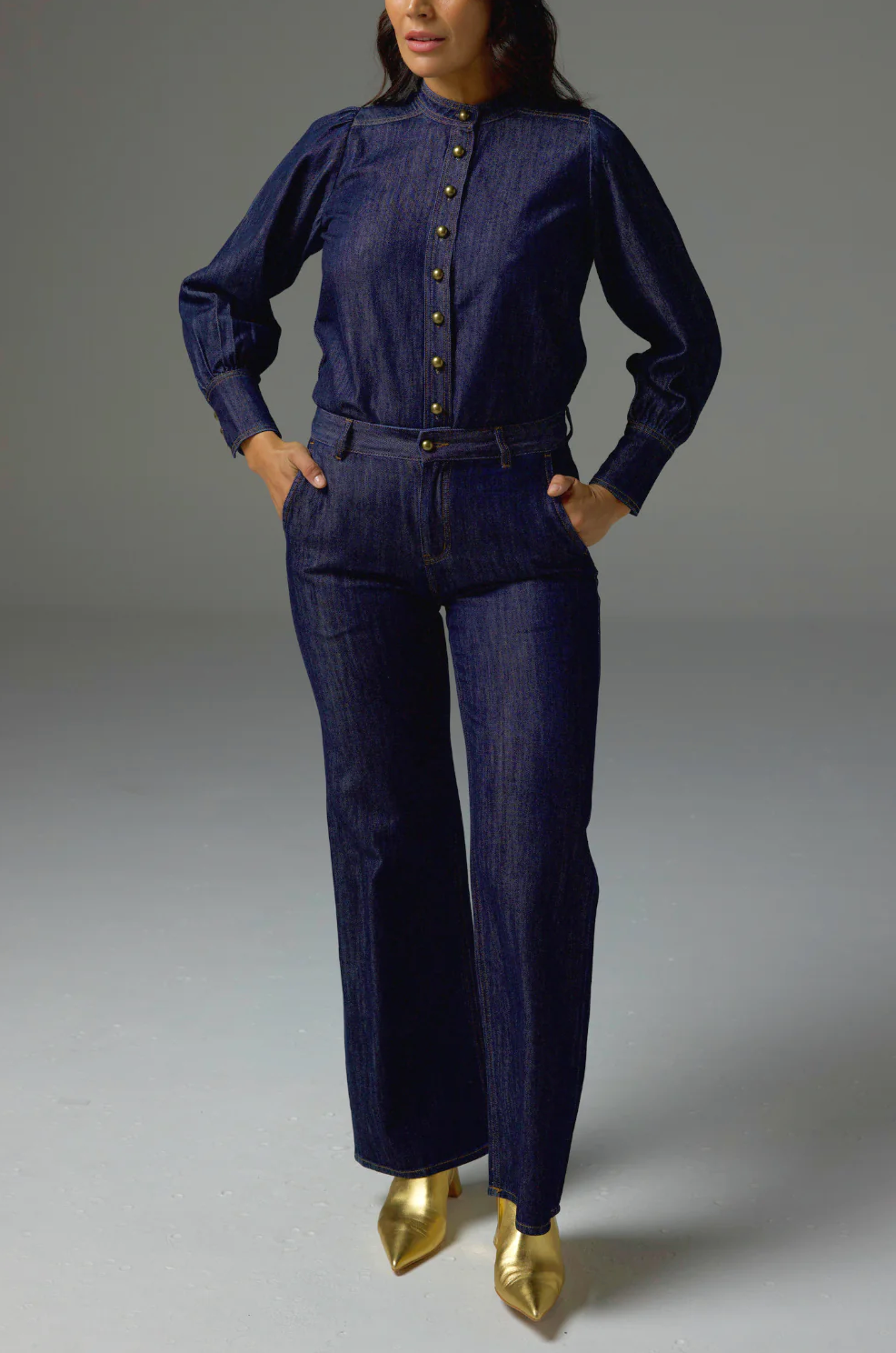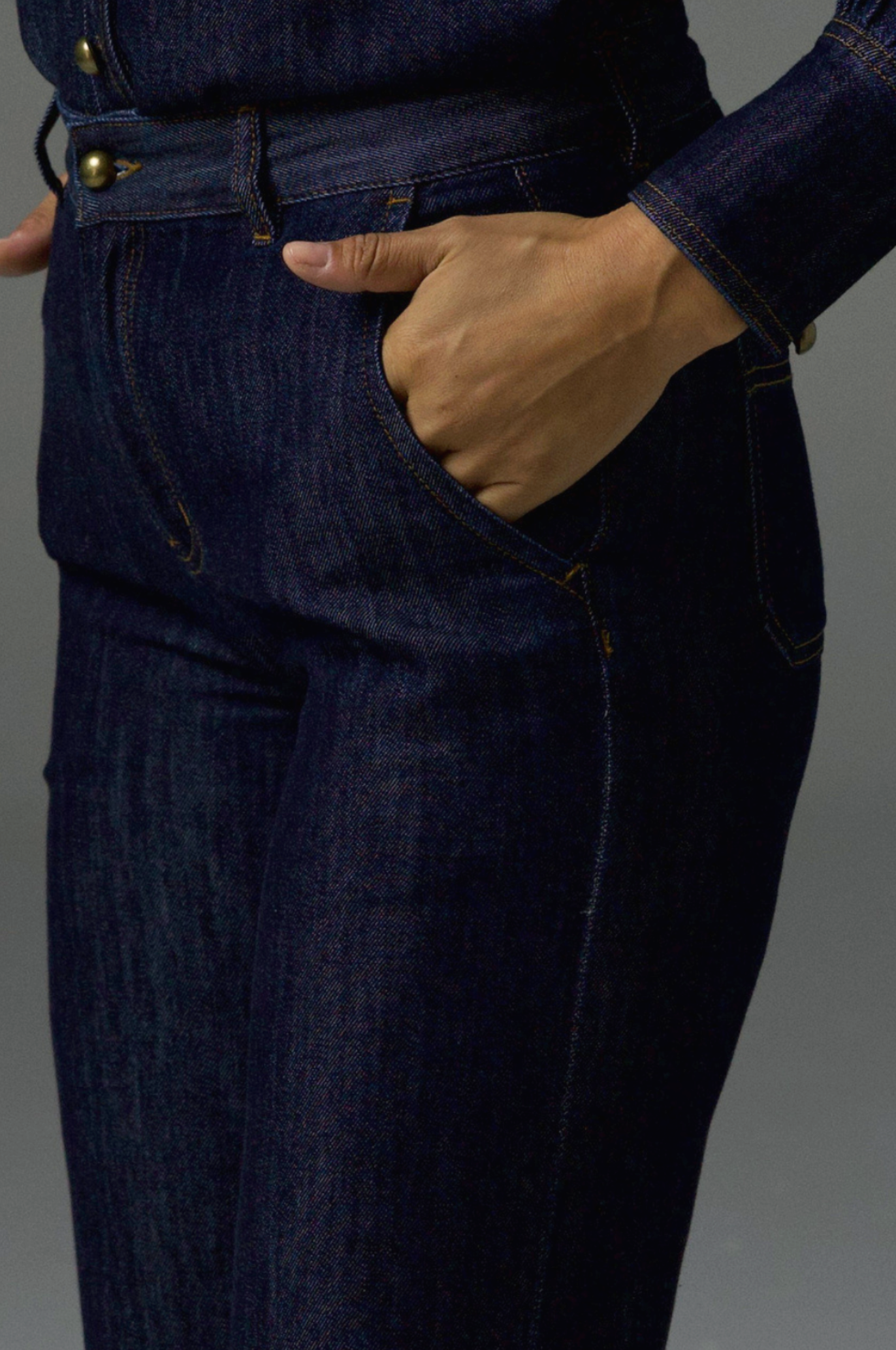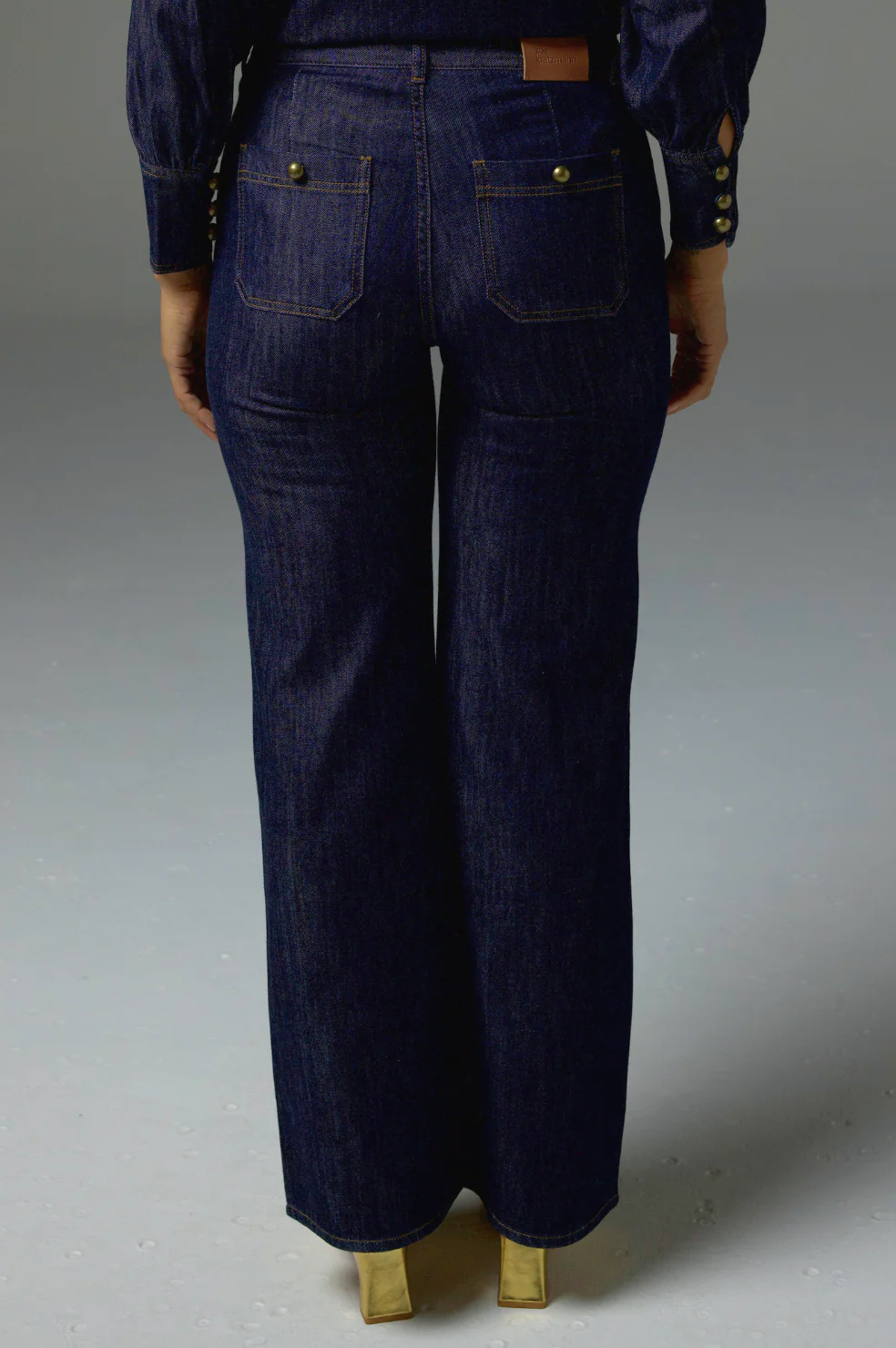 embracing fall’s penchant for refined structure. This hybrid jean-pant brings a flattering high waist and soft flattering proportions through its wide leg, whilst maintaining a relaxed elegance.