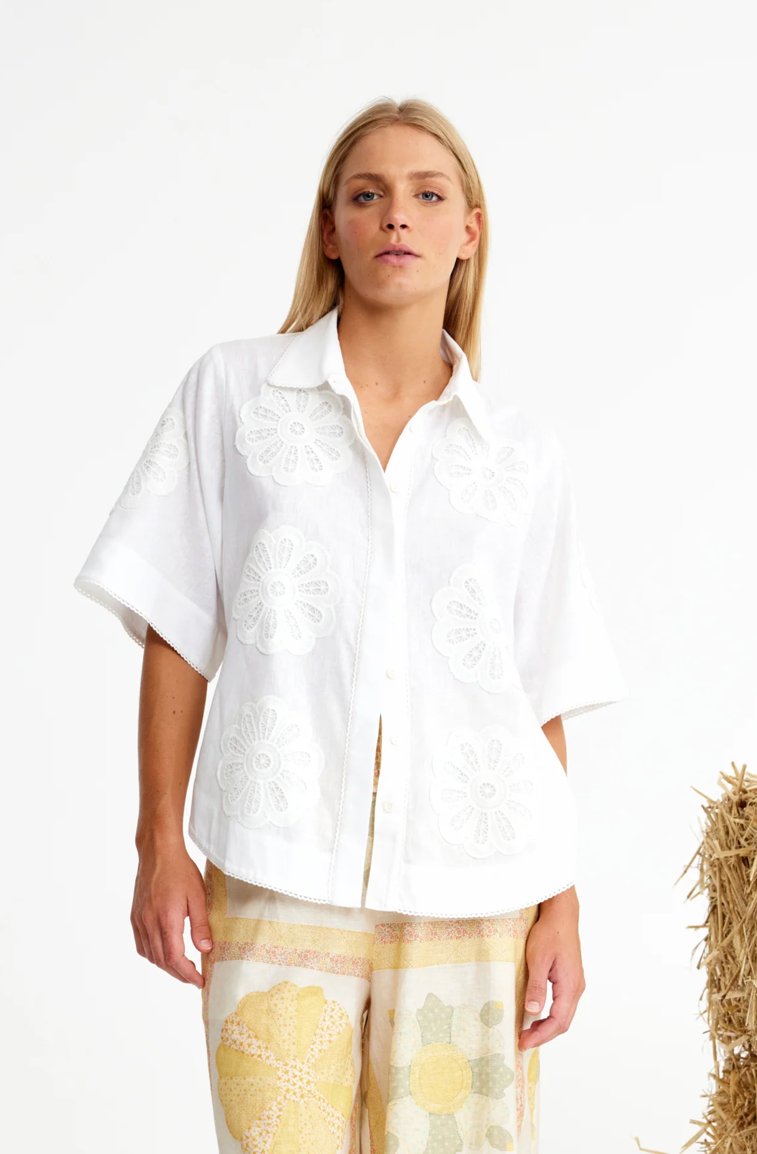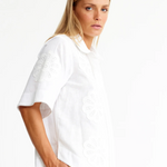 Like the famous dancing breed it’s named for, this shirt is all about graceful, controlled showmanship. Just like you managing work, life, family with aplomb. Crisp linen with circles of crochet appliqués, it adds polish & something special. Spill the high tea and giddy-up, darling, we have done this one before as its such a winner. Get it in both colours. (Sky Blue & White.) Tick.