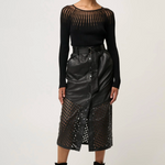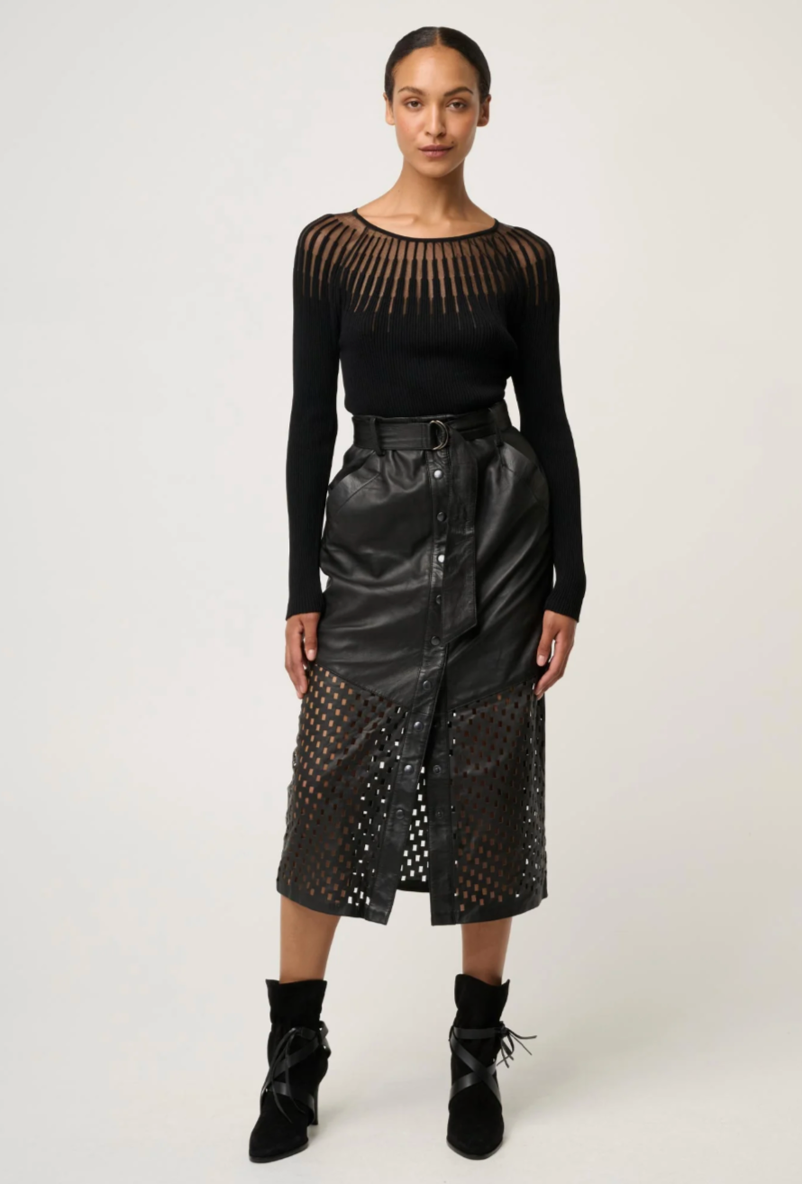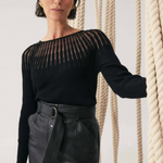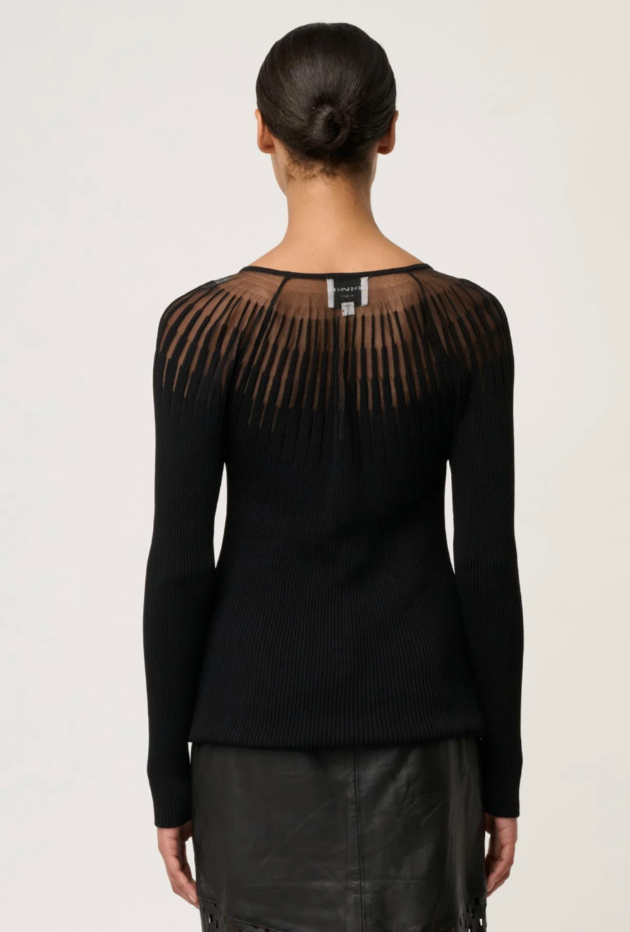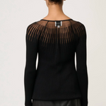 Refined, modern, and effortlessly chic, the Rhiannon Viscose Nylon Sheer Knit Top in Black is a statement essential designed to elevate your everyday wardrobe. Crafted from a soft viscose-nylon blend, this long sleeve knit offers a smooth, flattering fit with just the right amount of stretch.