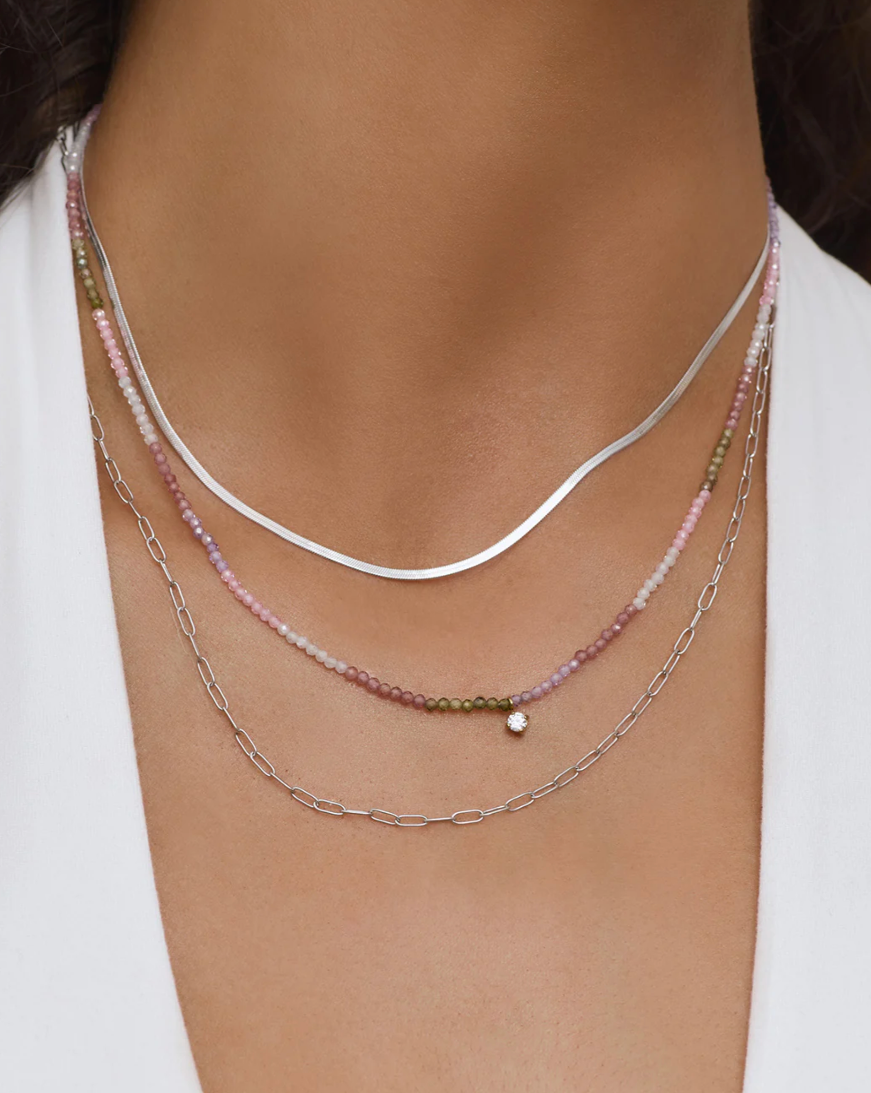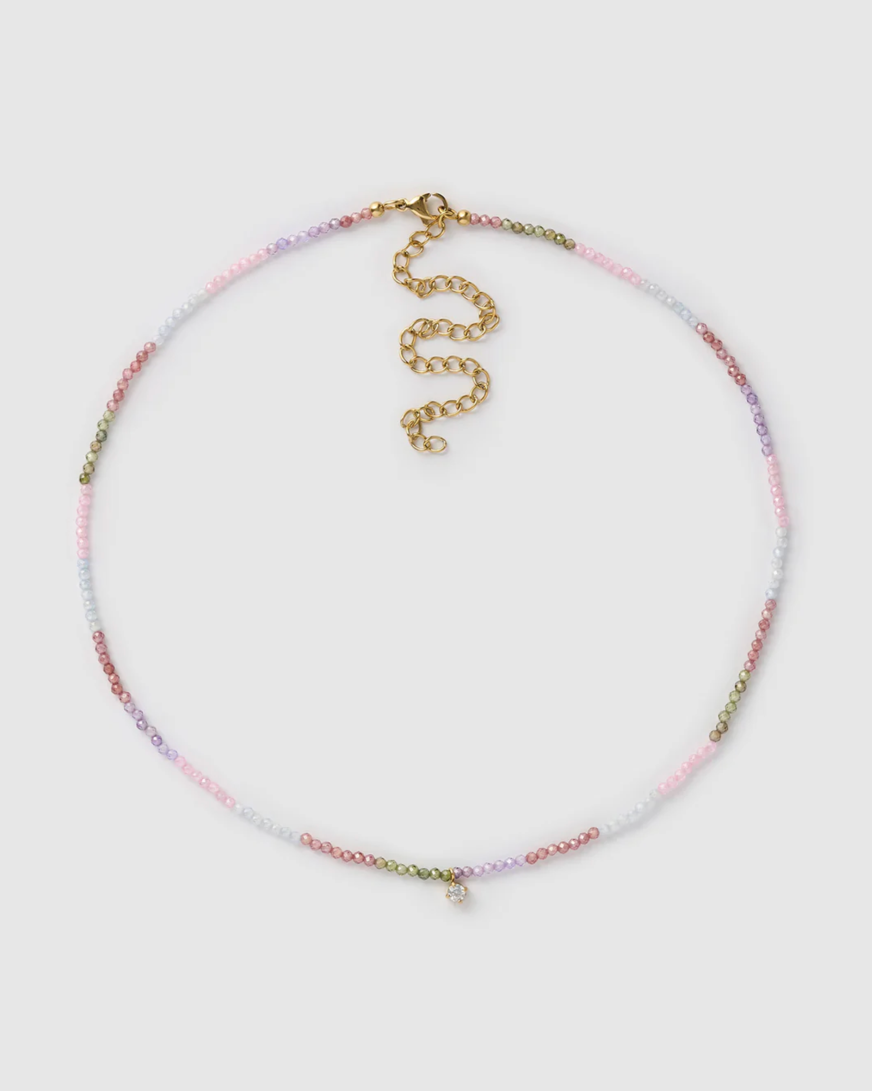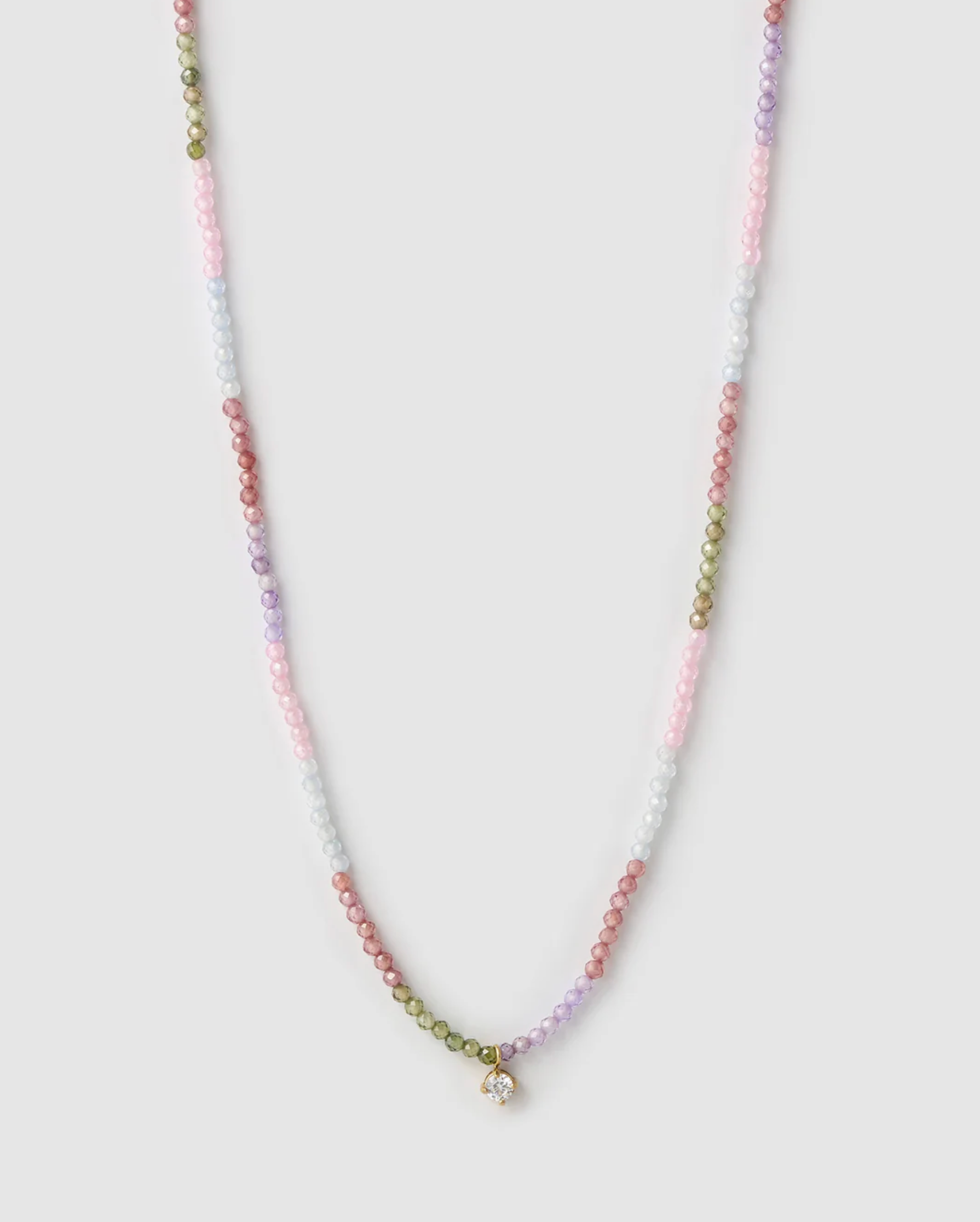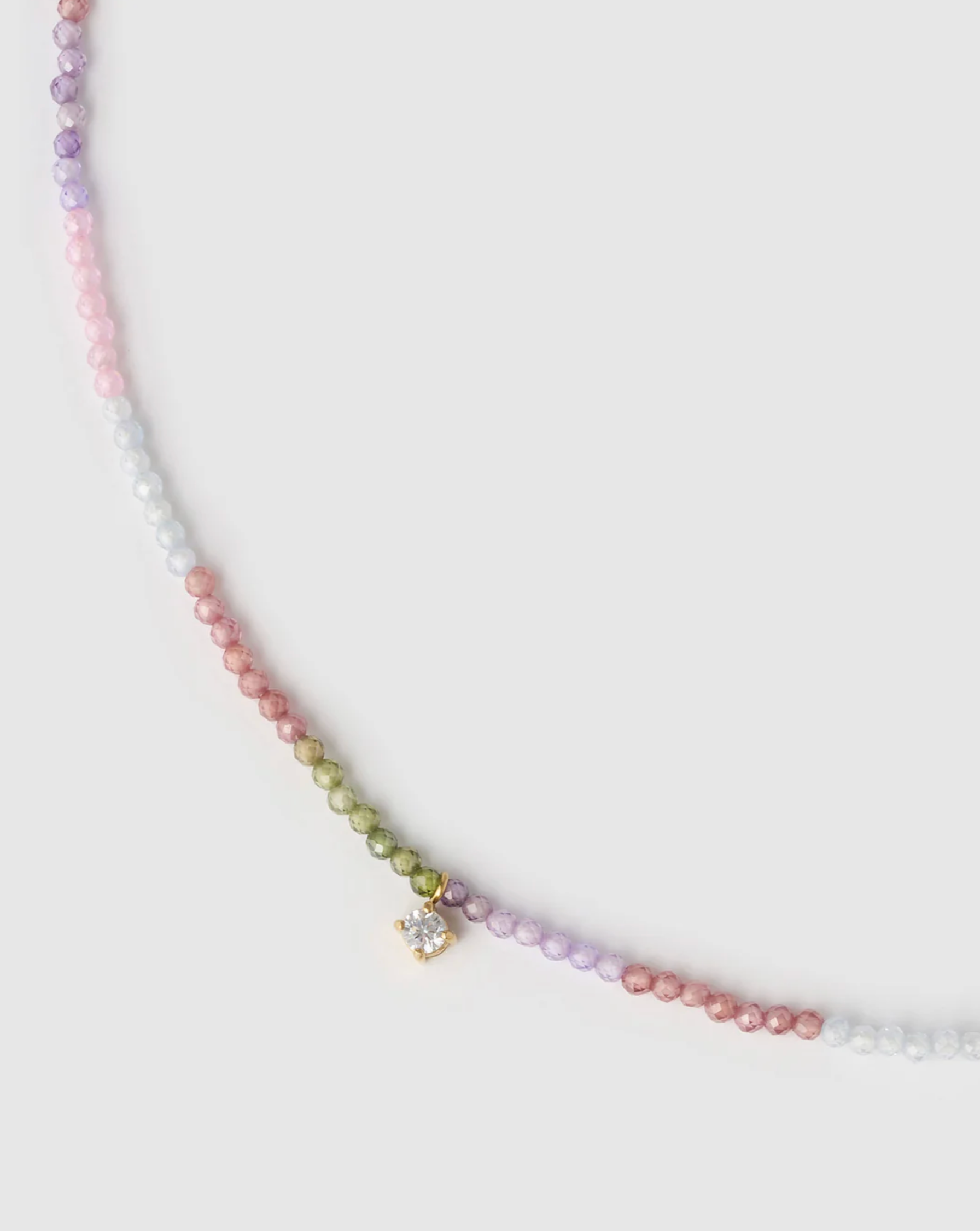 A twinkling treasure, the Taylor Necklace brings a playful touch of colour to your look. Adorned with a cascade of multi-coloured stones and finished with a delicate zircon charm, Taylor is the perfect piece to brighten your everyday style, while also adding effortless elegance to your evening outfits.
