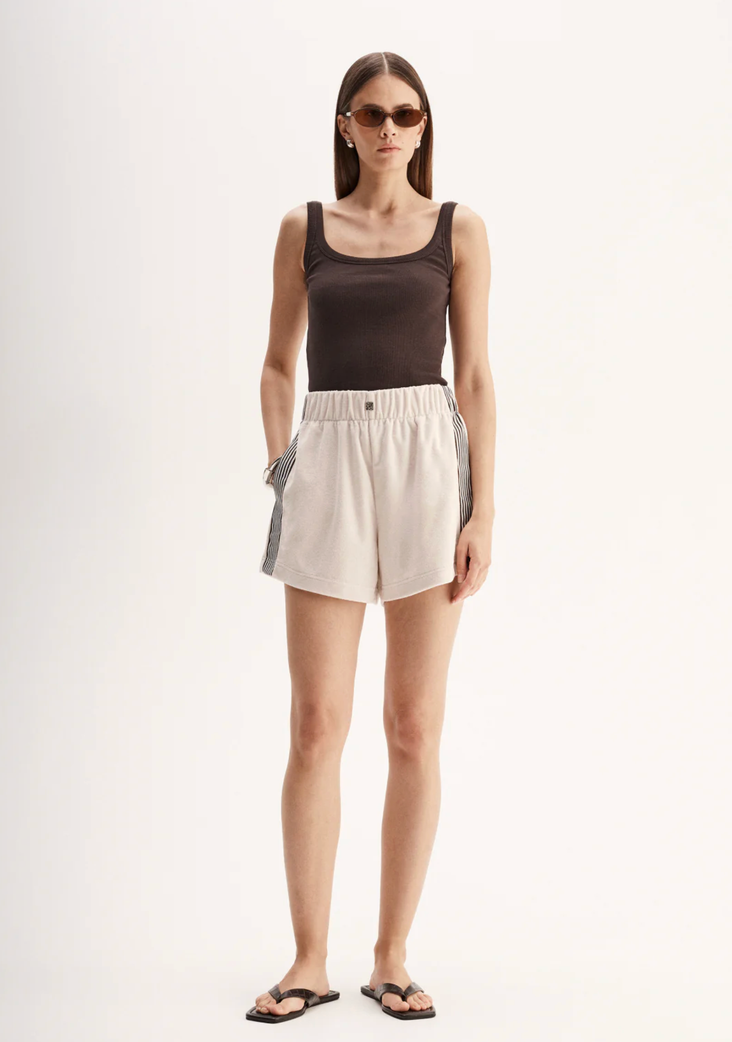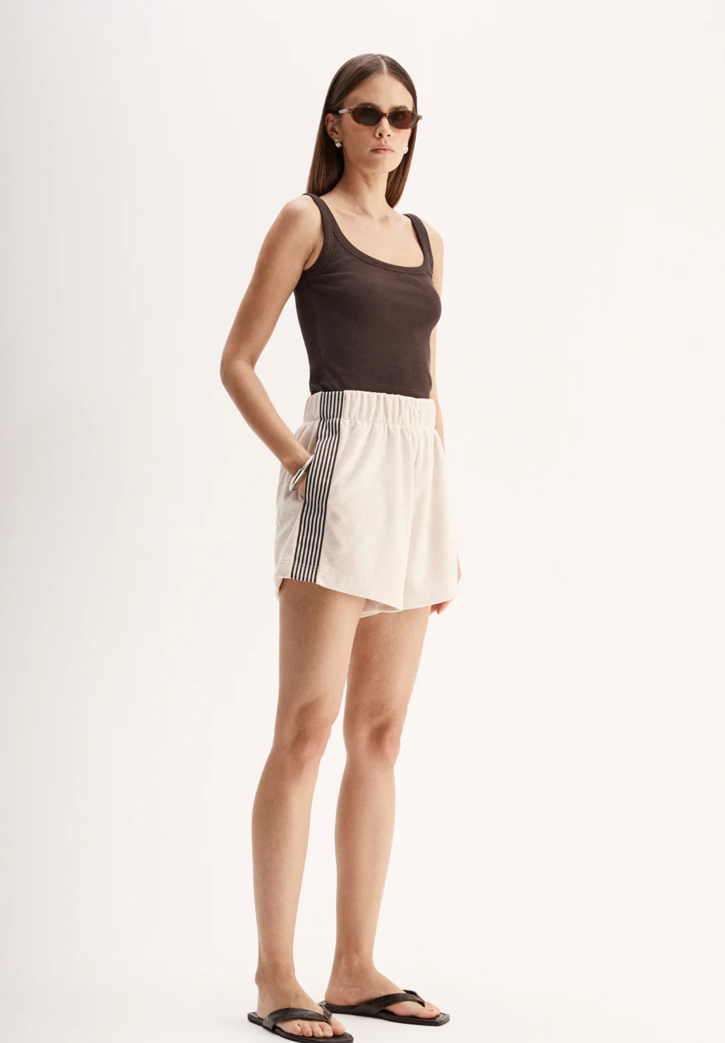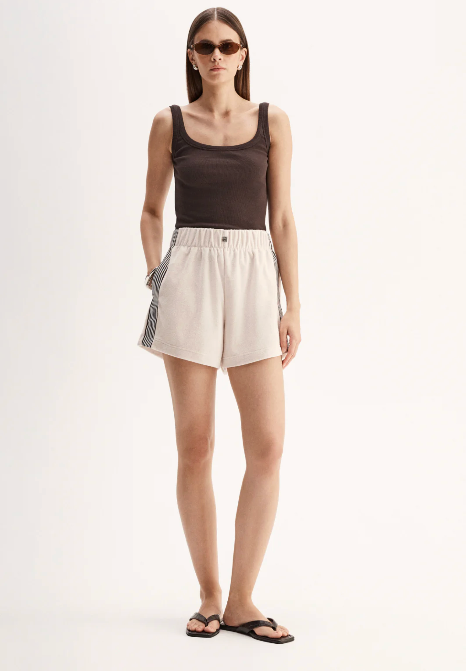 Made of a plush cotton blend fabric, the Beau Short is a casual staple for comfortable summer outfitting. These shorts feature an elastic waistband and contrasting side stripe detail with functional pockets for carrying essentials.