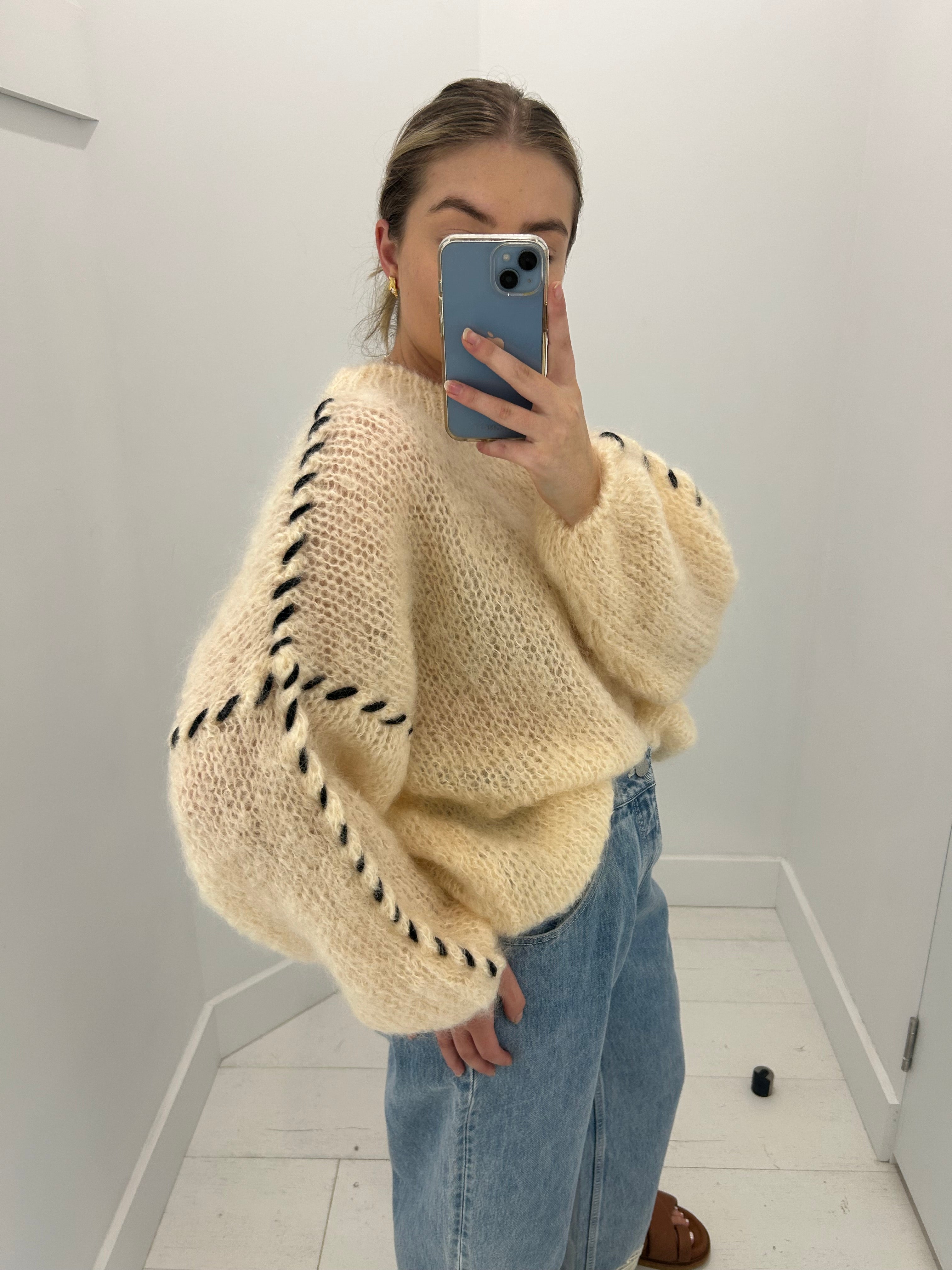 As the cool autumn weather sets in, the desire for warm and cozy clothing grows stronger. Choose your ideal shade and wear it with pleasure. Our stylish new Catia pullover, featuring woven wide threads on the sleeves and dropped shoulders, is the perfect choice for women who prioritize both style and comfort. We use our highest-quality mohair to create the Catia pullover