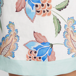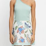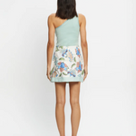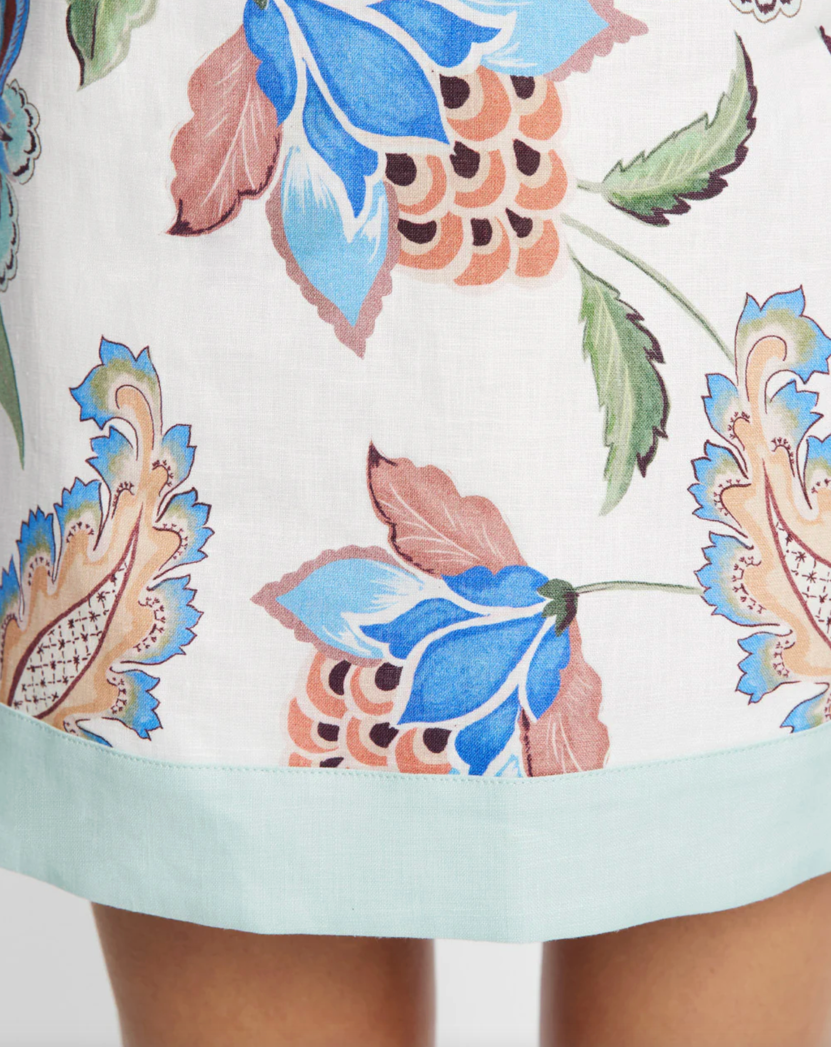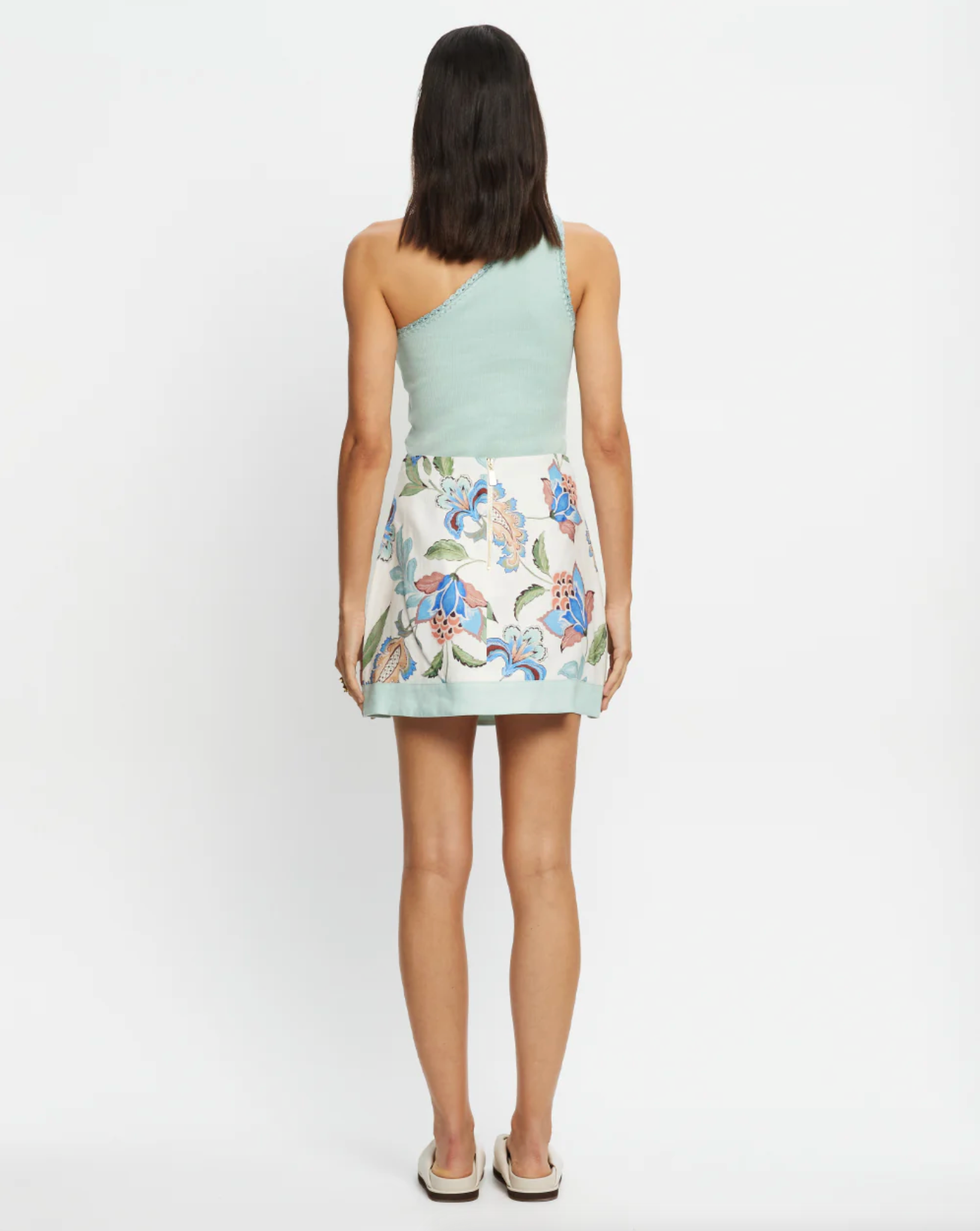 The Azure Mini Skirt is crafted from our in-house painted floral, designed with vibrant blue blooms, terracotta tones and soft green leaves on a white base. Cut in a feminine A-line silhouette and framed with a fresh mint border, this piece is complete with an exposed back zip. Pair back with the Azure Shirt for effortless resort styling.