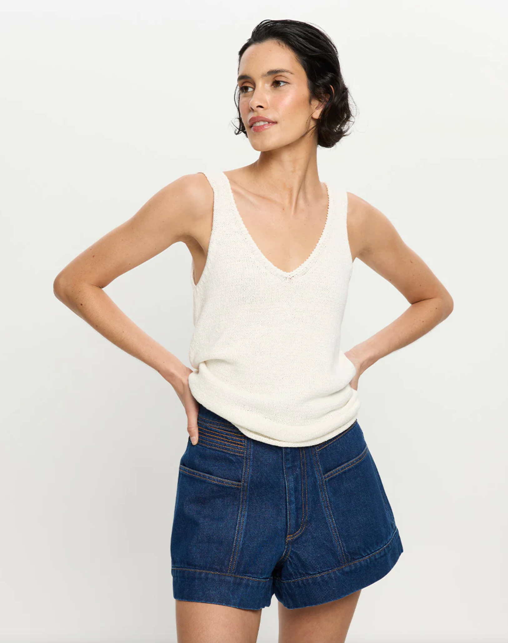The Alyssa Knit Cami is crafted from a premium jersey knit with a soft, breathable hand feel. Defined by its V-neckline at both the front and back, it’s finished with delicate edge detailing that elevates the simplicity of the silhouette. A refined wardrobe essential, designed for effortless layering — pair with denim for everyday ease, or style beneath a blazer or open shirt for trans-seasonal polish.
