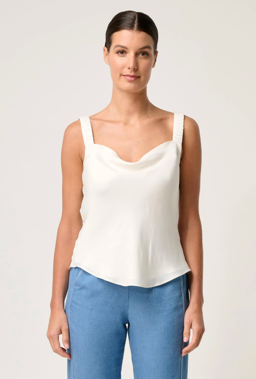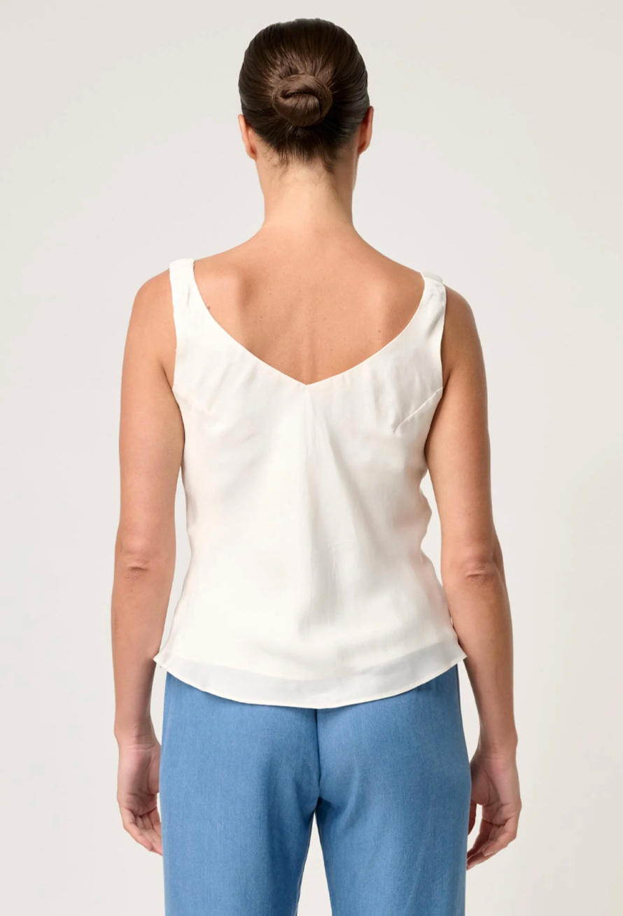 The neutral ivory tone makes this cami endlessly versatile—perfect for layering under blazers, pairing with tailored trousers, or tucking into skirts for a polished, feminine silhouette. Whether styled casually or elevated for evening wear, the Delray cami is a timeless investment piece every wardrobe needs.