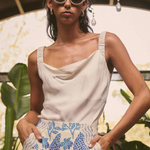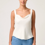 Elevate your wardrobe with the versatile elegance of the Delray Reversible Cupro Cami in Ivory. Crafted from a soft, sustainable cupro blend, this luxe cami offers two looks in one – featuring a graceful cowl neckline on one side and a flattering V-neck on the other. Whether worn casually or dressed up, it’s designed to drape beautifully with every movement.