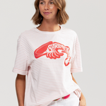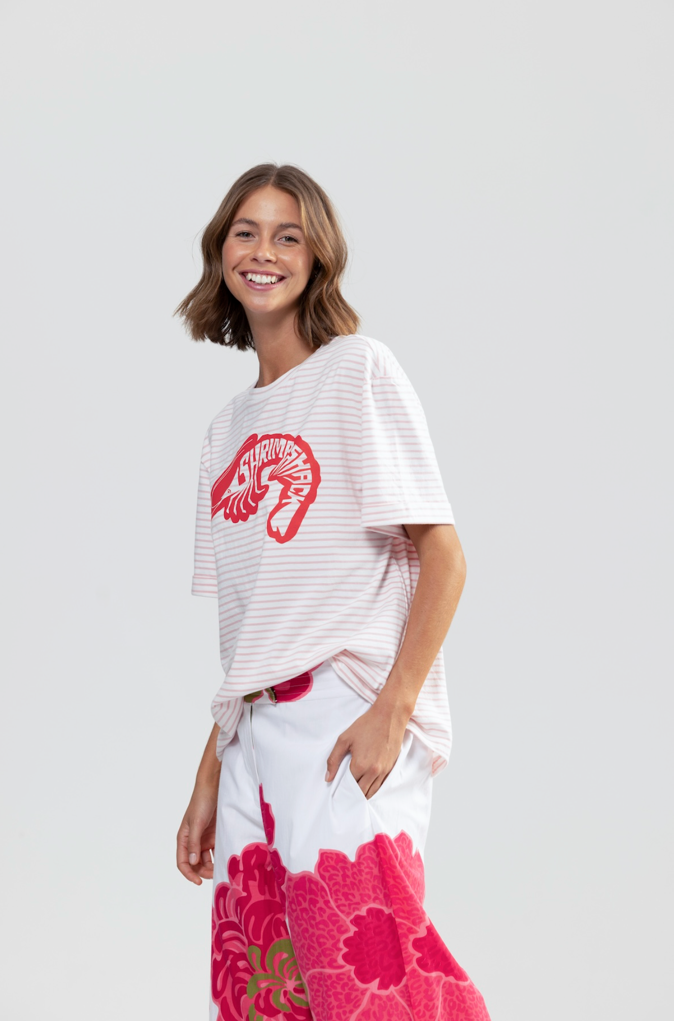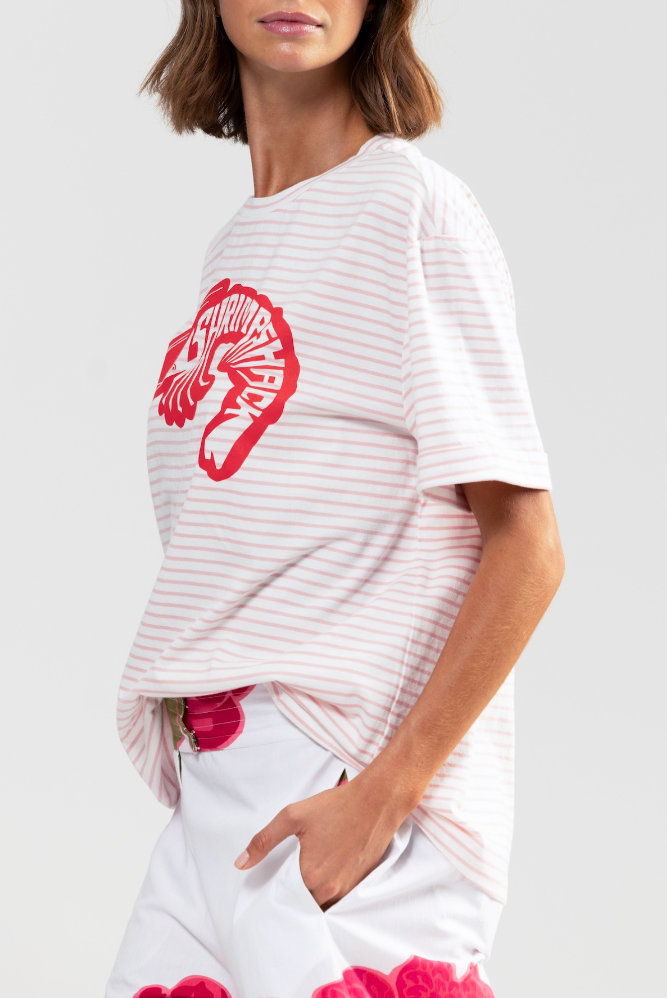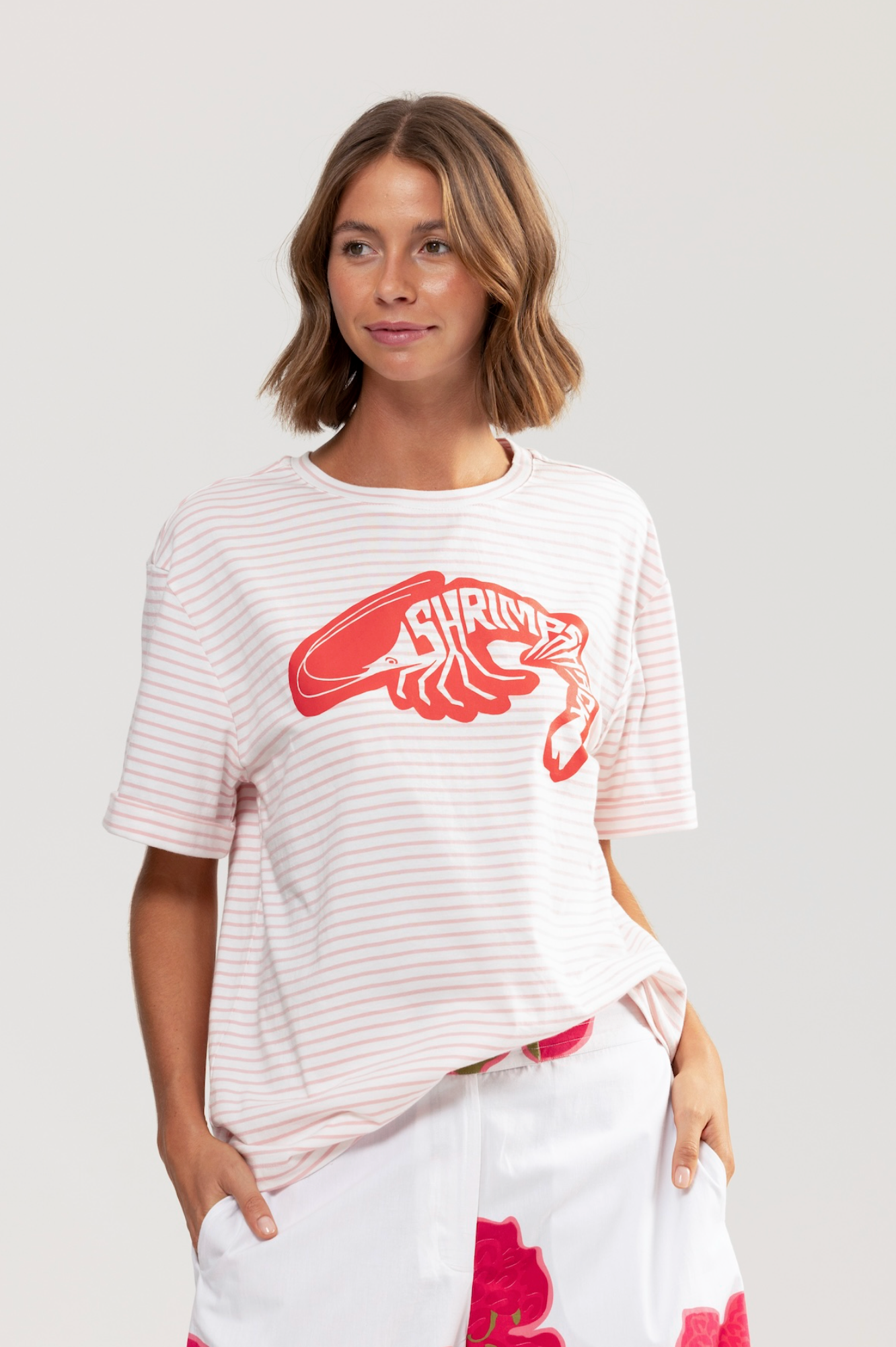 100% Cotton Stripe Jersey T-shirt with Bound Neckline, Cuffed Sleeves & Curved Hem.