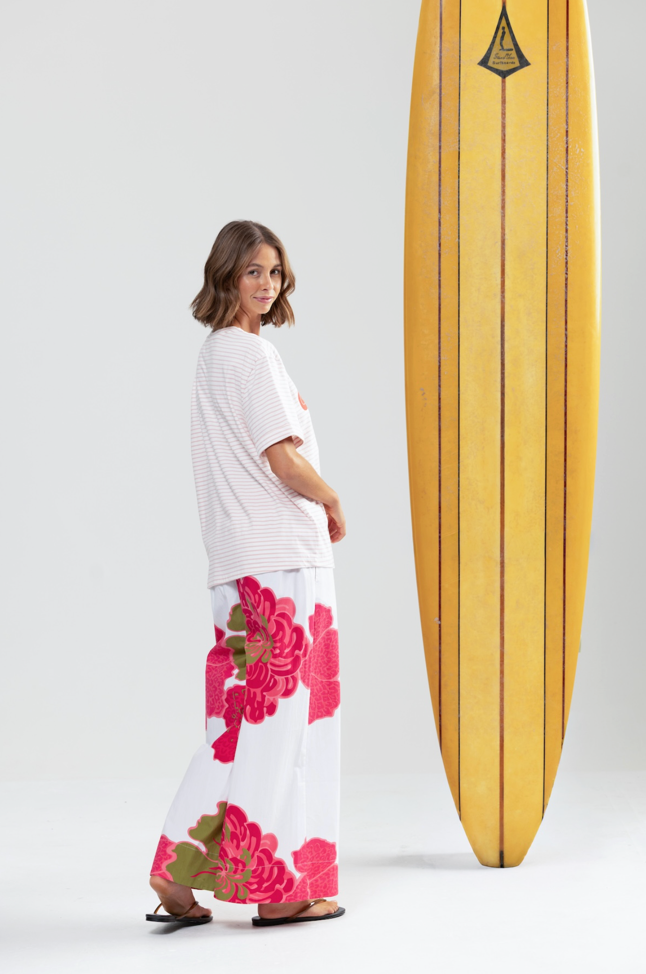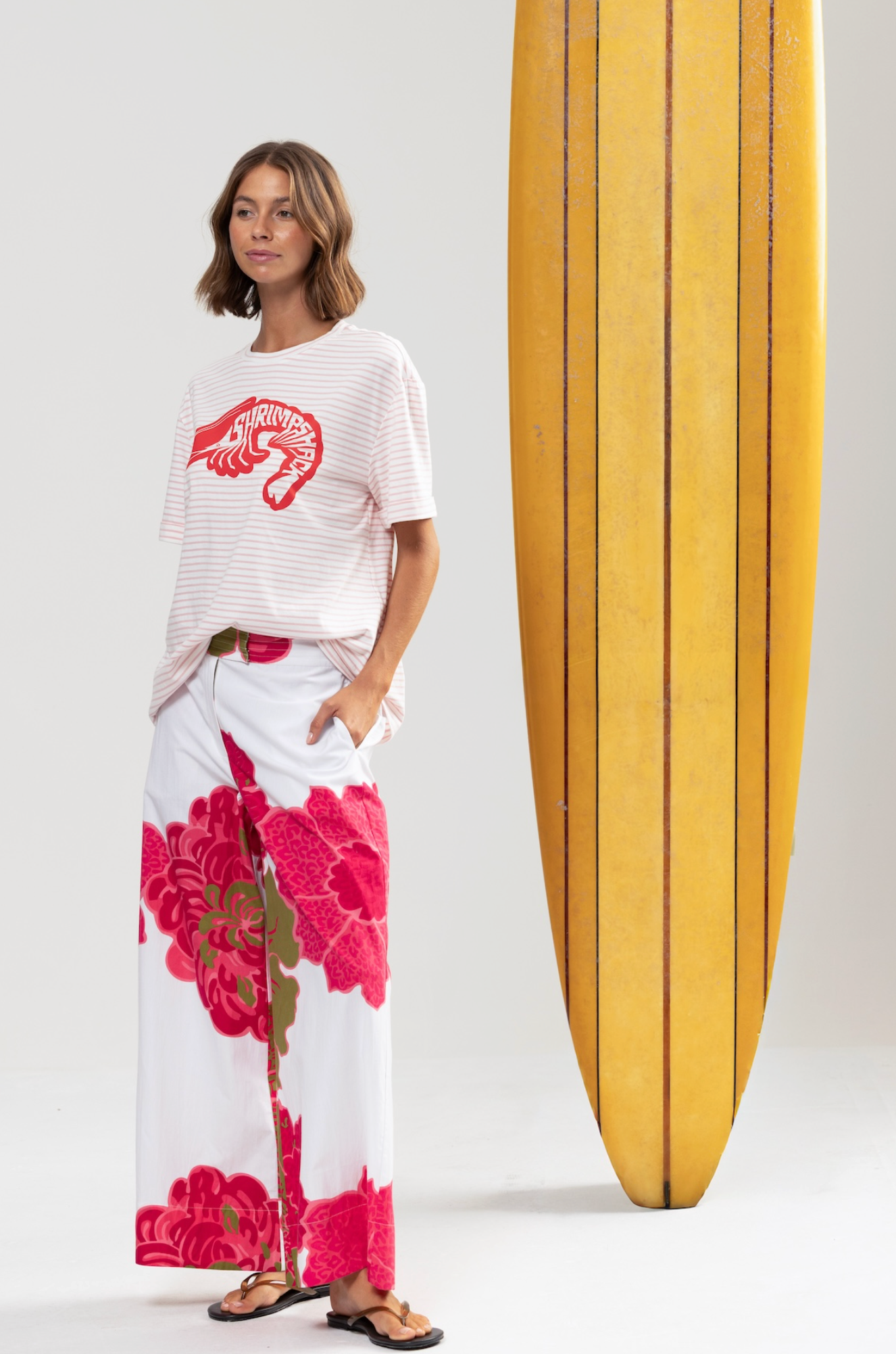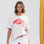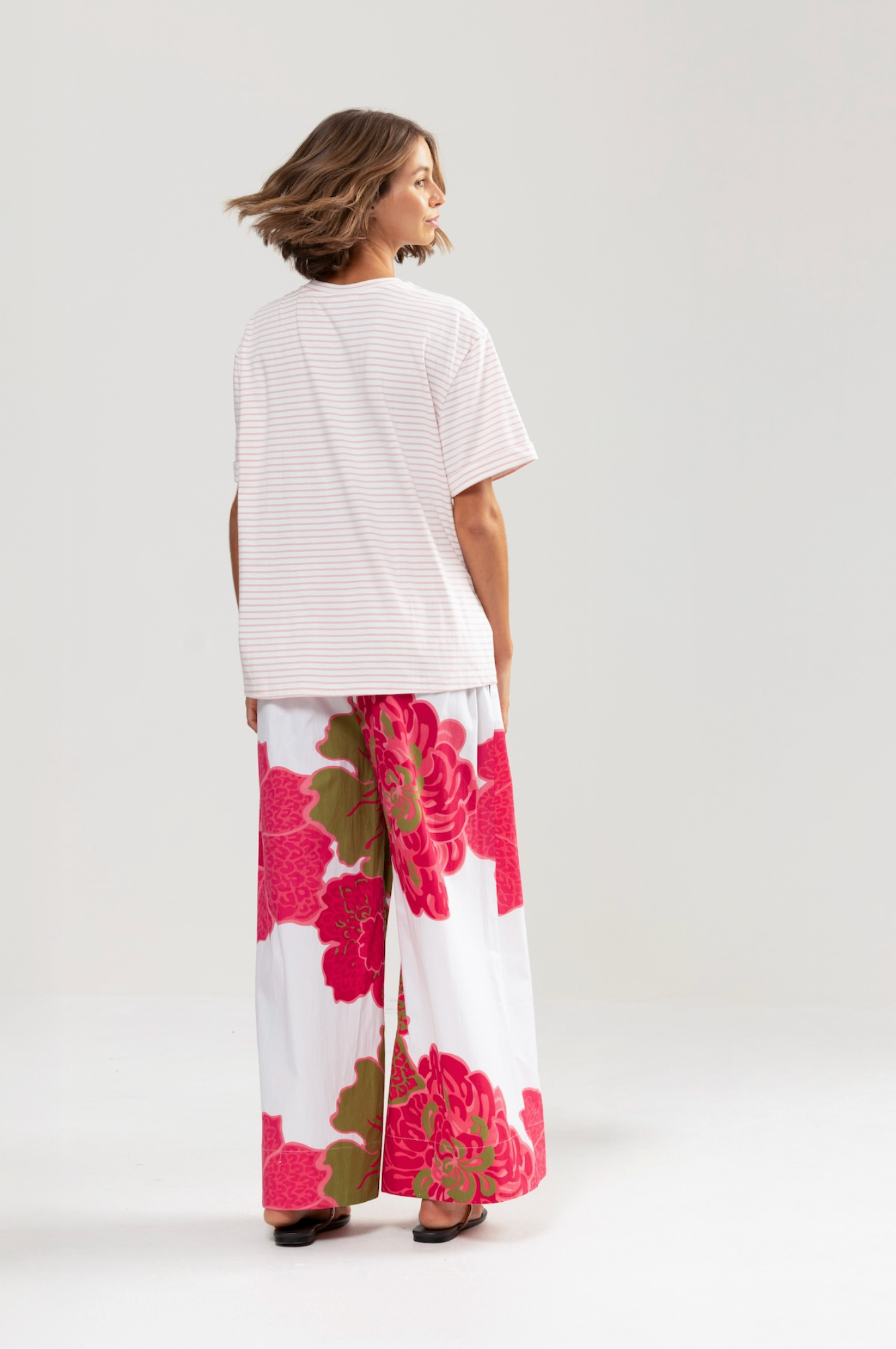 100% Cotton Stripe Jersey T-shirt with Bound Neckline, Cuffed Sleeves & Curved Hem.