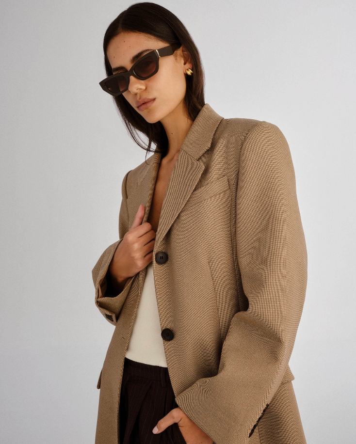 Bold in all the right ways. The Sutton is a wide cat-eye frame with sharp lines and thick temples, balanced by subtly curved metal detailing that adds a refined touch. Designed to frame the face with confidence, this style is equal parts statement and staple.