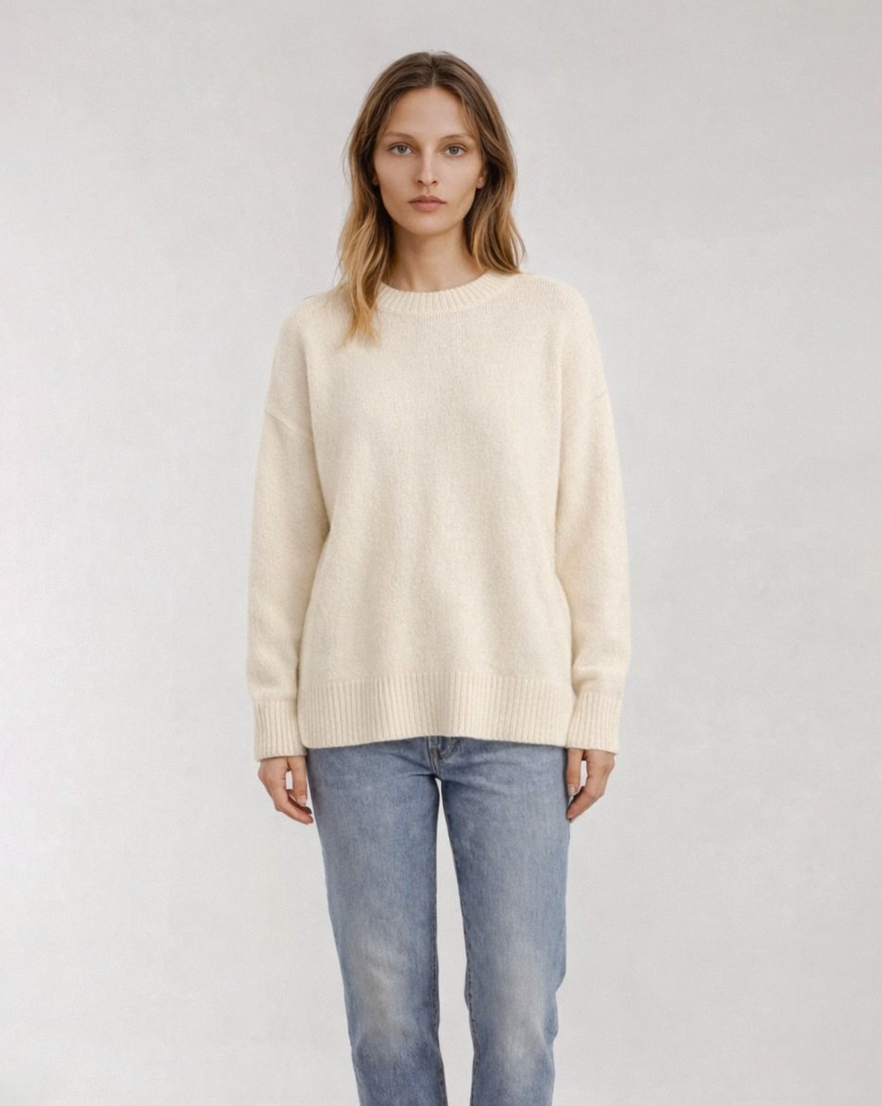 Long sleeves, ribbed collar, cuffs and hem Soft, slouchy knit 82% Merino Wool, 18% Cashmere Hand-Wash or Machine Wash COLD Relaxed, flattering, and endlessly wearable.