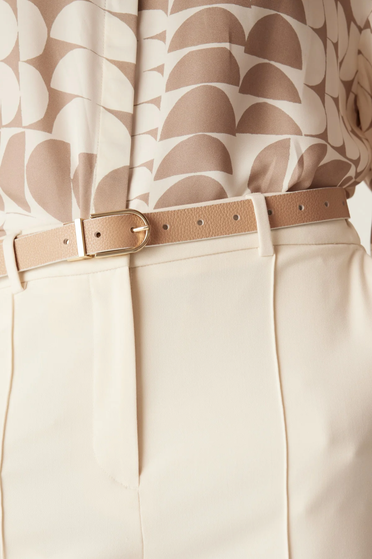 The Reversible Belt offers classic versatility with two colour options, Ecru and Tan. Crafted from genuine leather, it features a slim 2.5 cm width and a gold hardware buckle.